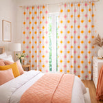 The VIBRAZE Mid-Century geometric blackout window curtain features soft pastel circles in peach, pink, and orange tones, creating a playful retro-inspired design. The repeating geometric pattern brightens the room while maintaining a light and balanced aesthetic.