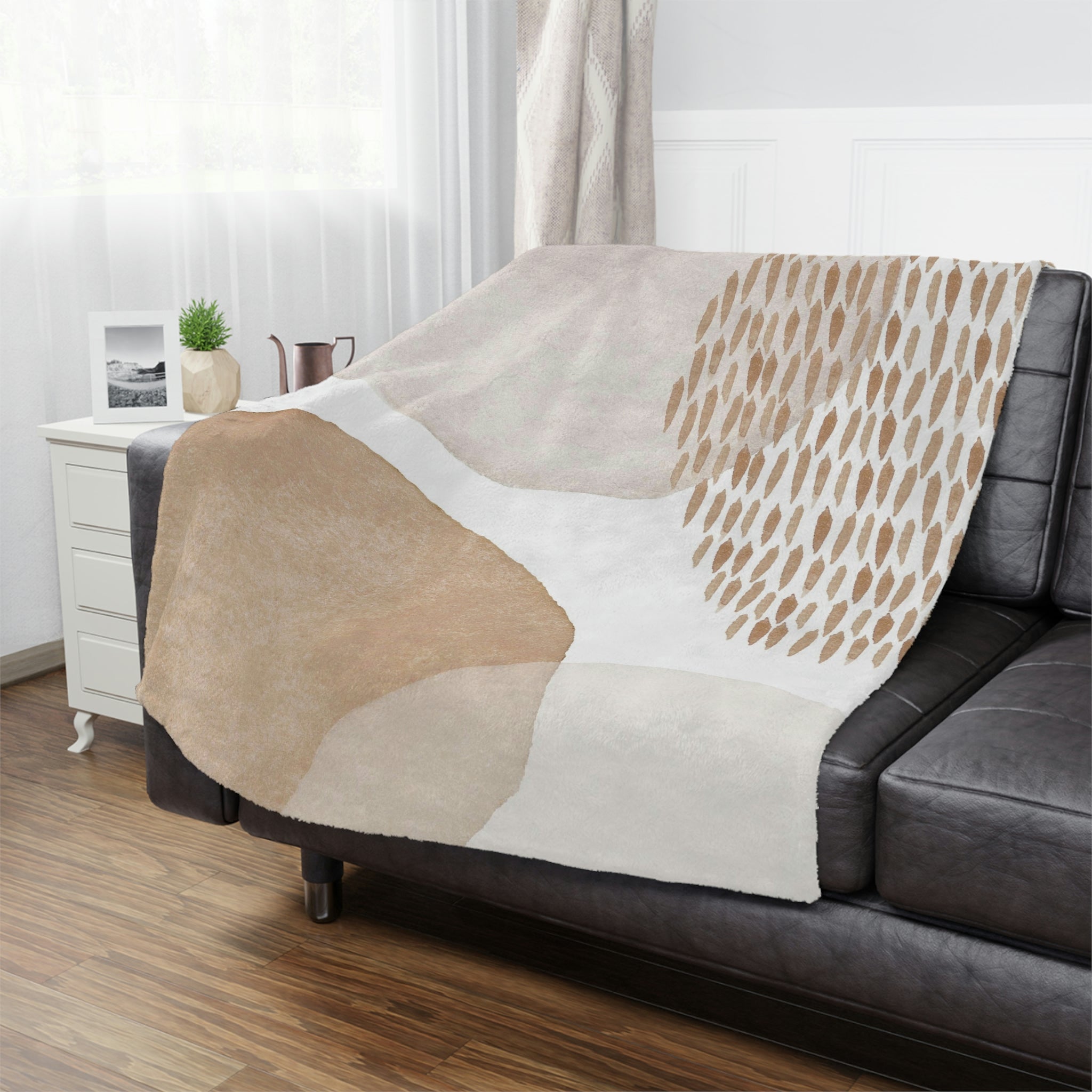 Abstract Art Ivory White Beige Neutral Boho Fleece Throw Blanket ADELE