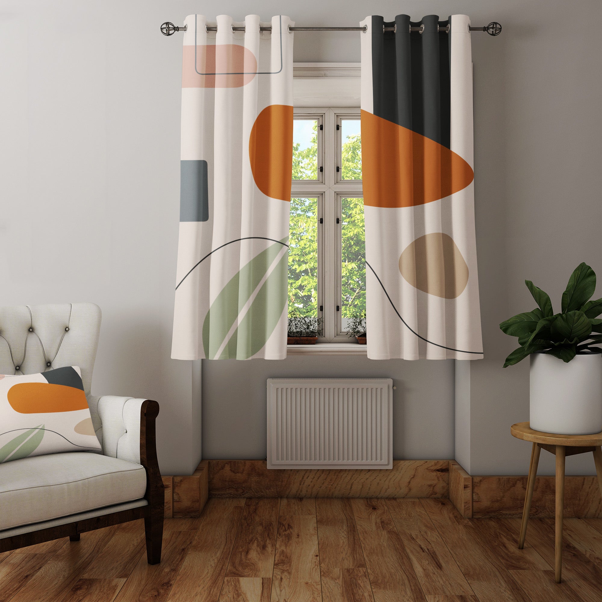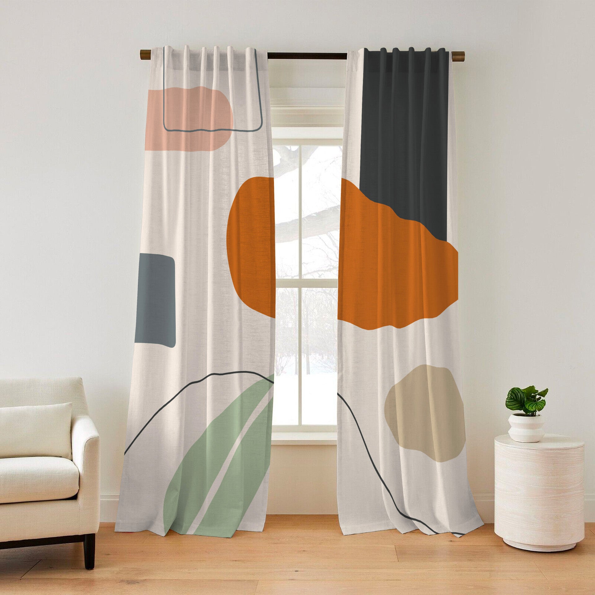 EILEEN mid-century modern geometric window curtains add a unique flair to any room. The soft pastel coloring provides a peaceful feel, perfect for gentle environments like nurseries, bedrooms, or living rooms. They also make a stunning complement to any Scandinavian décor elements, offering grace and simplicity.