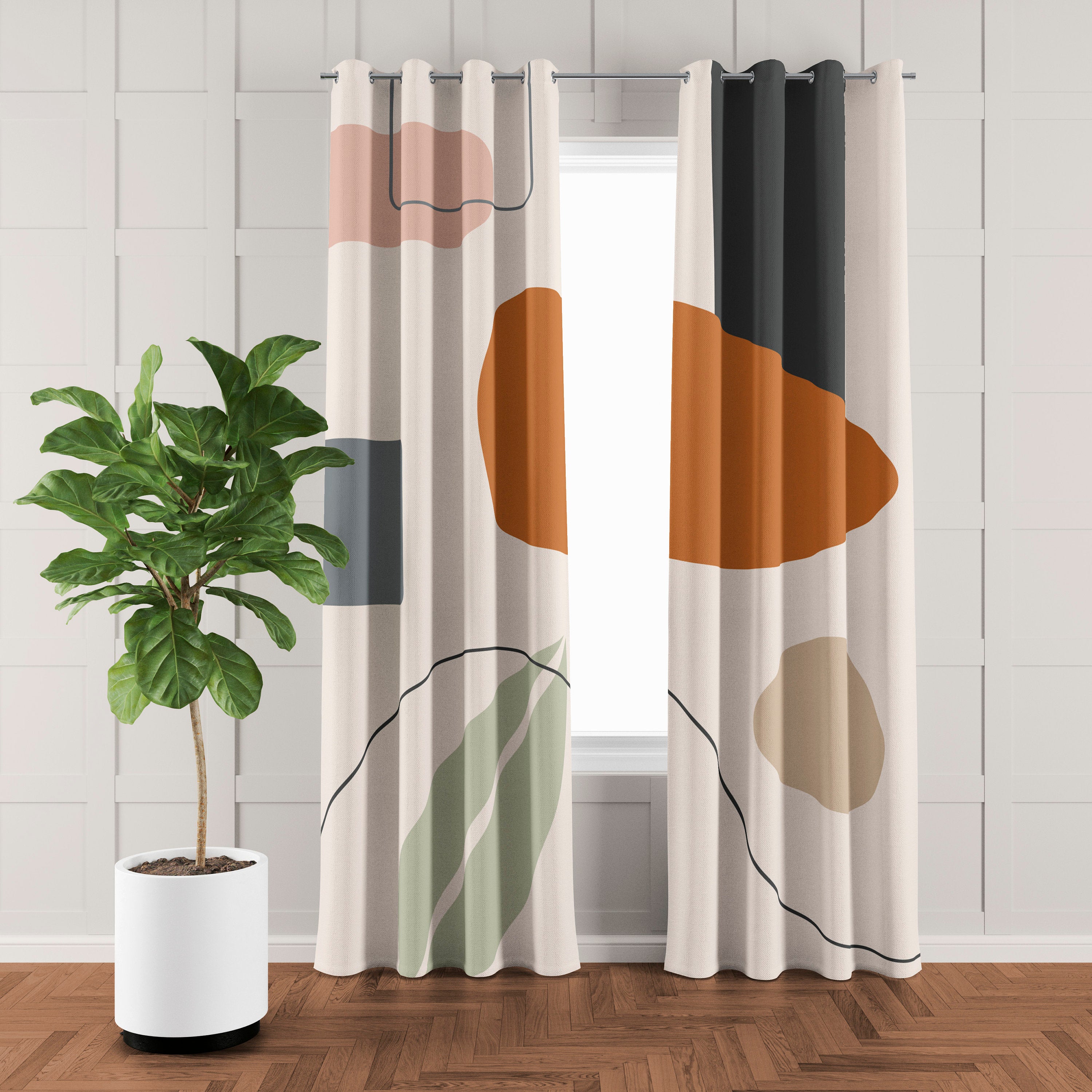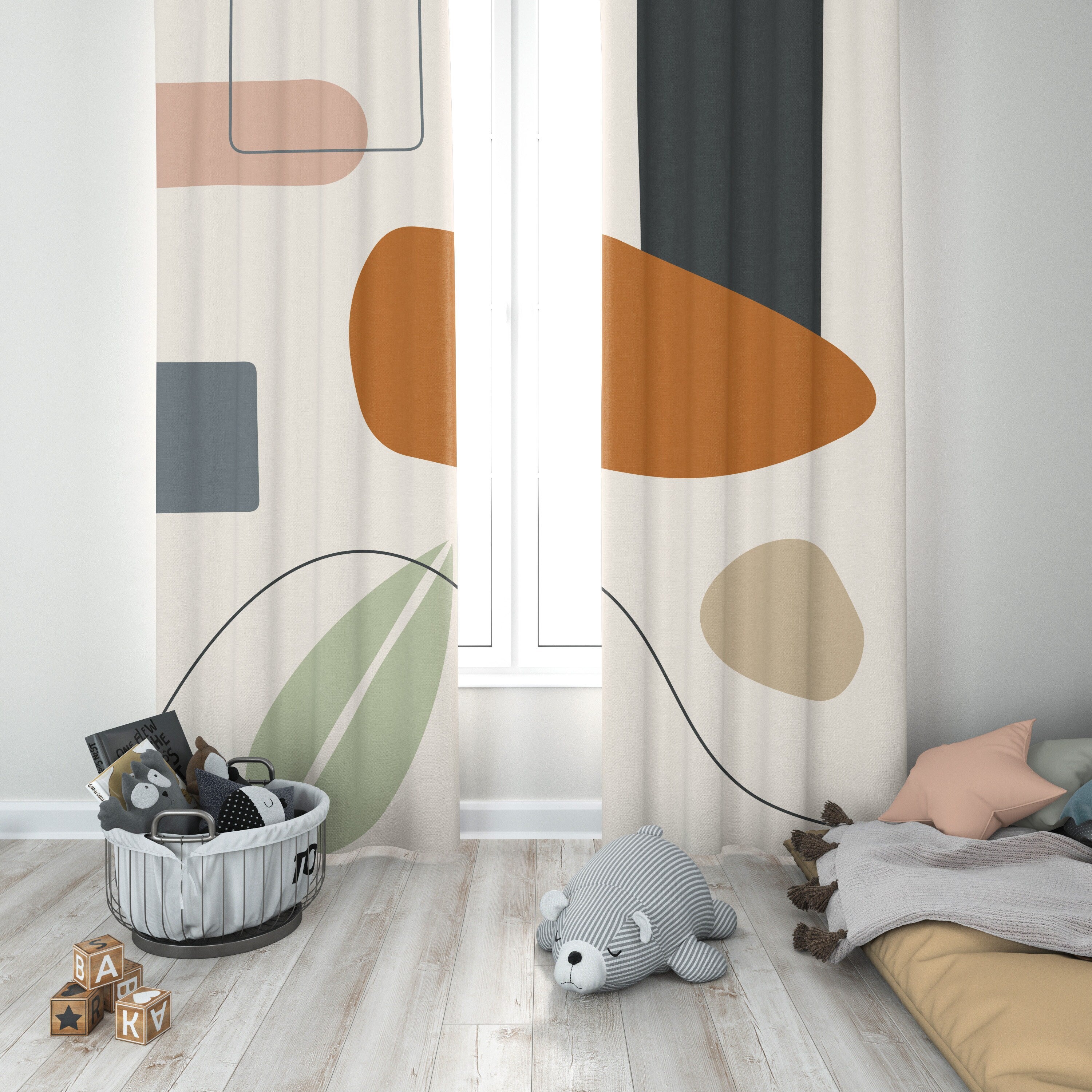 Abstract Art Mid Century Modern Geometric Pastel Blackout Window Curtains EILEEN - 2 Panels - Nursery Curtains