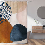 Set an abstract and elegant accent with the ADELE shower curtain in warm watercolors of terracotta, blush pink, blue, ivory and beige. Your bathroom will be a charming place.