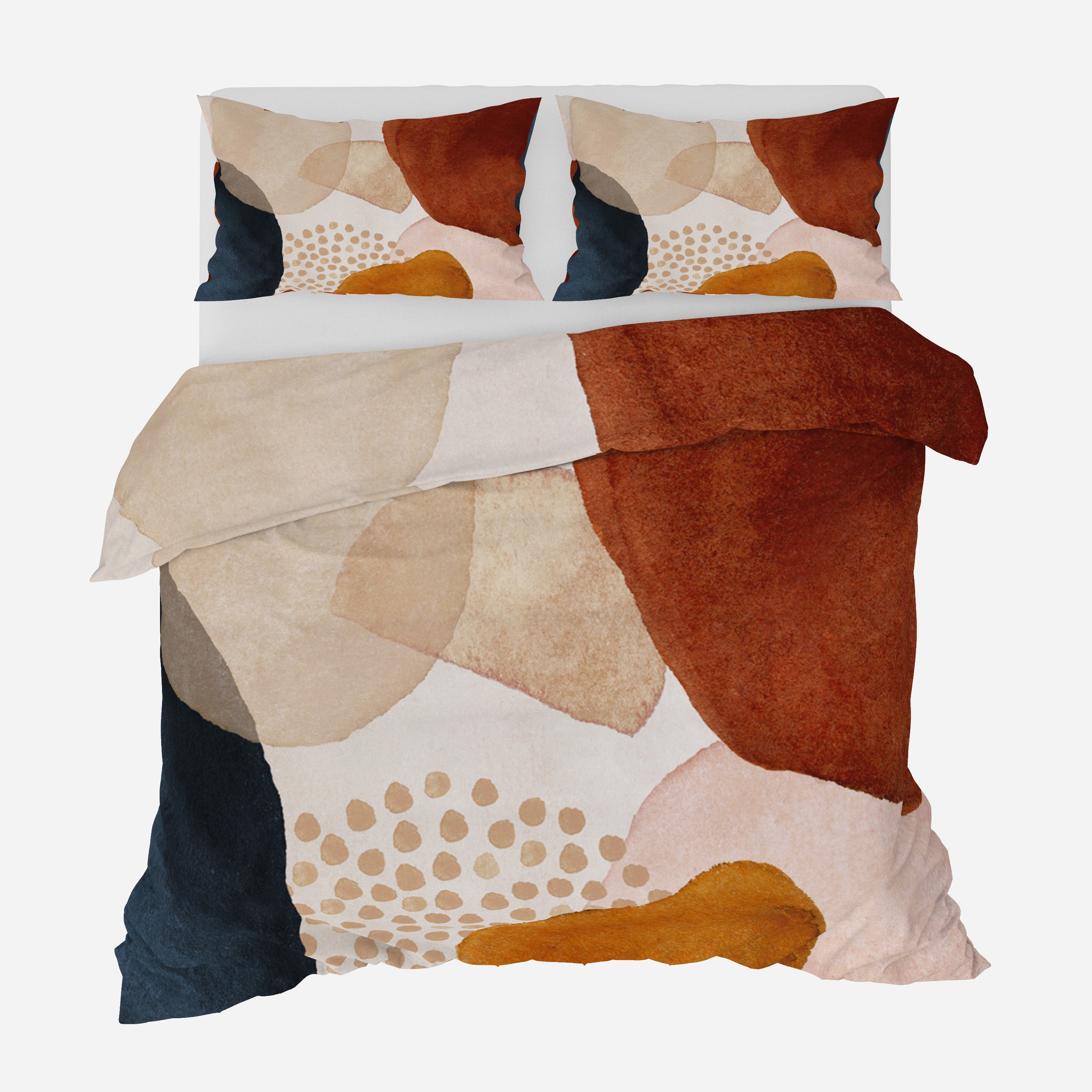 Set an abstract and elegant accent with the ADELE duvet cover in warm watercolors of terracotta, orange, blush pink, blue, ivory and beige. Your bedroom will be a charming place.