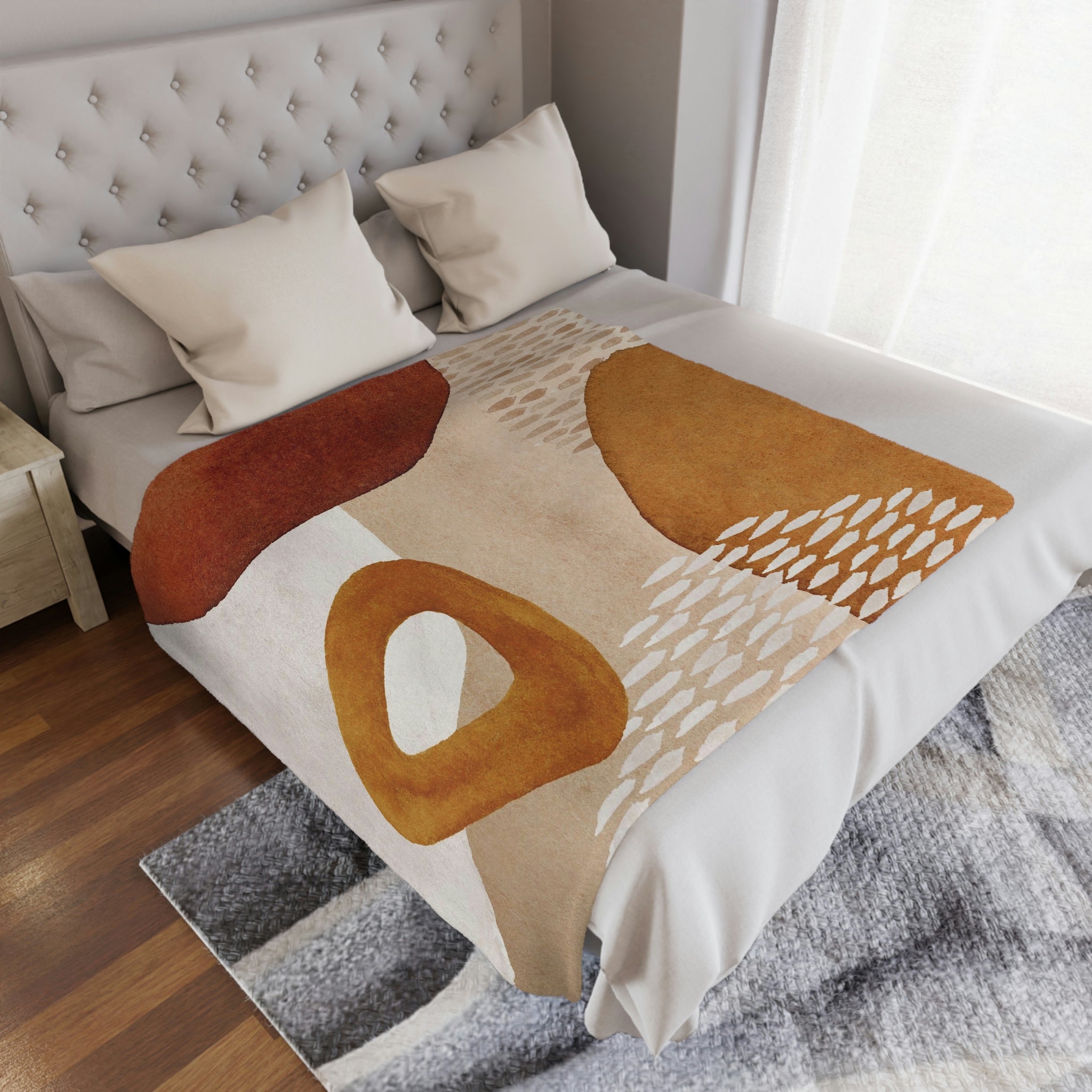 Abstract Art Terracotta Orange Ivory Beige Boho Fleece Throw Blanket ADELE