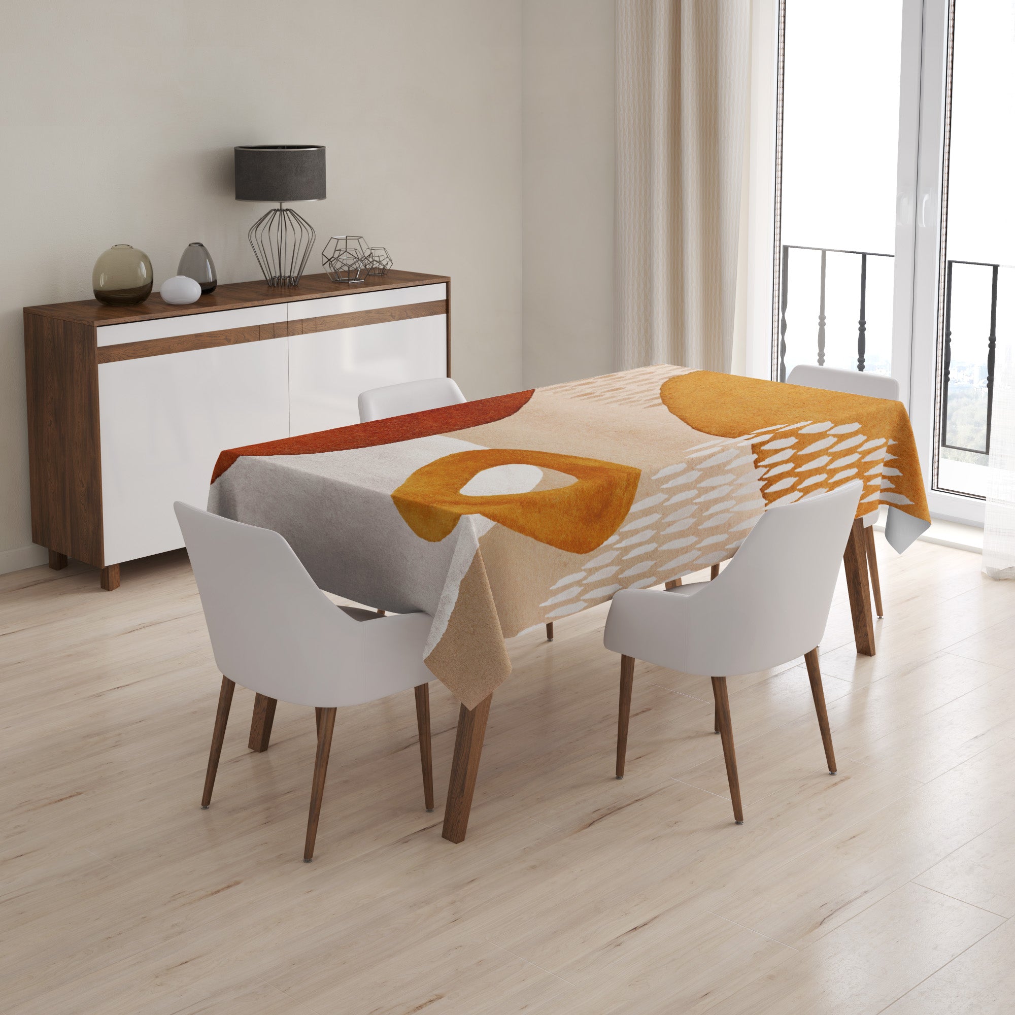 Abstract Art Terracotta Orange Ivory Beige Boho Tablecloth ADELE