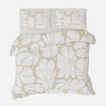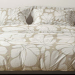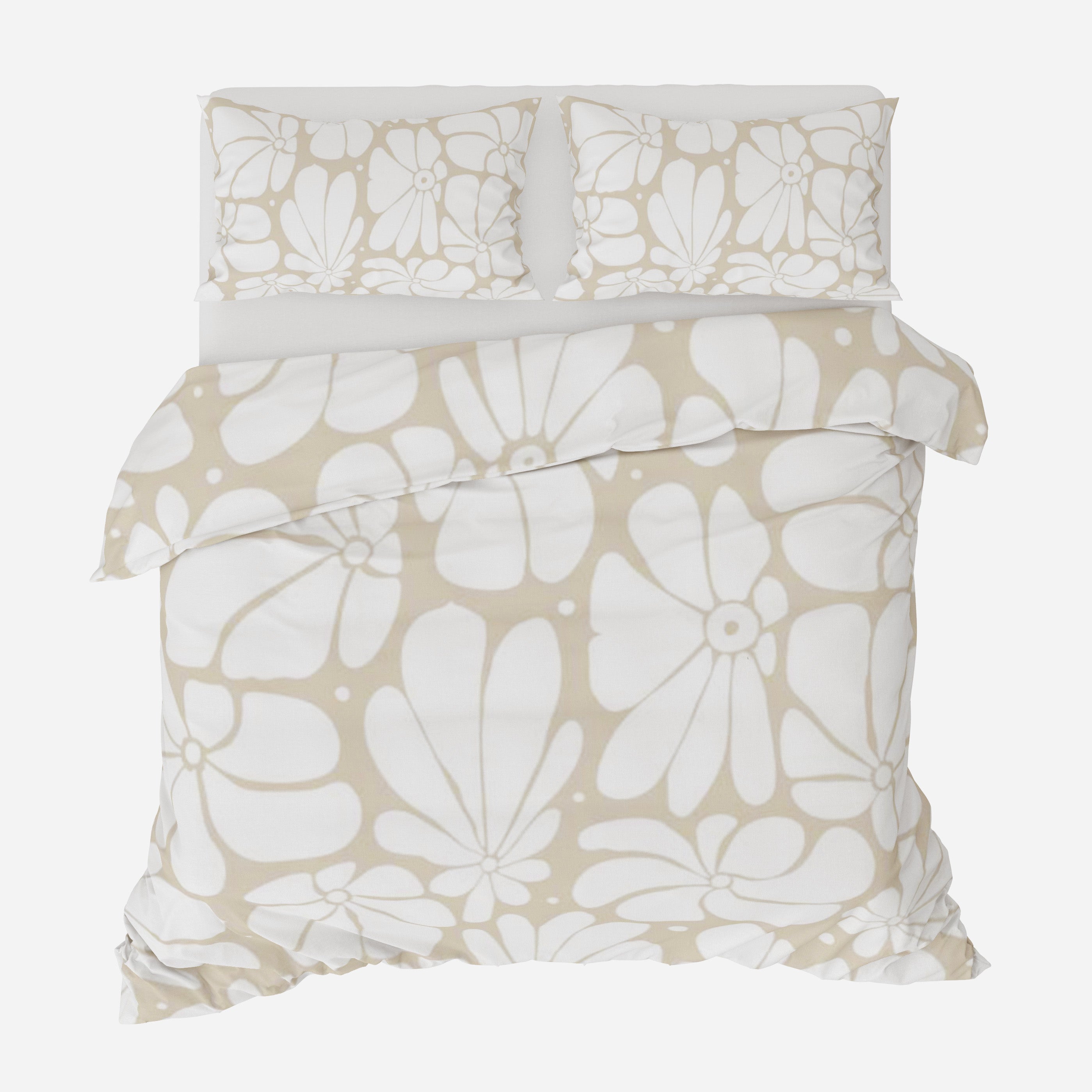 Abstract Beige White Retro 70s Floral Cotton Duvet Cover Set BLOSSOM