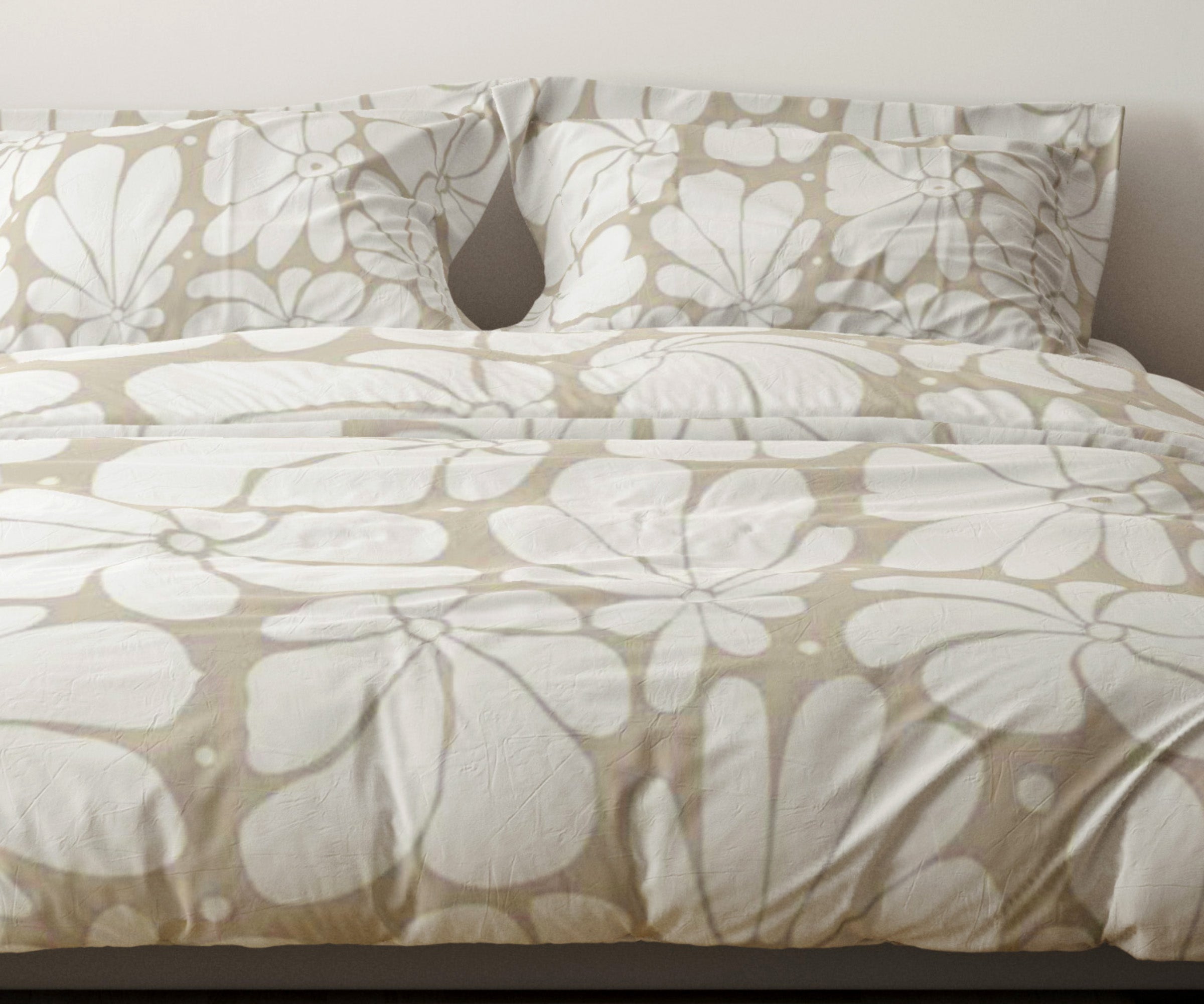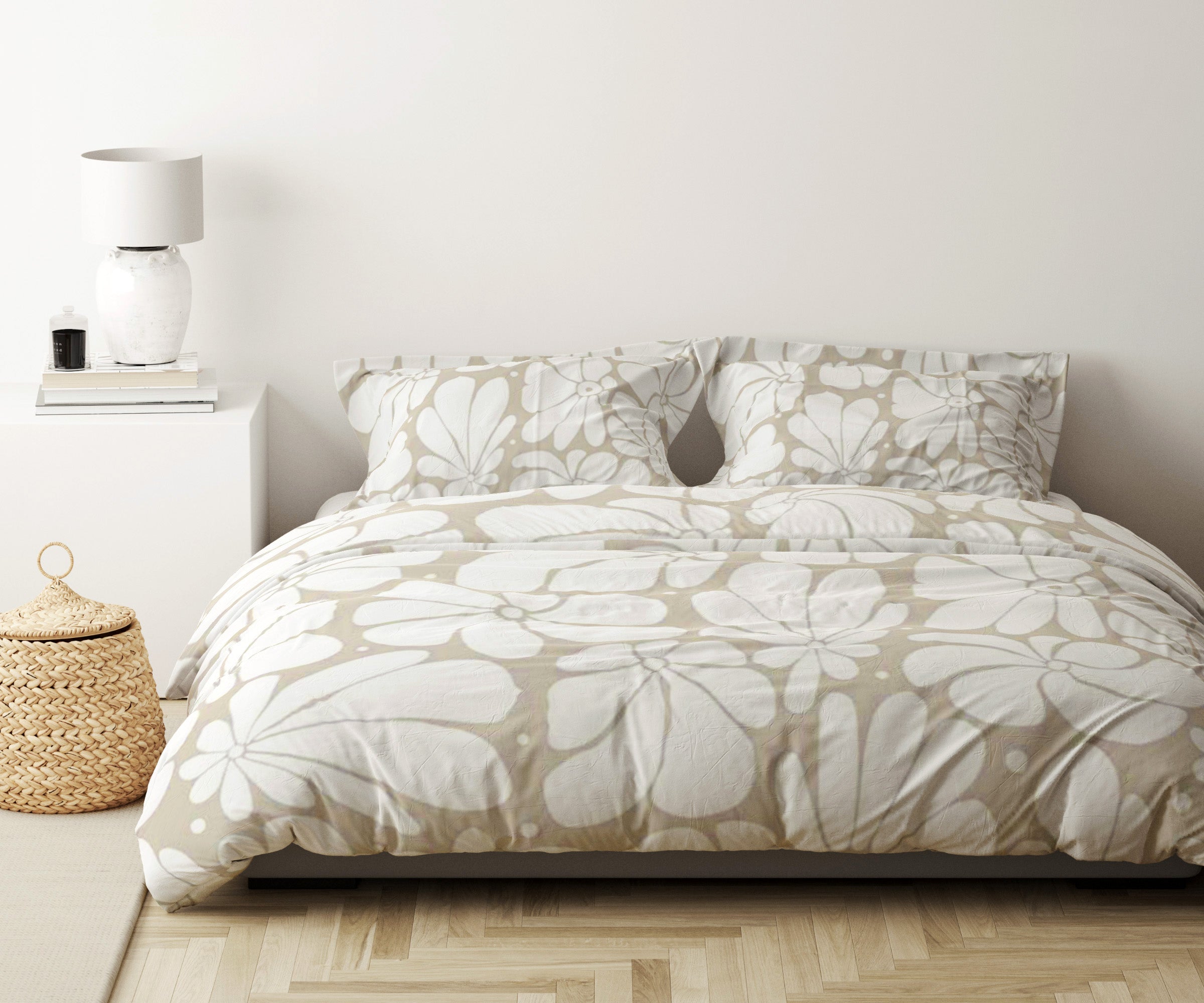 The charm of the quintessential floral theme, the BLOSSOM beige and white pattern duvet cover is inspired by the harmony and good vibes of flowering.