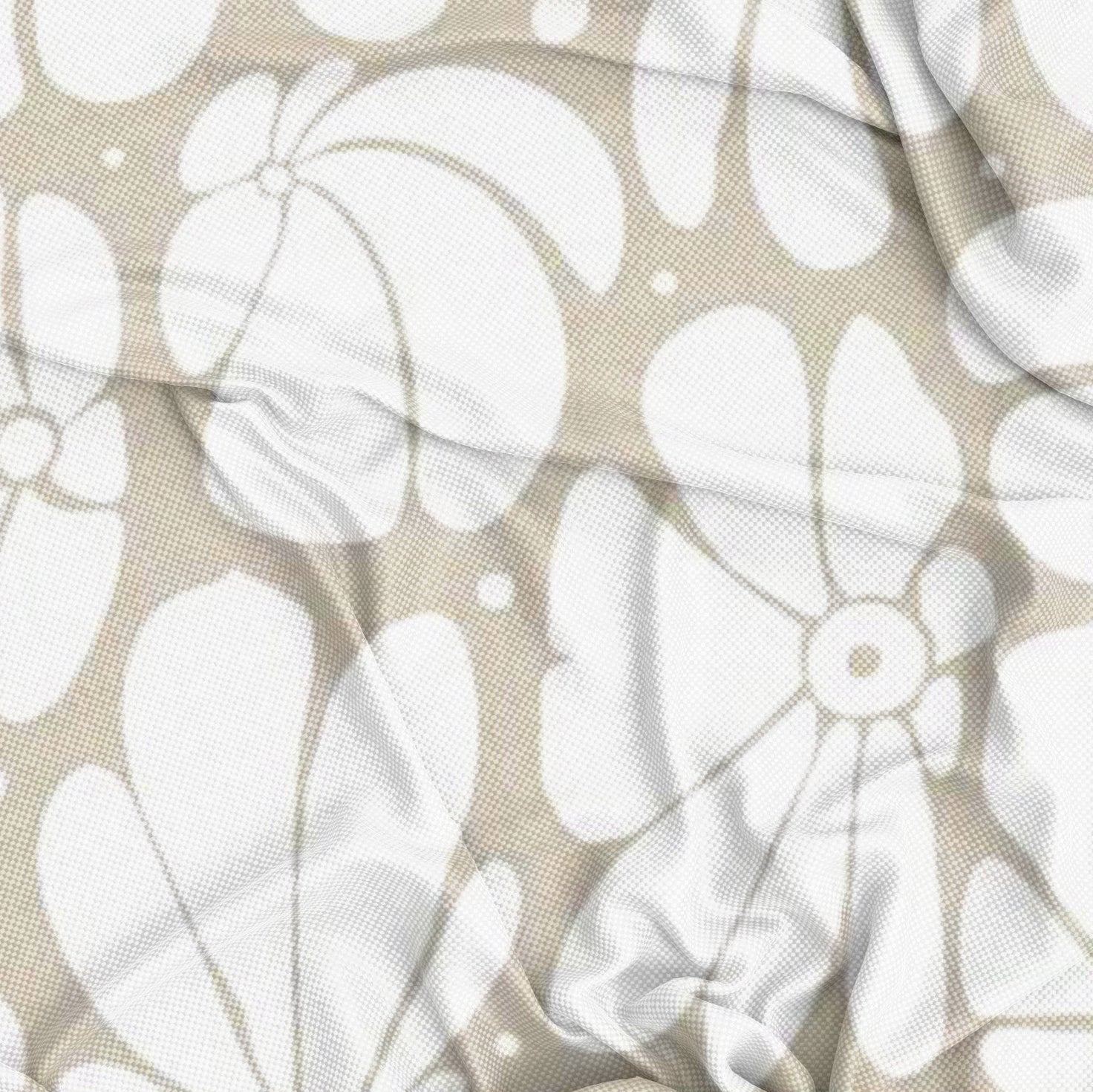 Abstract Beige White Retro 70s Floral Tablecloth BLOSSOM