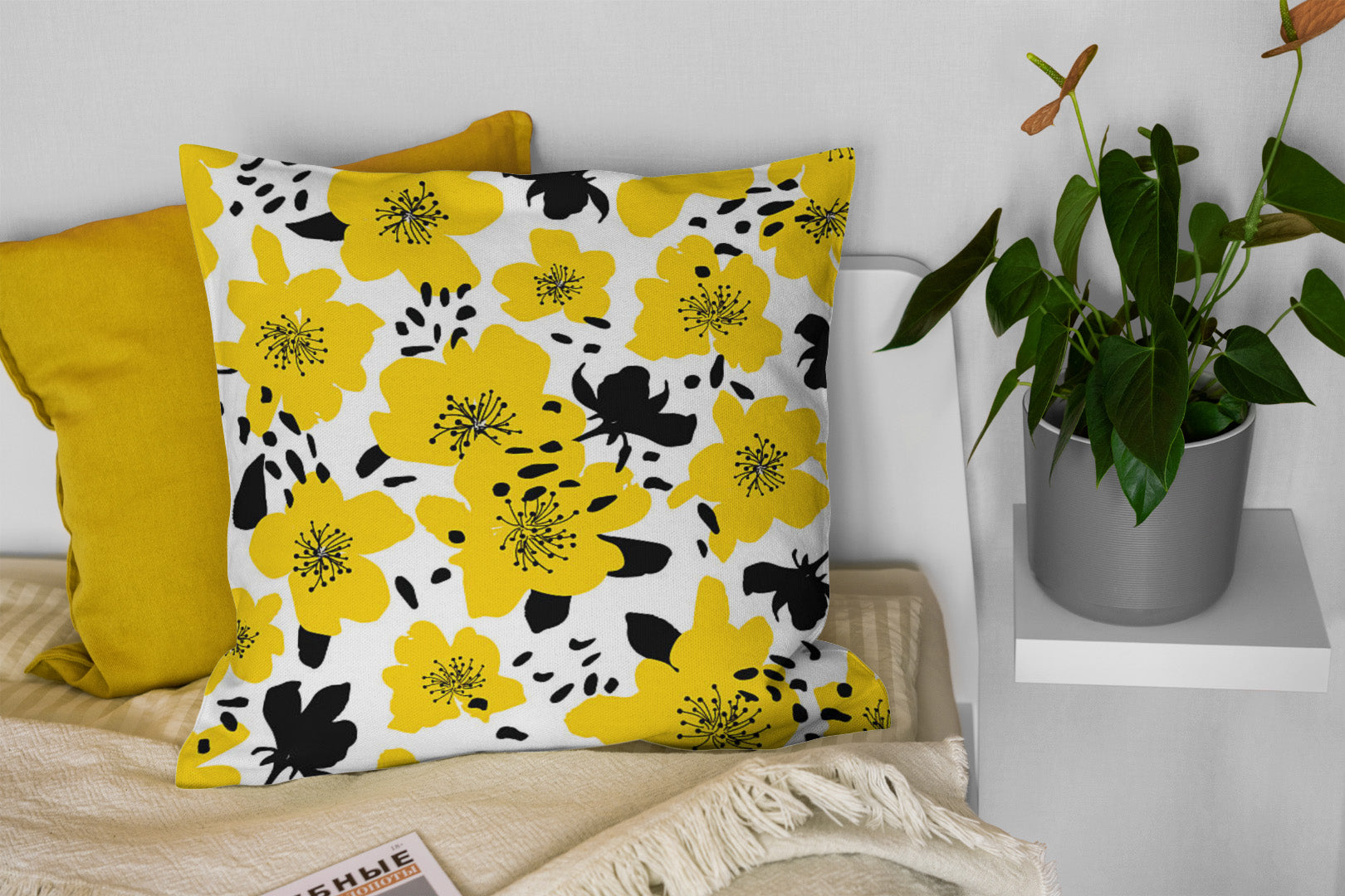 Abstract Bermuda Yellow Floral Throw Pillow Cover BERMUDA