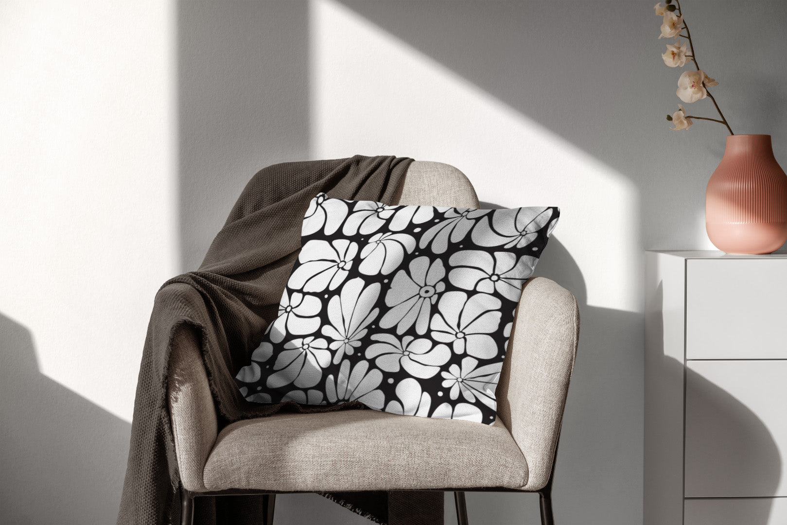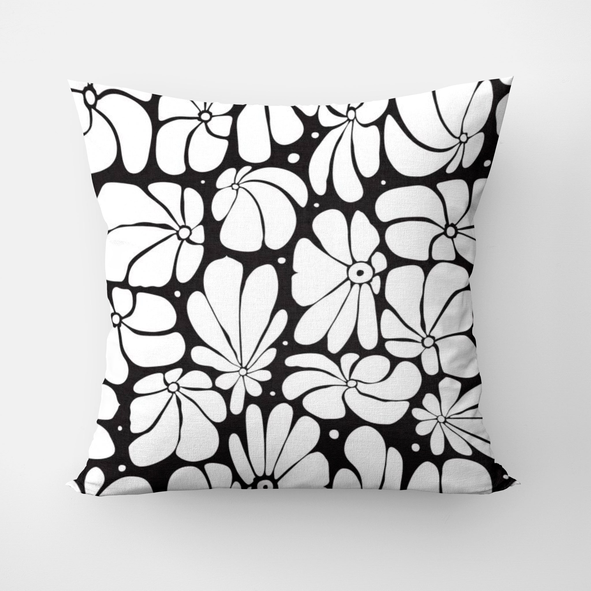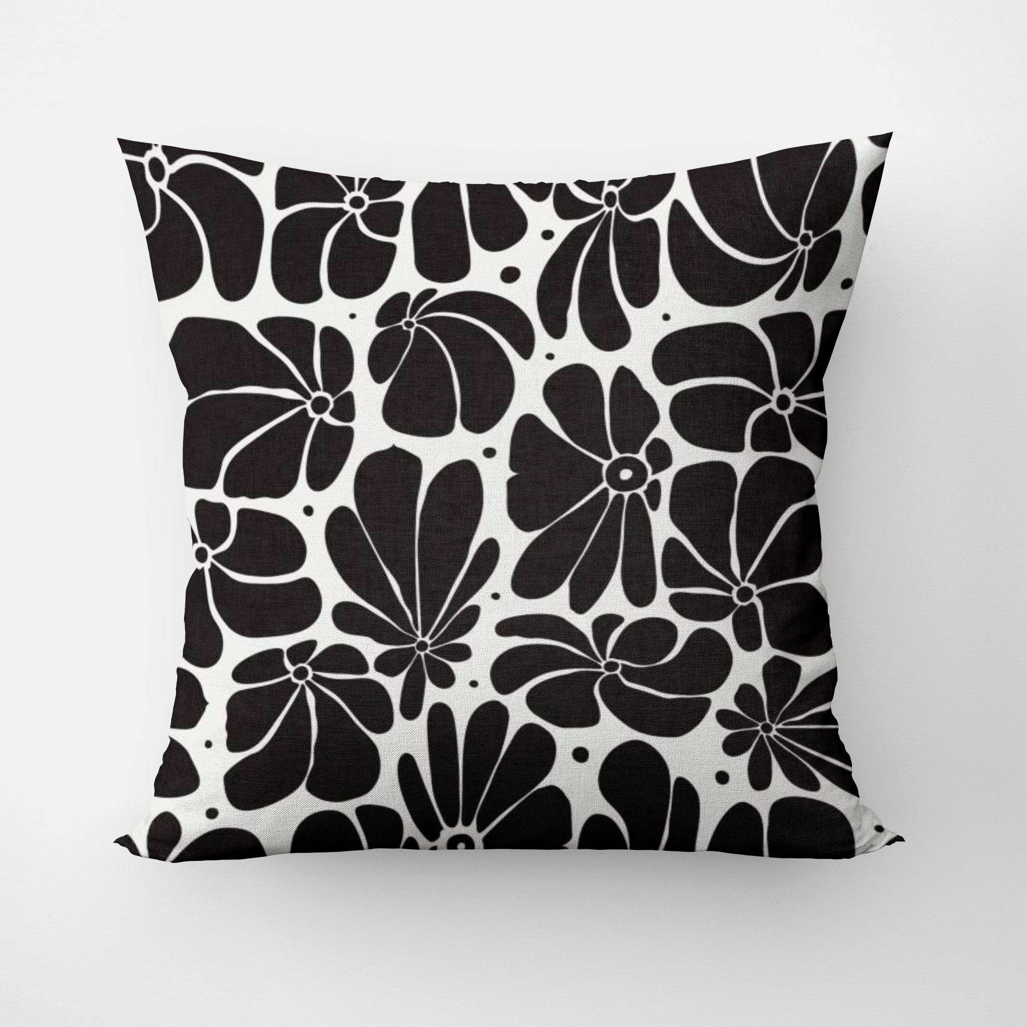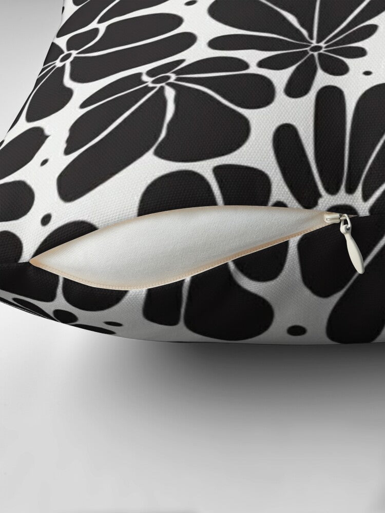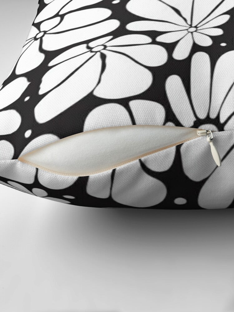 Abstract Black White Retro 70s Floral Throw Pillow Cover BLOSSOM