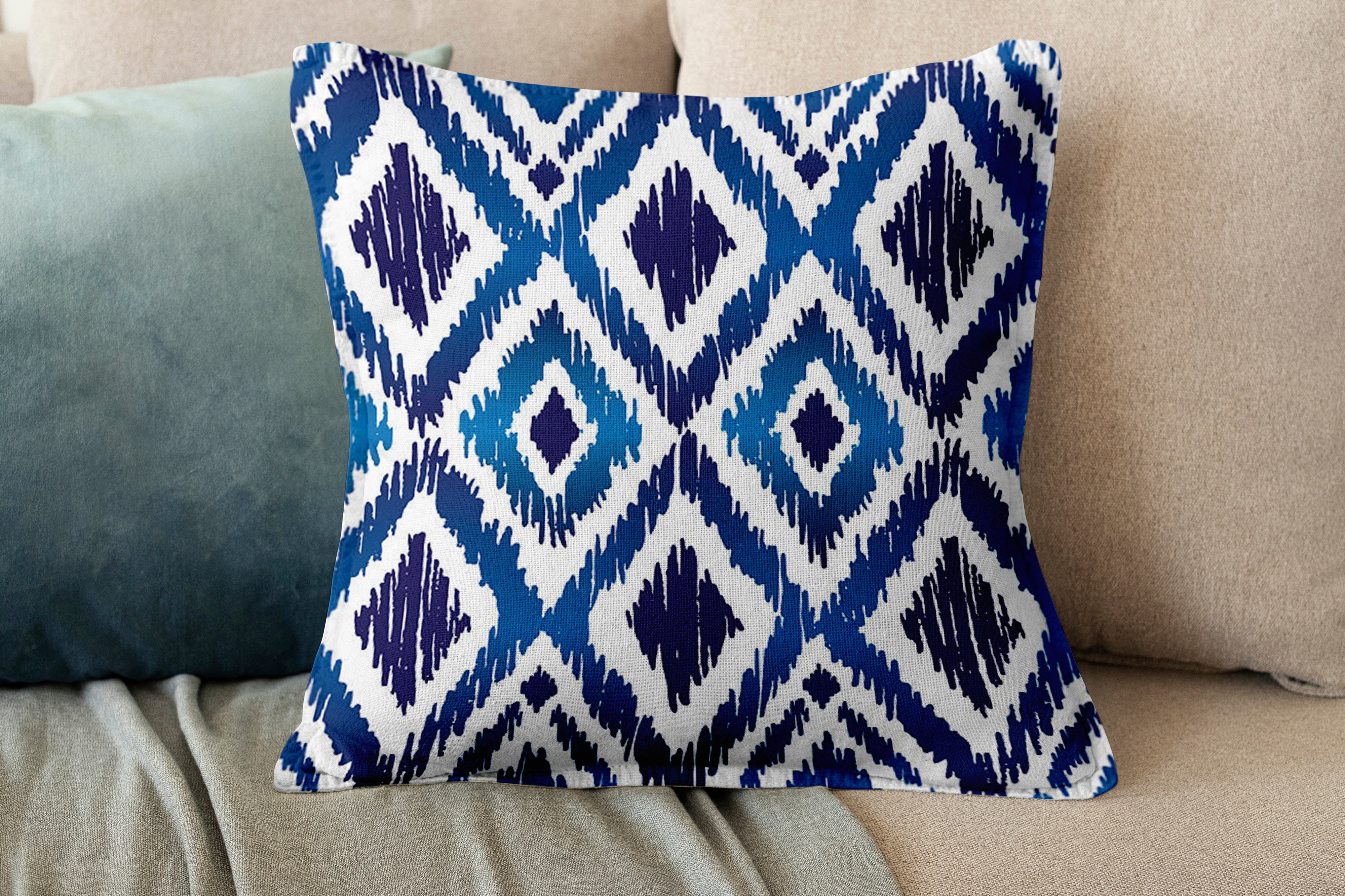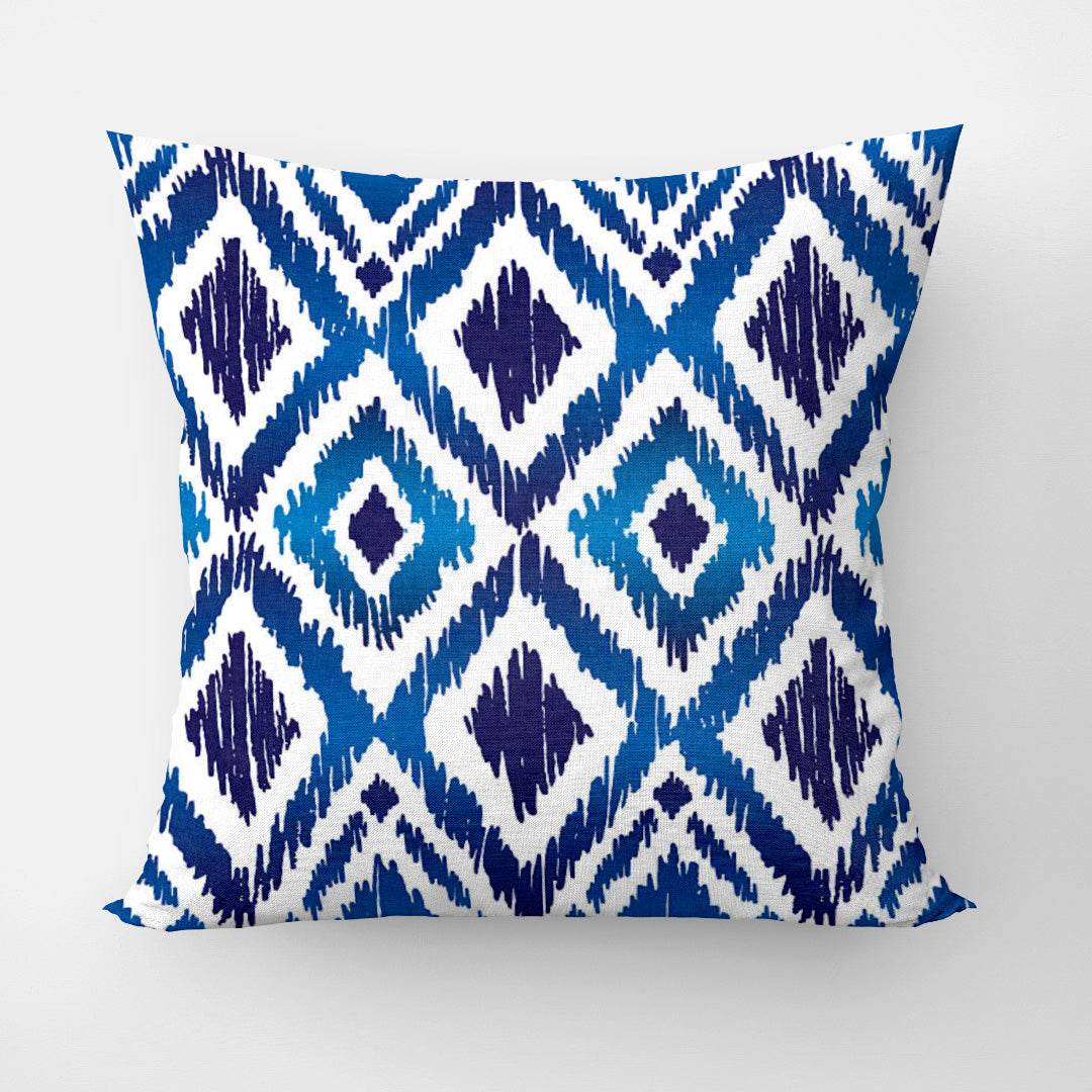 Abstract Blue Indigo Ikat Throw Pillow Cover OCEAN