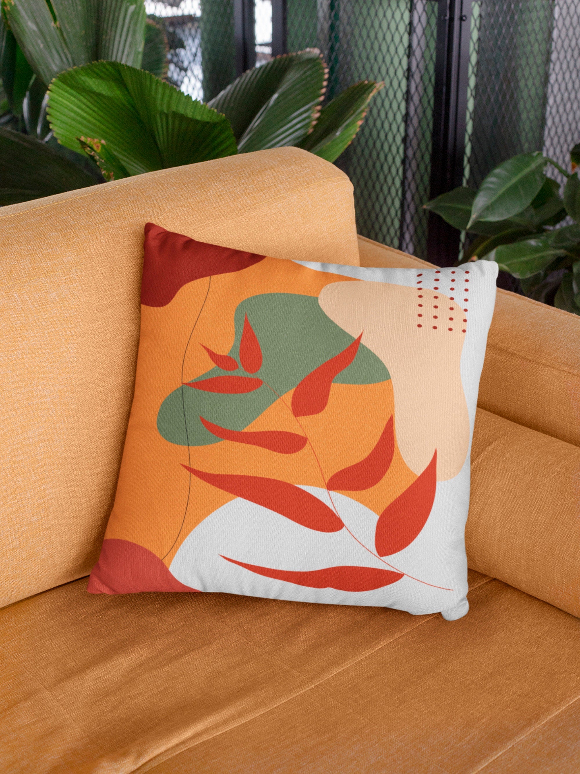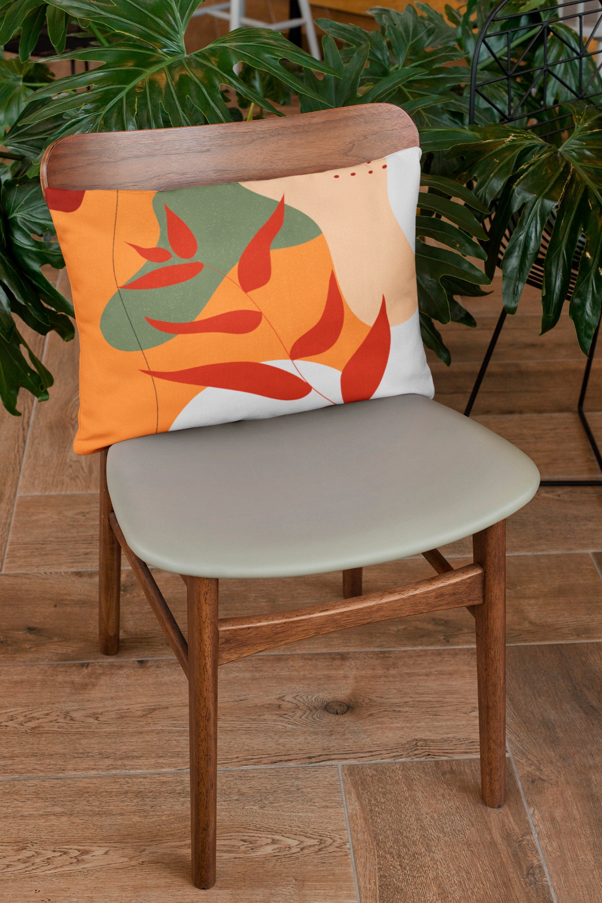 Abstract Leaves Orange Red Tropical Throw Pillow Cover LYRIA