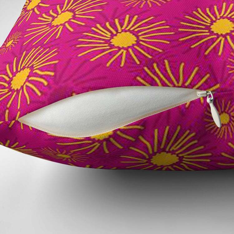 Abstract Floral Yellow Purple Maximalist Aesthetic Throw Pillow Cover