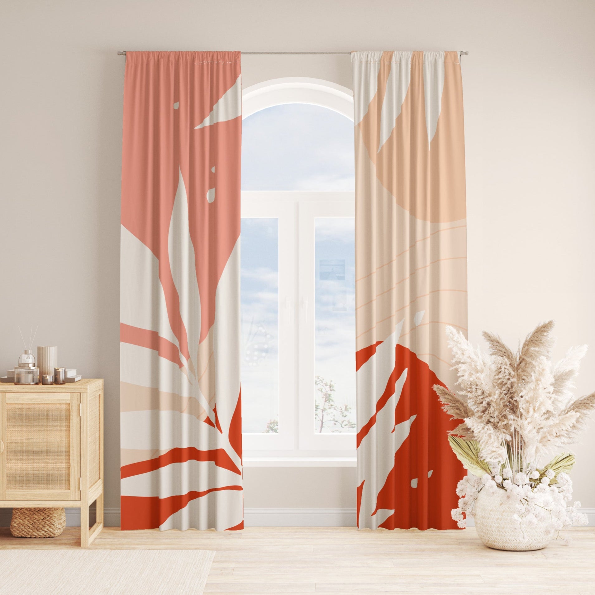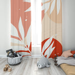 Abstract Leaves Pink Red Beige Botanic Tropical Blackout Window Curtains HAMA - 2 Panels