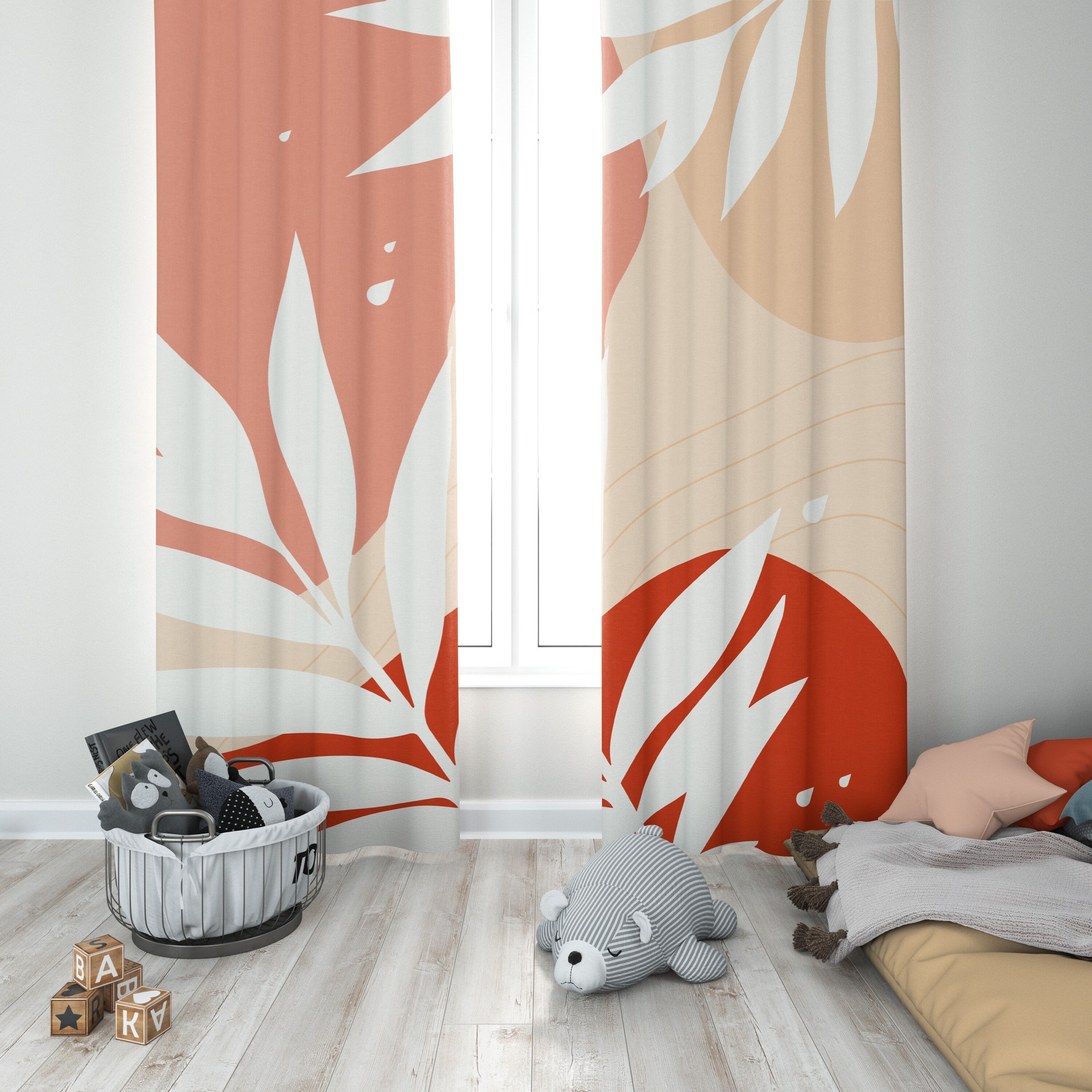 Combining color and floral beauty with HAMA window curtains. The red, pink and white with the organic shapes are perfect for delicate environments like a nursery, bedroom or living room.