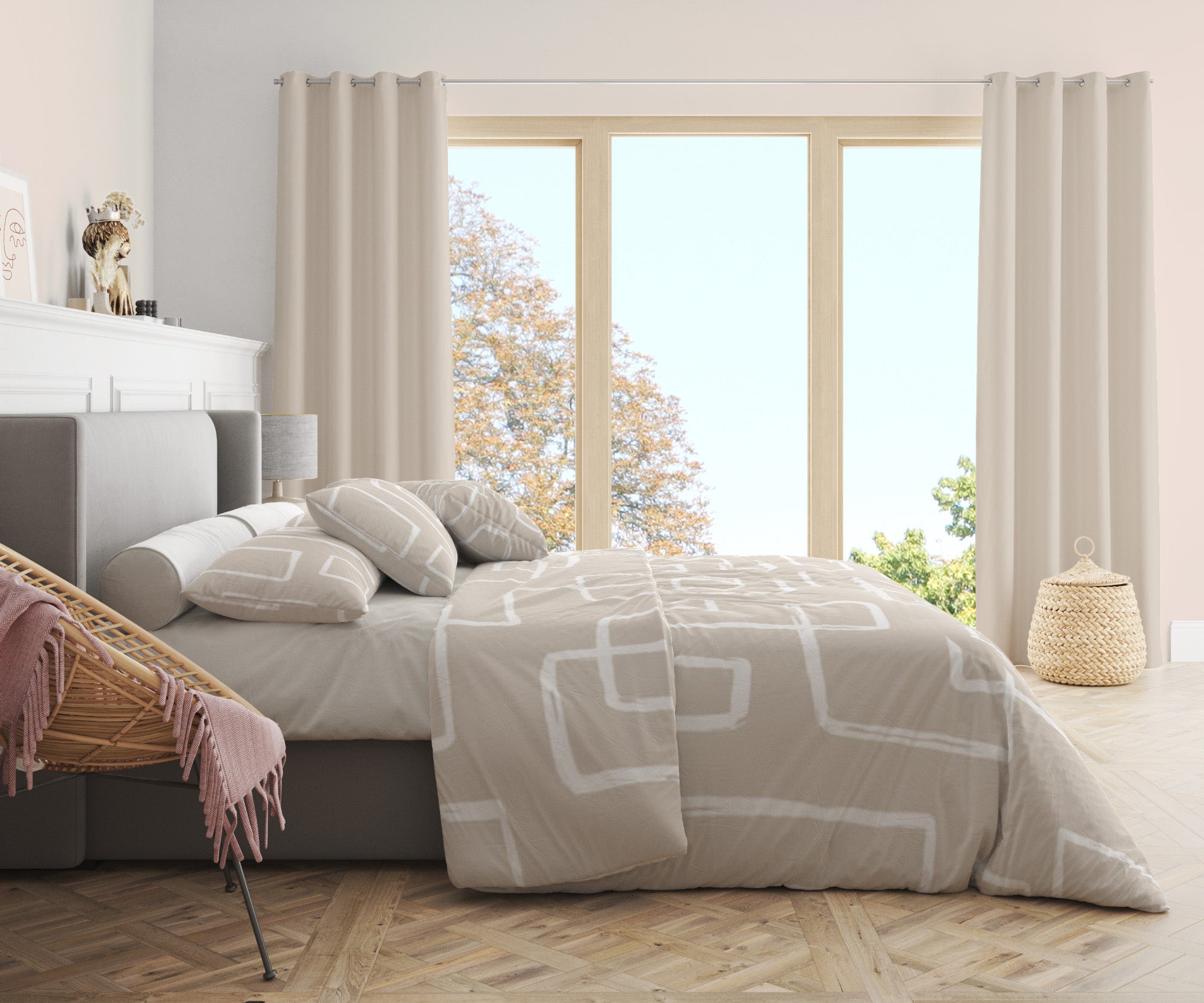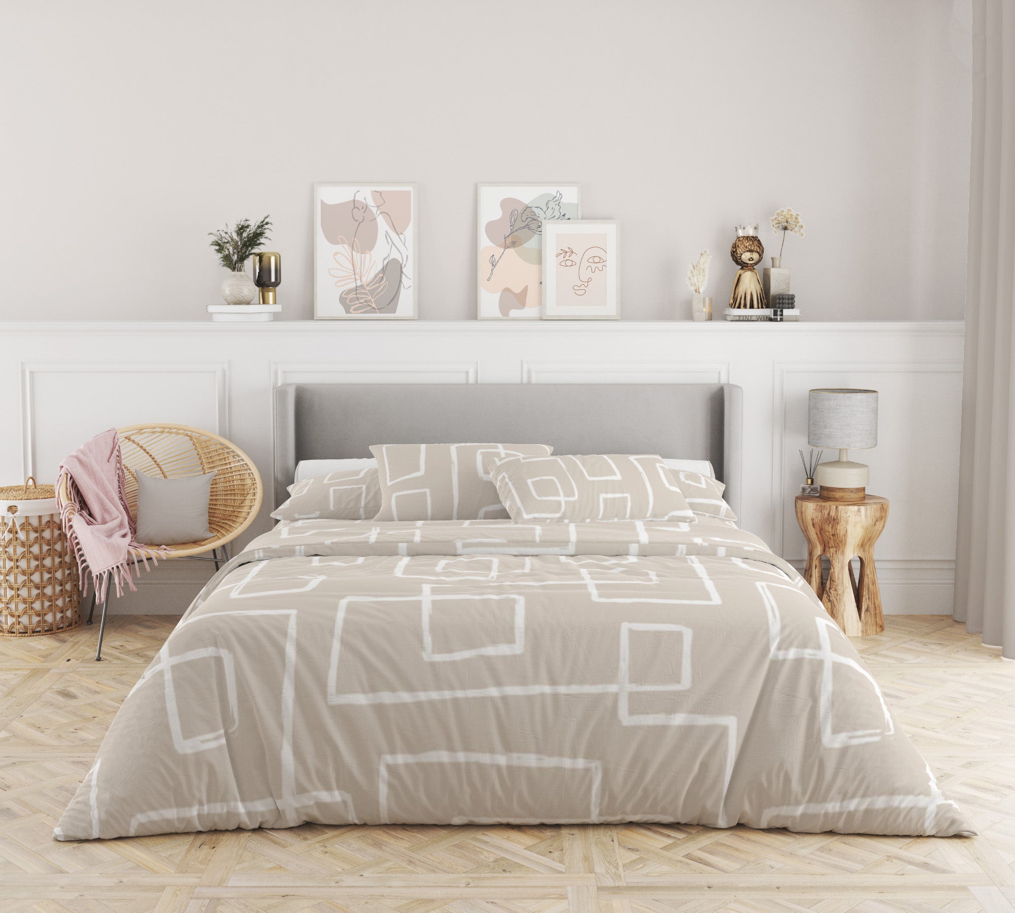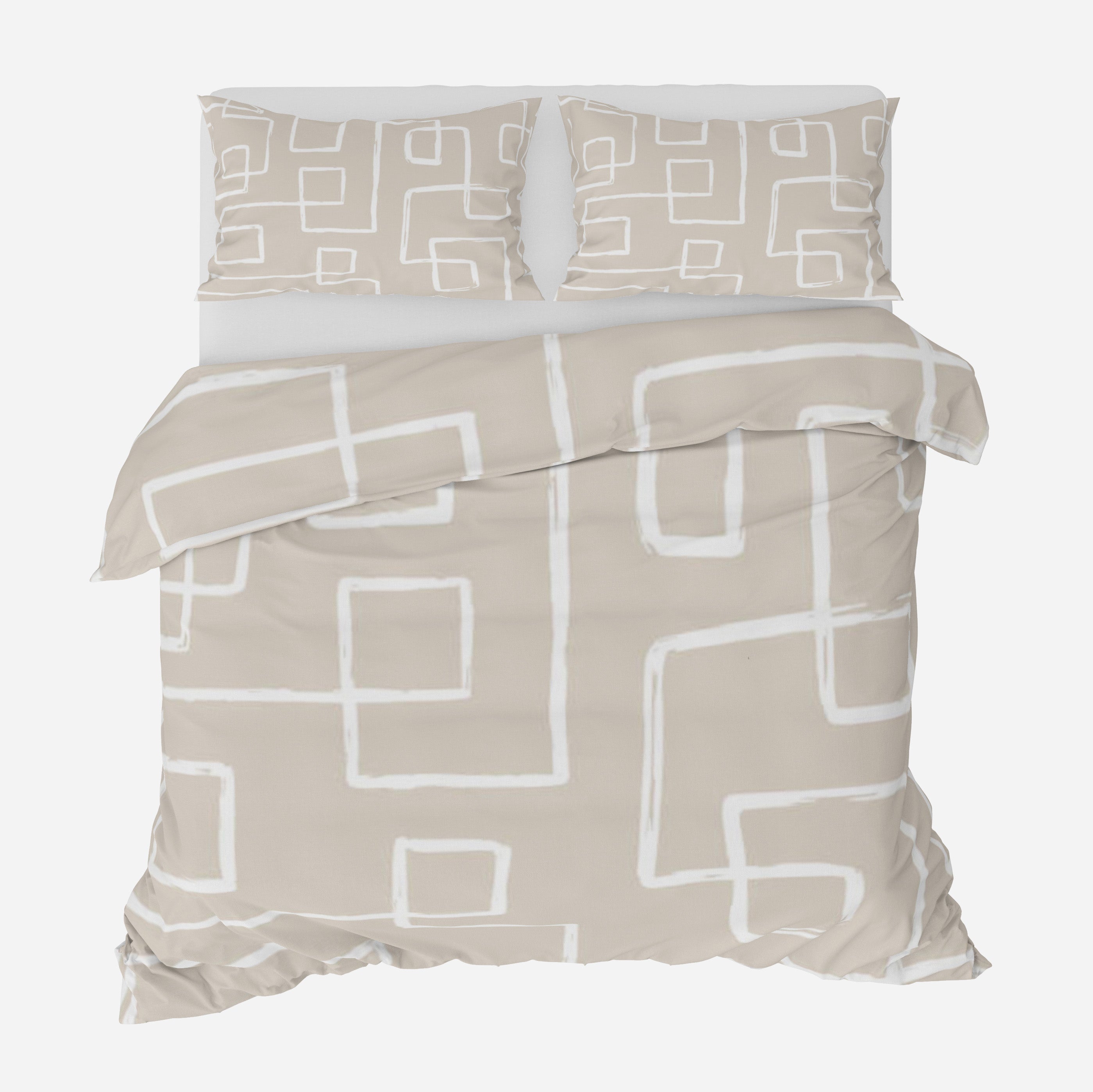 Abstract Minimalist Mid Century Modern Beige Cotton Duvet Cover Set DANA