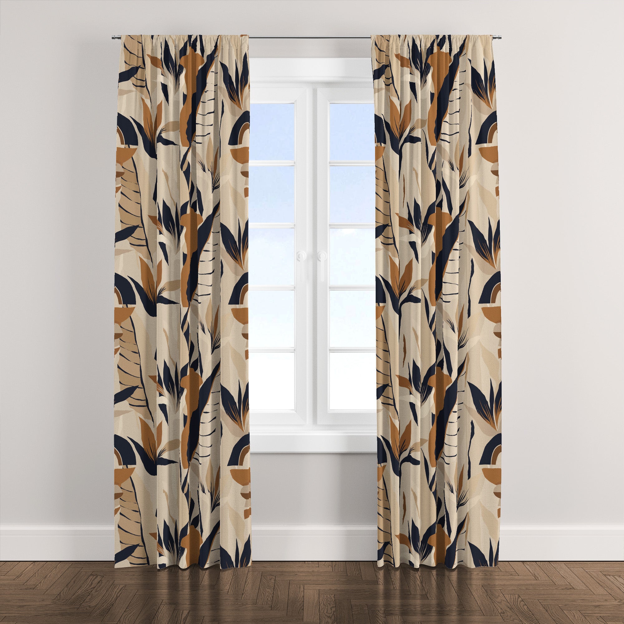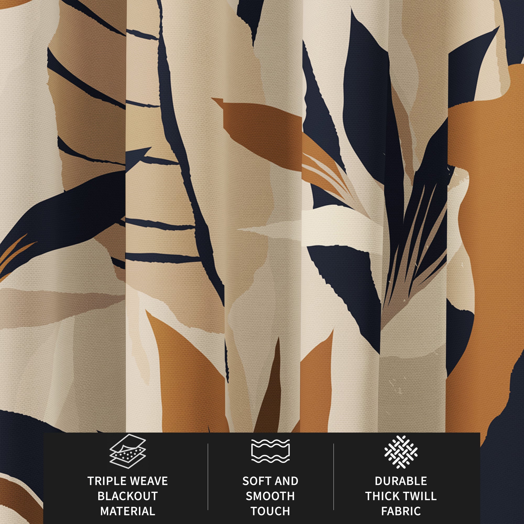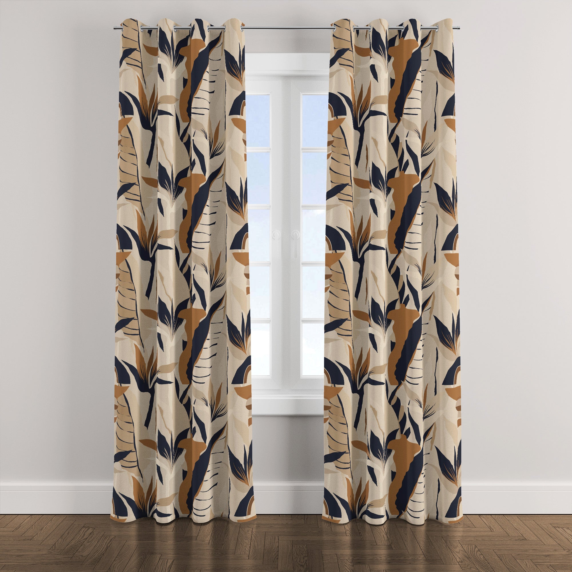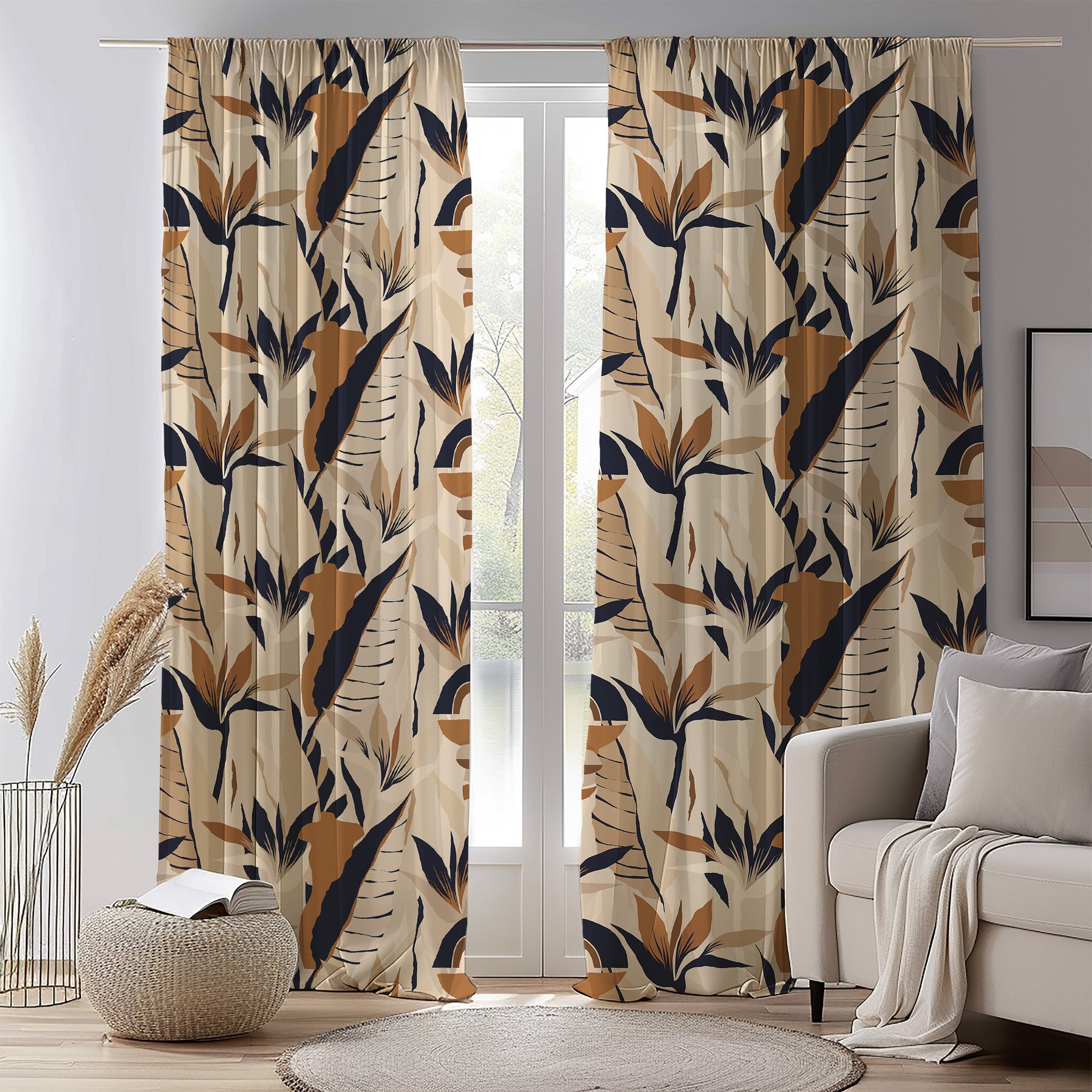 Abstract Modern Natural Colors Beige Botanical Blackout Window Curtain AYLA