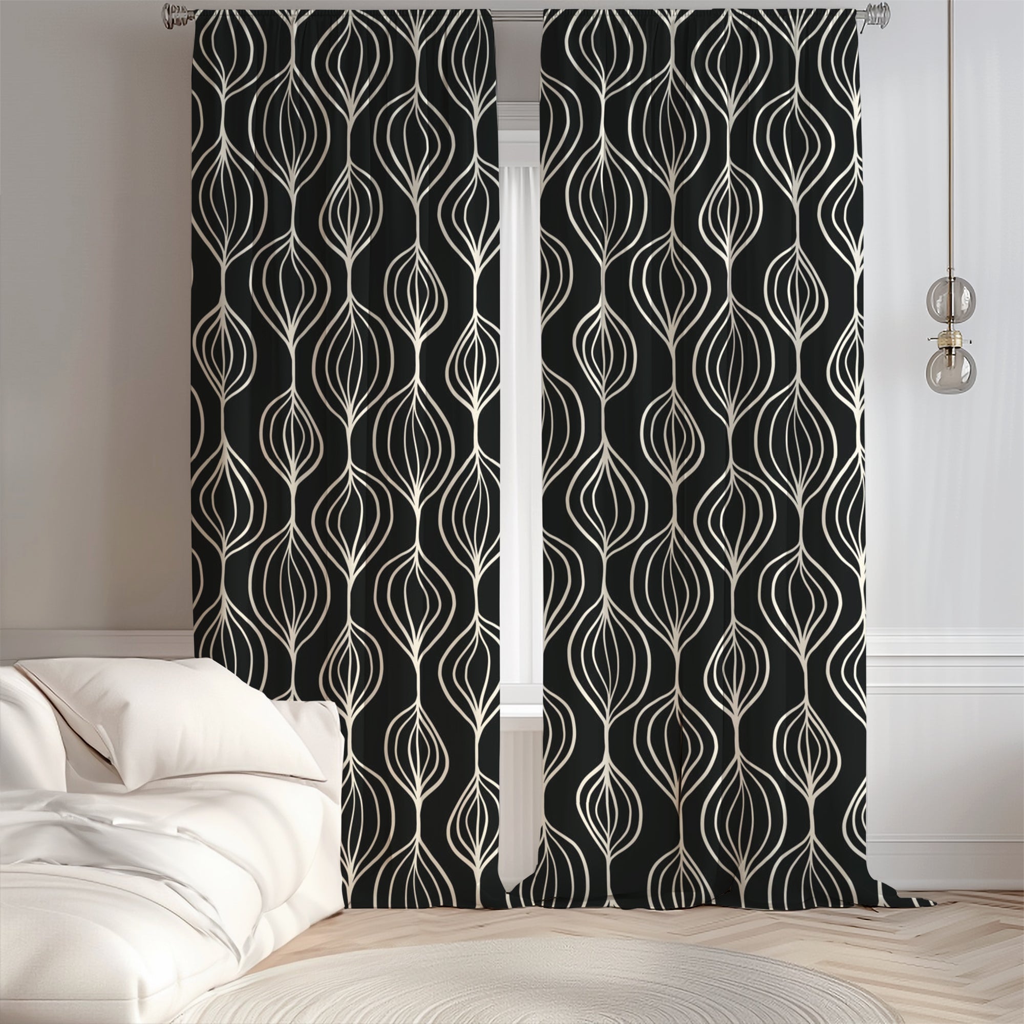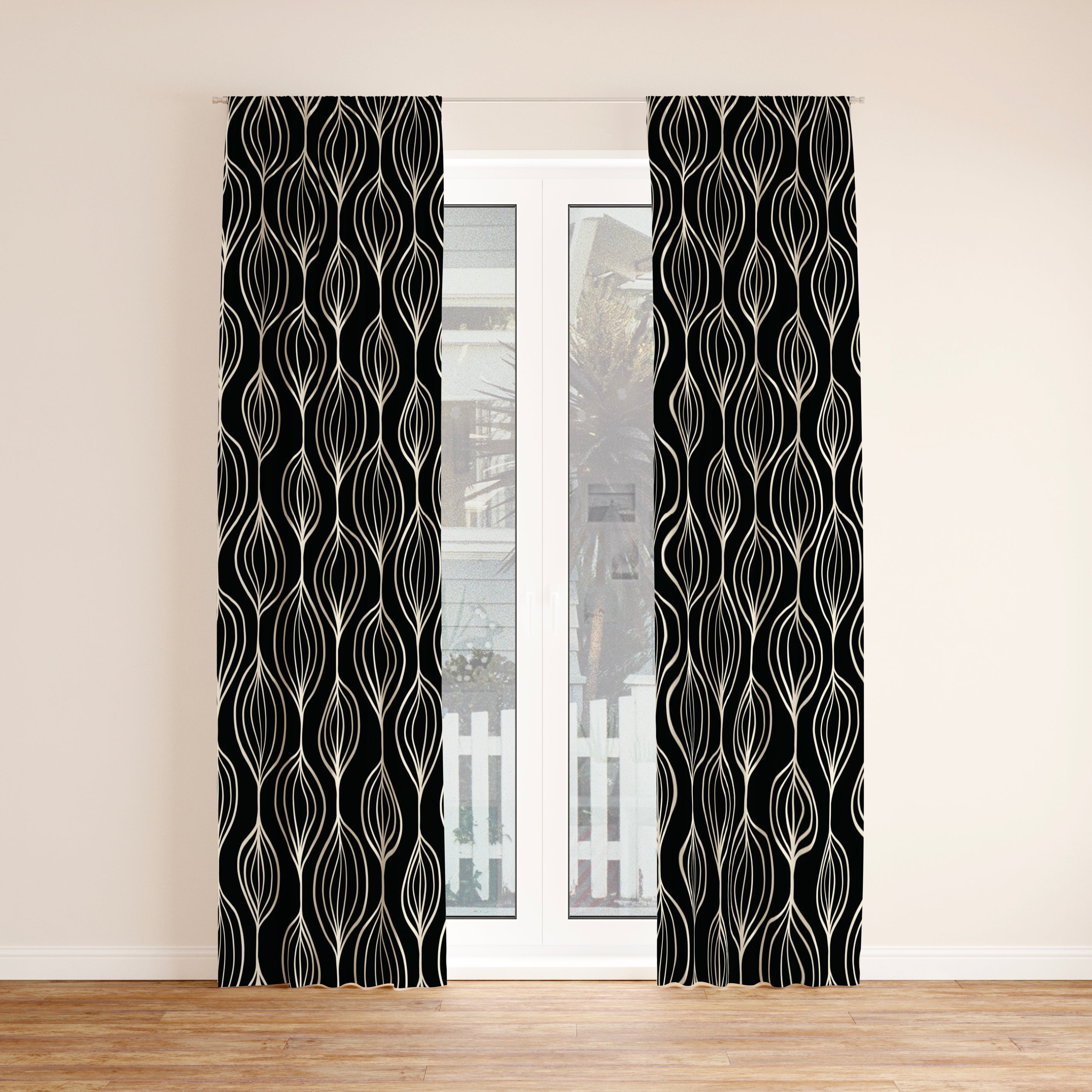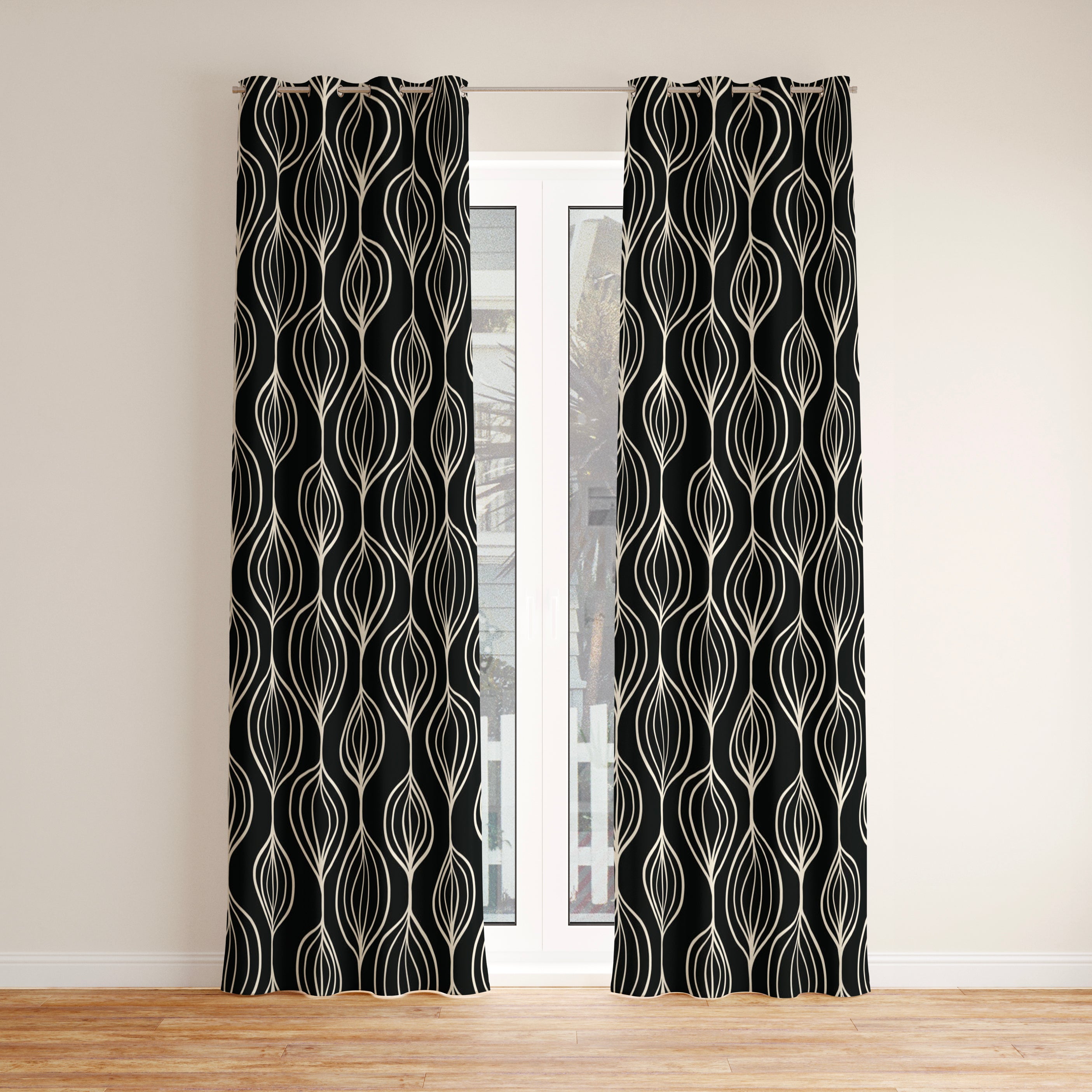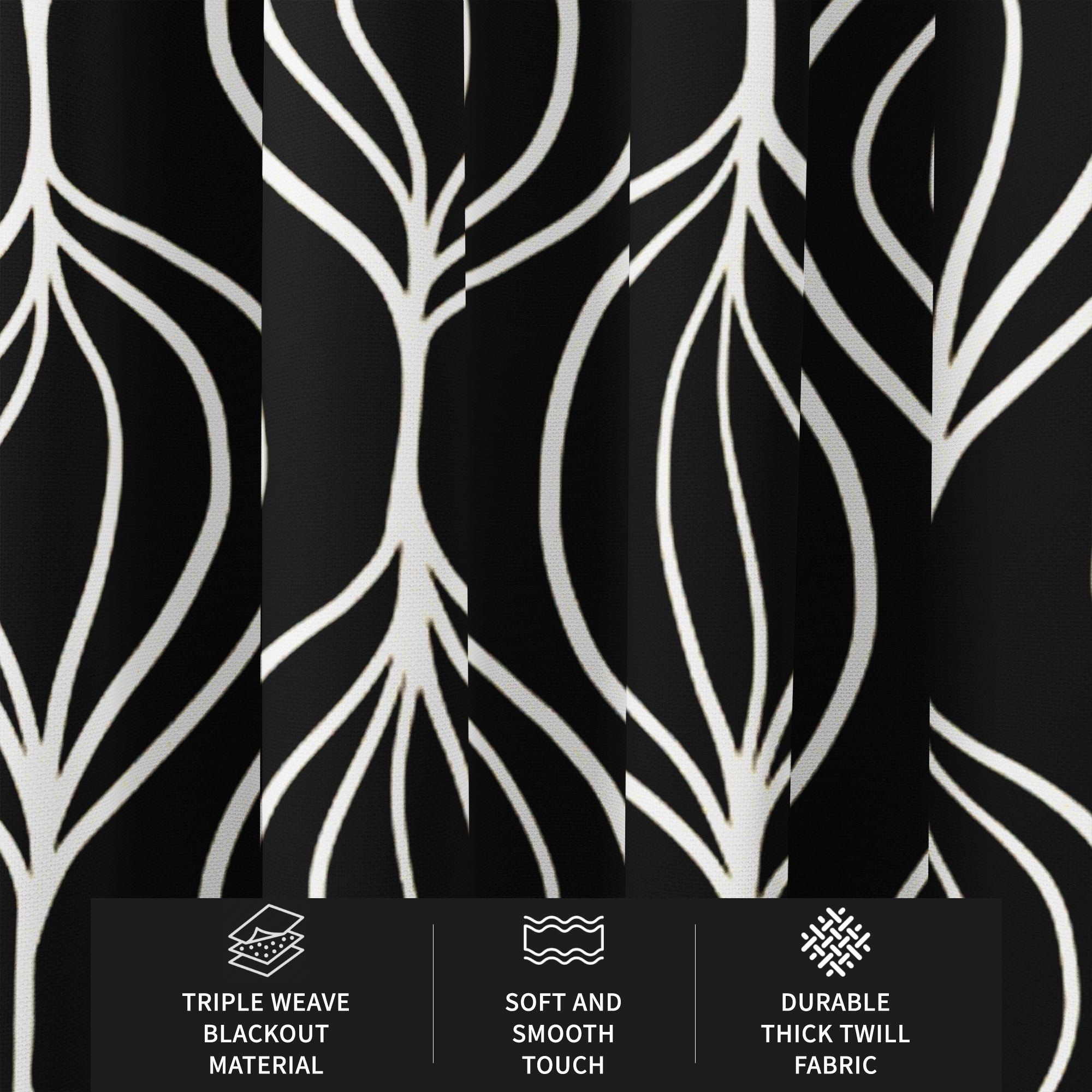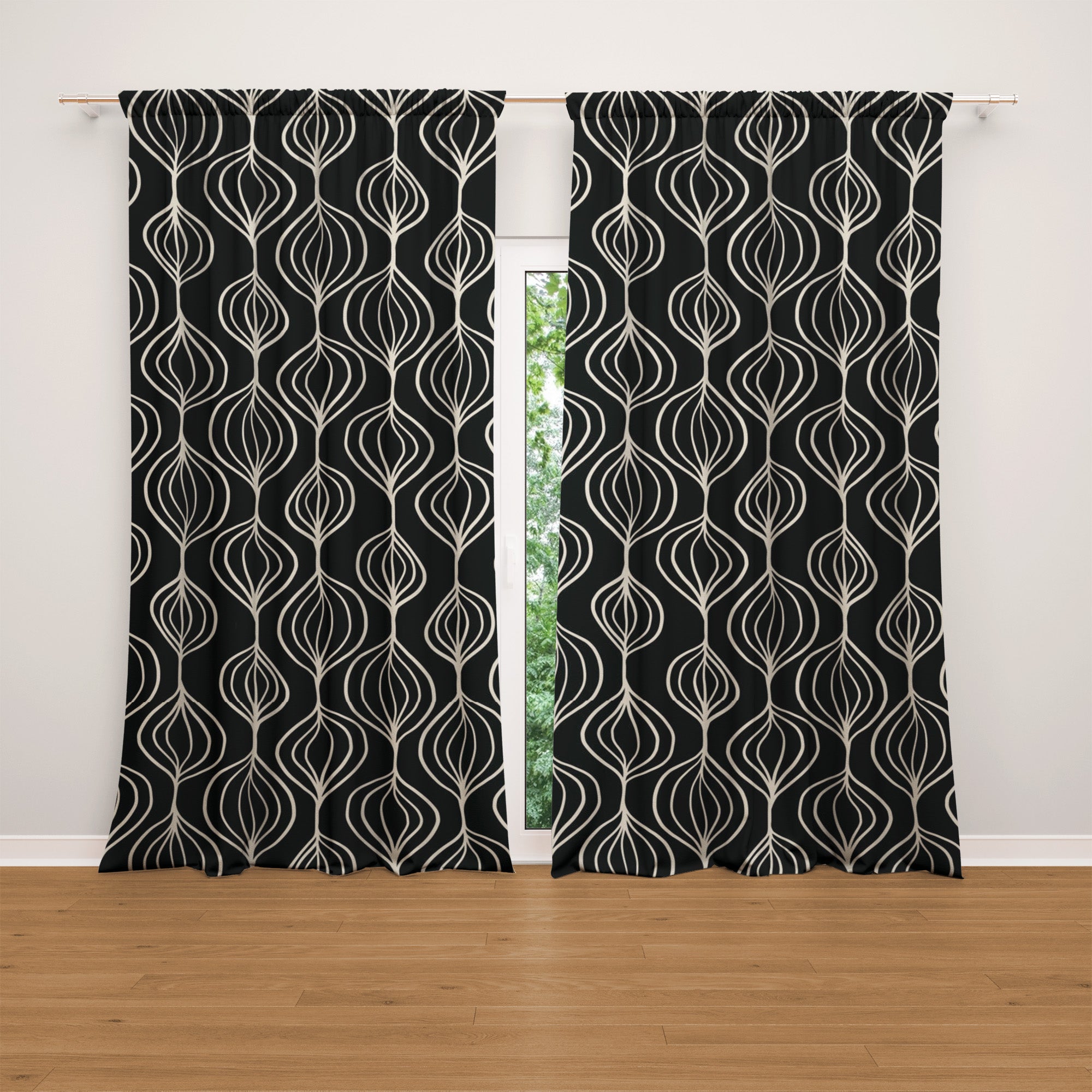 Abstract Organic Floral Geometric Black White Blackout Window Curtain KORI