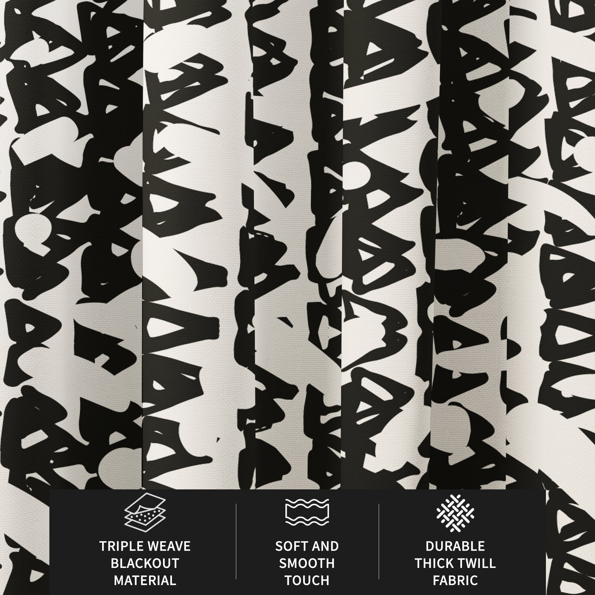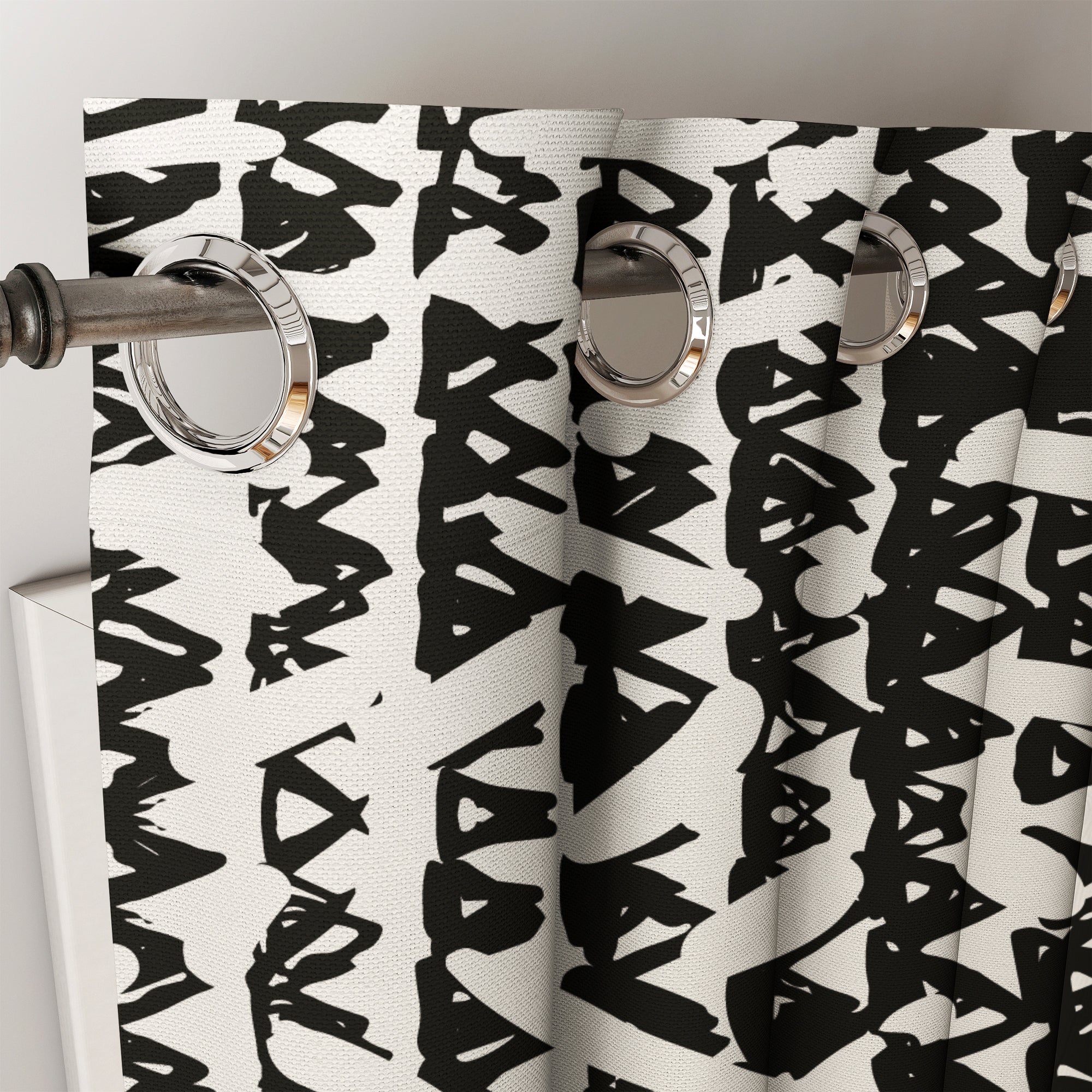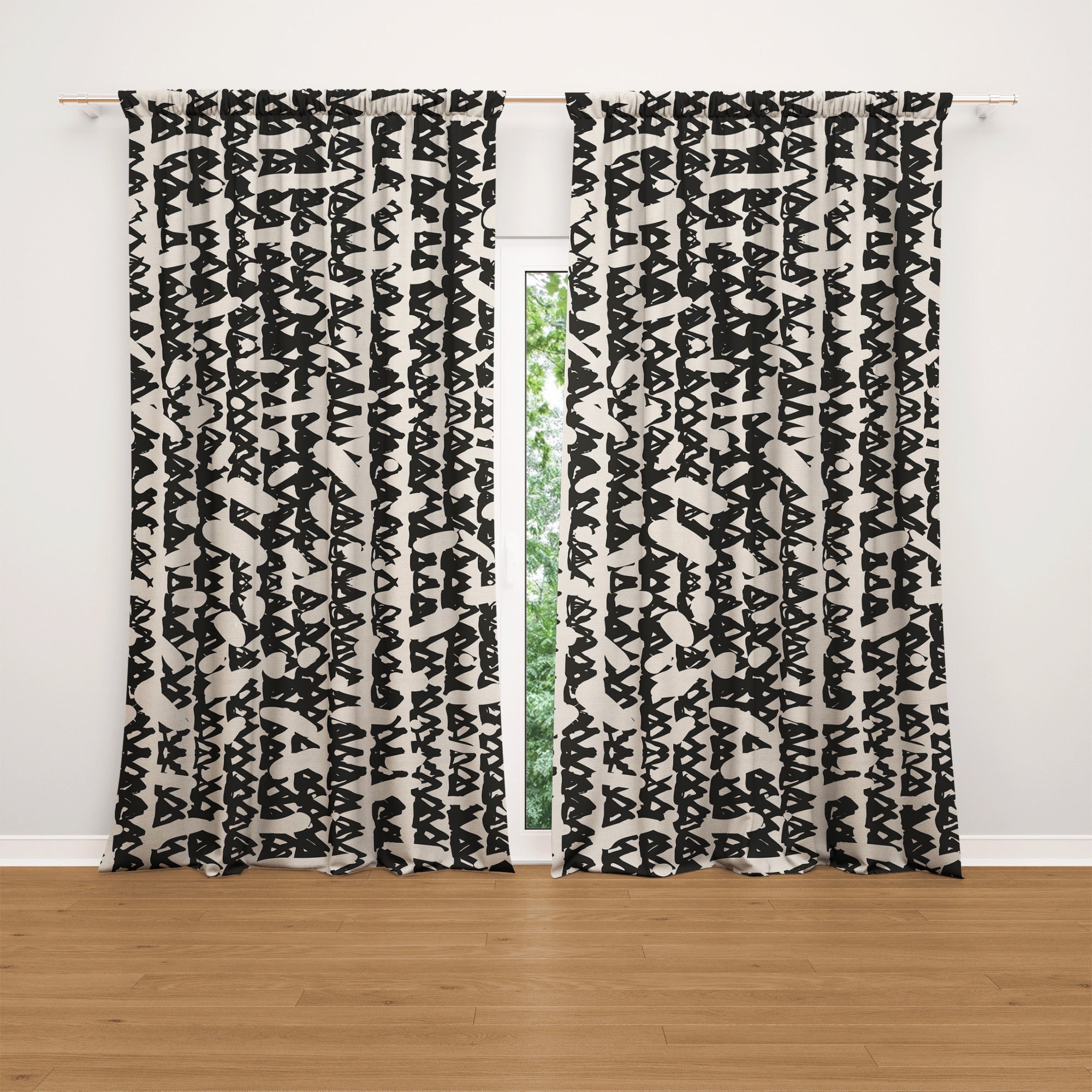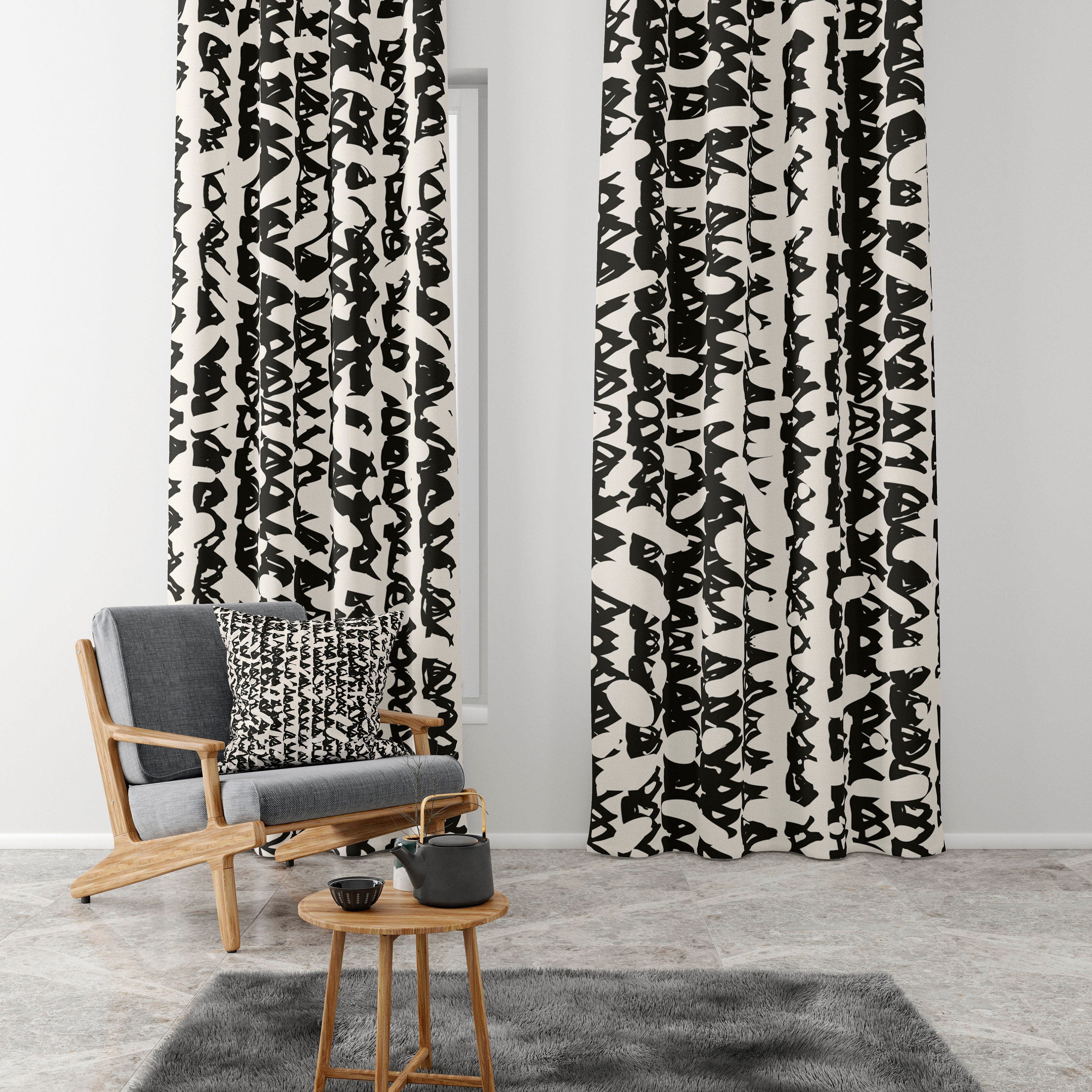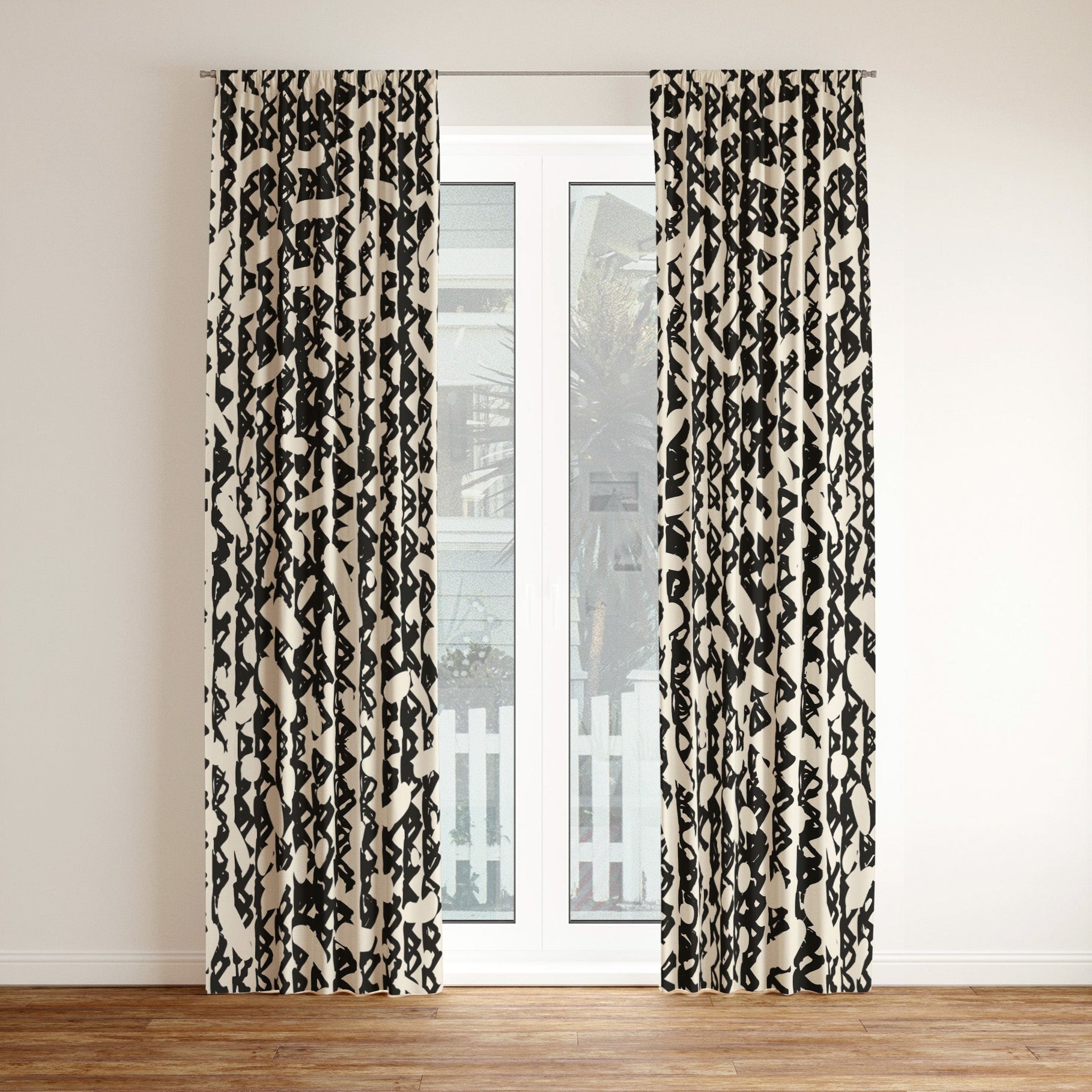 Abstract Organic Triangle Shibori Black Off-White Blackout Window Curtain INDAH