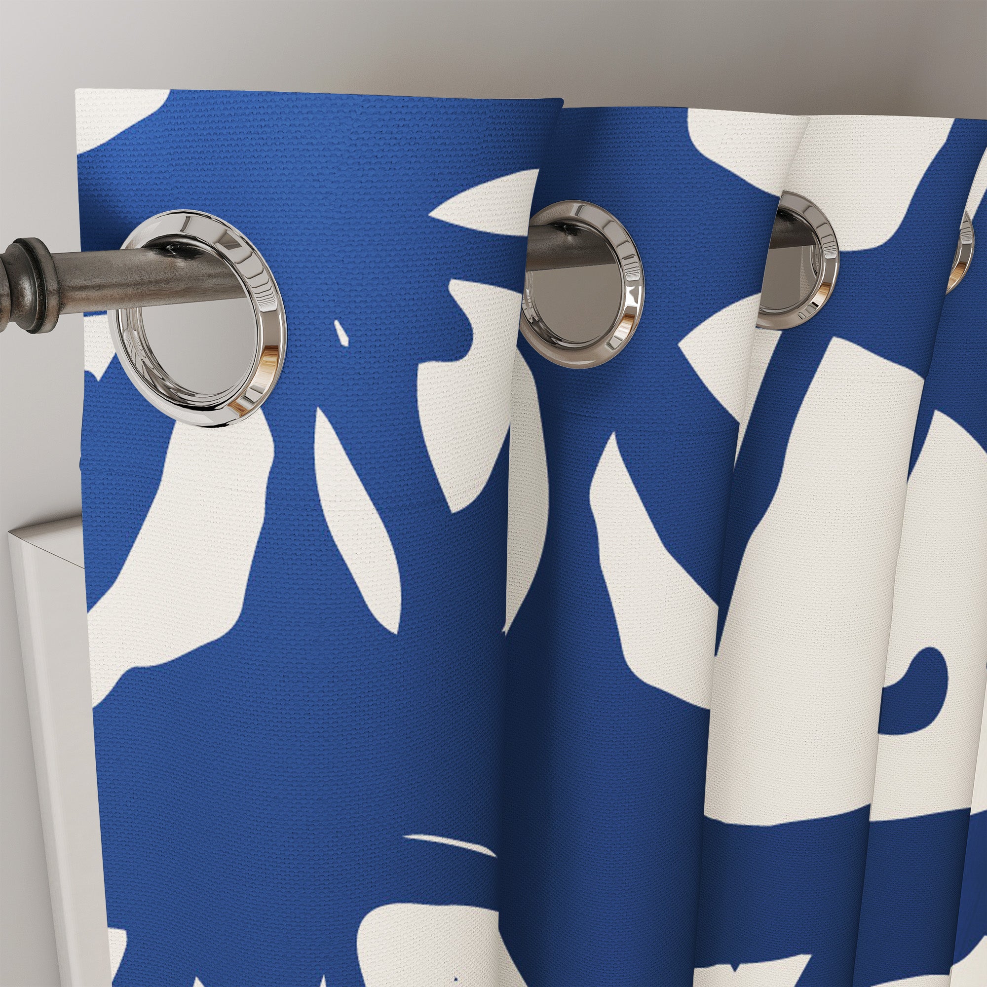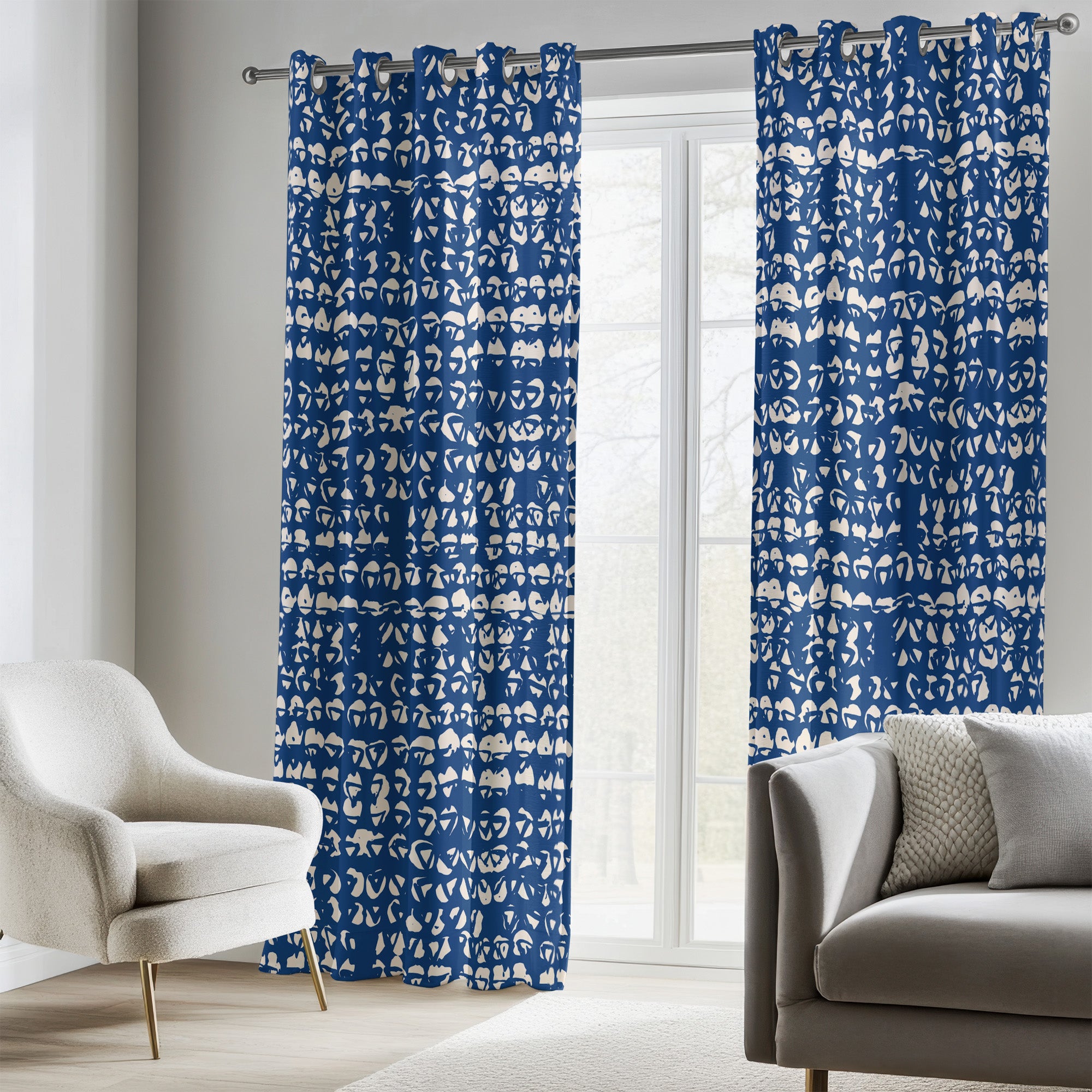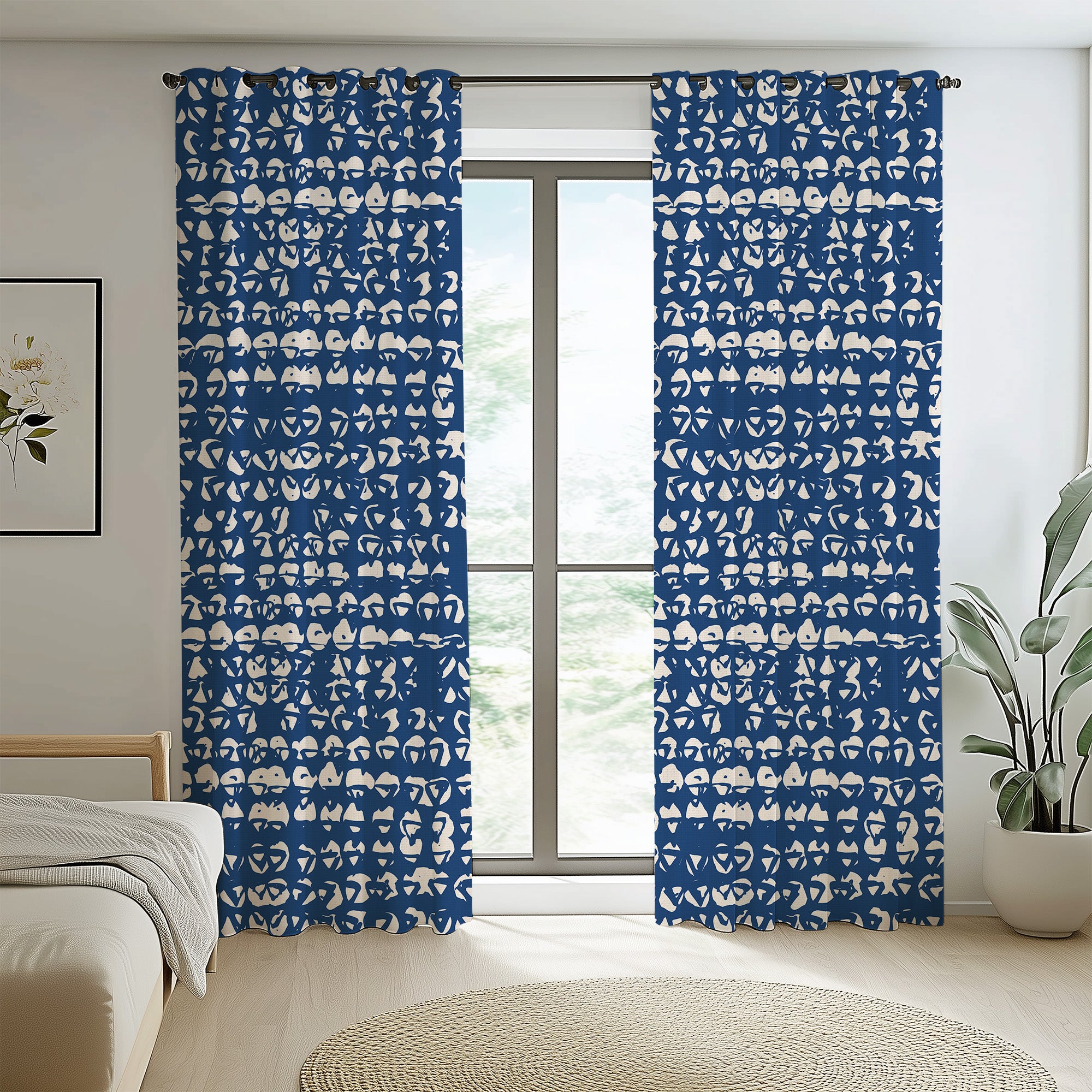 Abstract Organic Triangle Shibori Blue Indigo White Blackout Window Curtain HENDRA