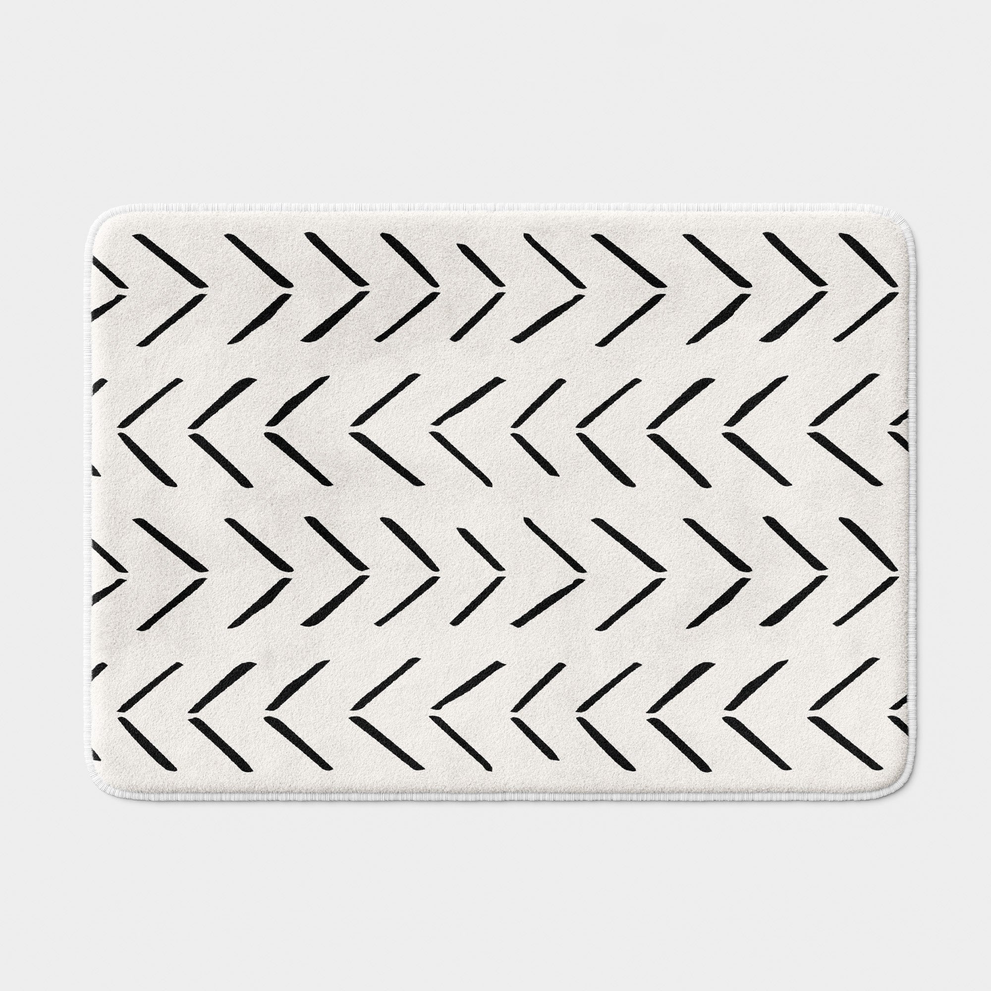 Be inspired by the IMAMU bath mat with mudcloth print, the off-white solid color and the typical African geometric pattern make it a unique detail. Great addition in a farmhouse bathroom decor.