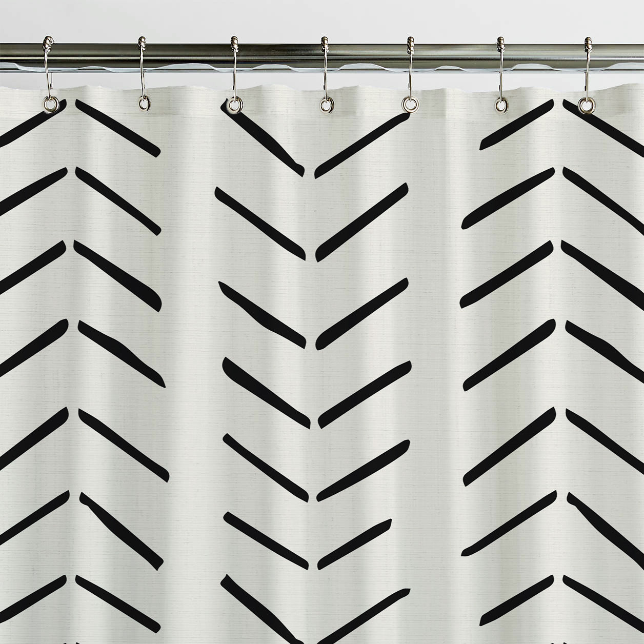 Be inspired by African IMAMU mudcloth print shower curtain, the minimalist black and off-white geometric pattern gives a truly unique look to your bathroom making it stand out. Great addition in a farmhouse bathroom decor.