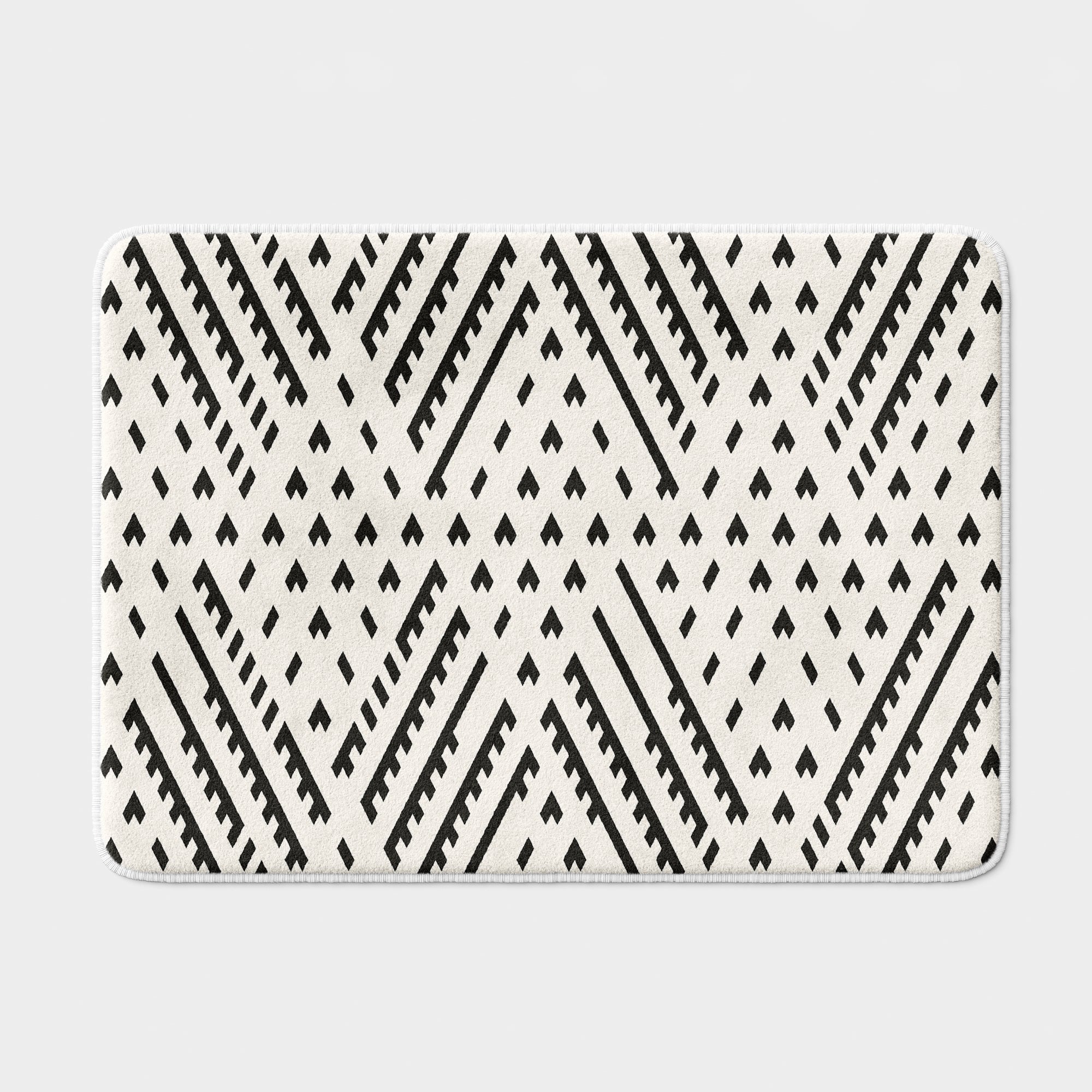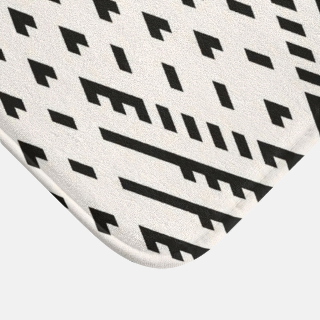 African Mudcloth Print Black Off-White Ethnic Bath Mat LUSAKA