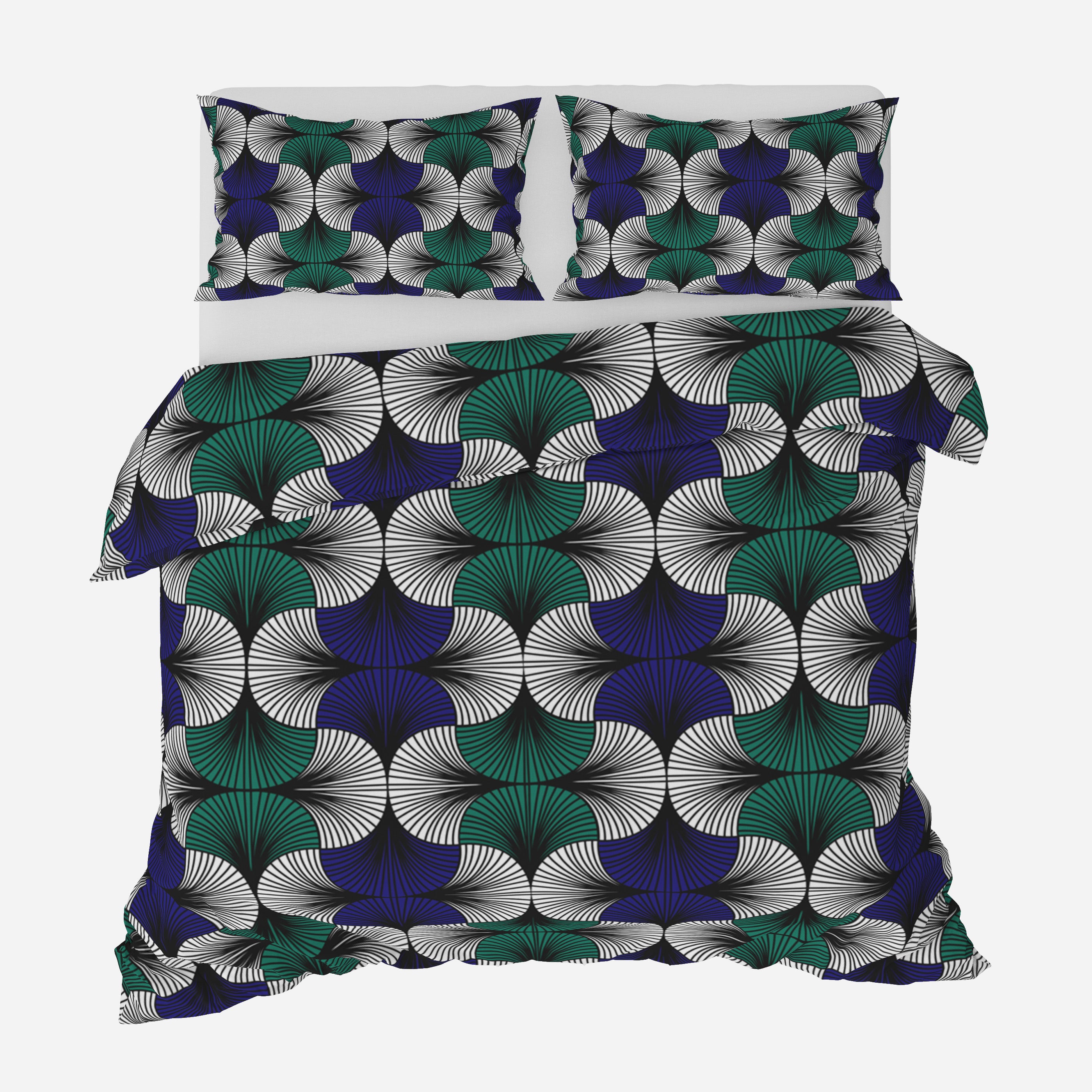 African Kitenge Navy Blue Green Ethnic Cotton Duvet Cover Set HADIZA