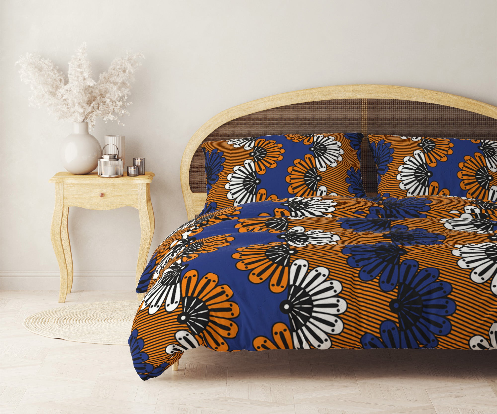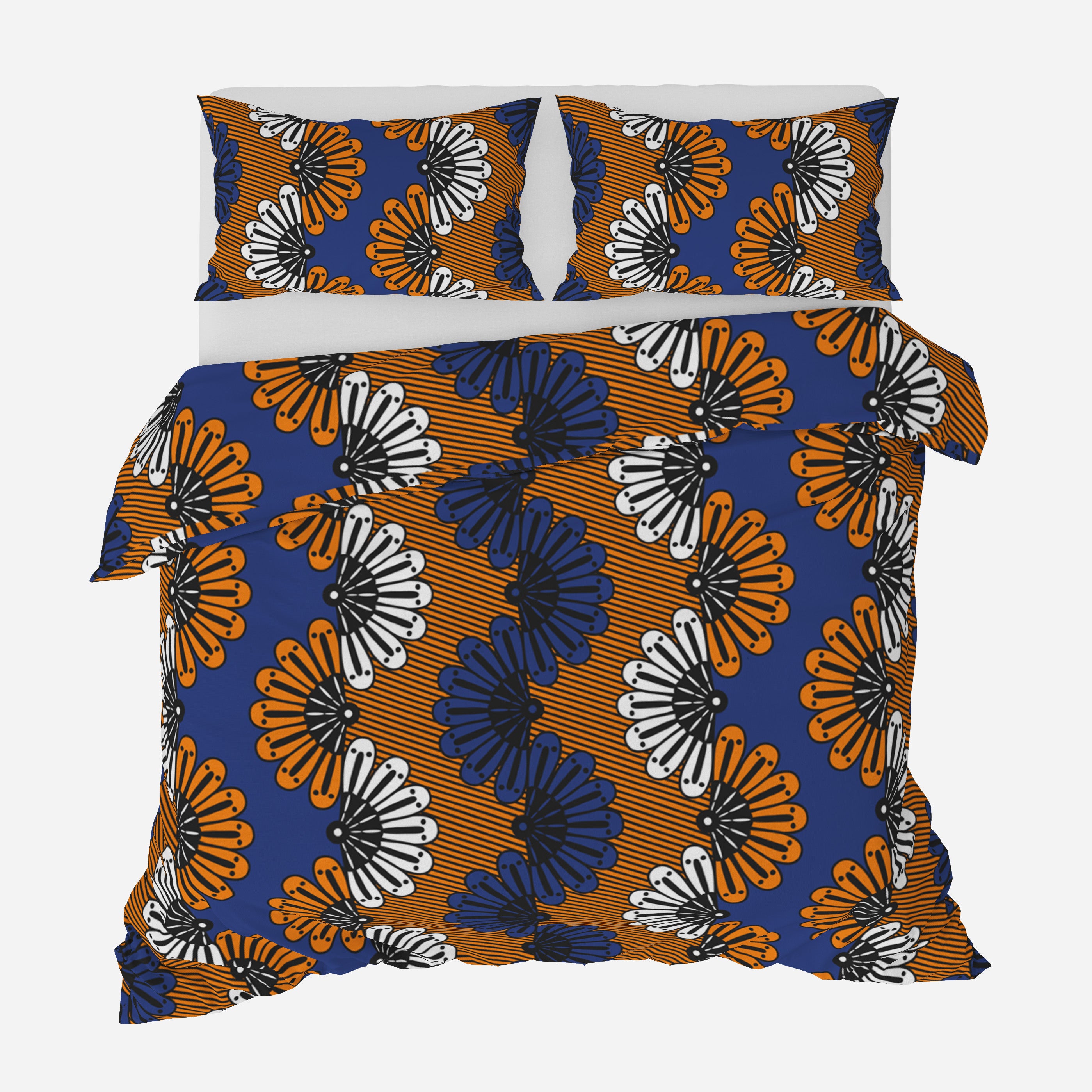 African Kitenge Blue Orange Ethnic Floral Cotton Duvet Cover Set ADAMMA