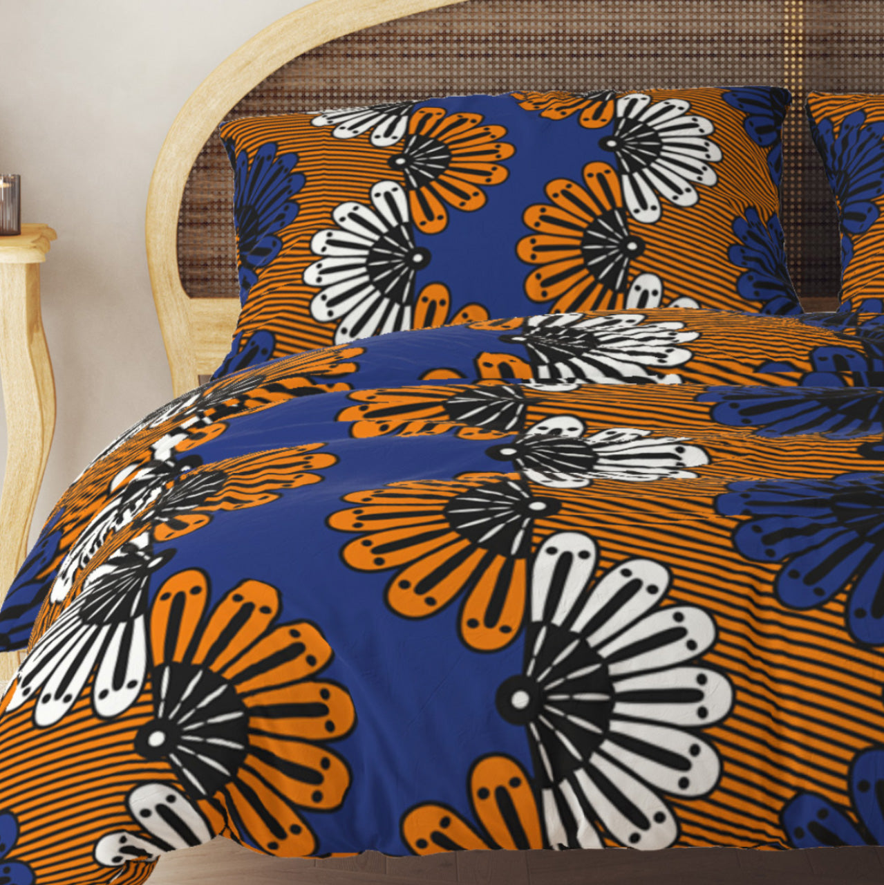 Get inspired and create a totally unique bedroom. The ADAMMA duvet cover inspired by the African ethnic Kitenge motif in vibrant blue and orange colors is designed to give personality and bring joy.