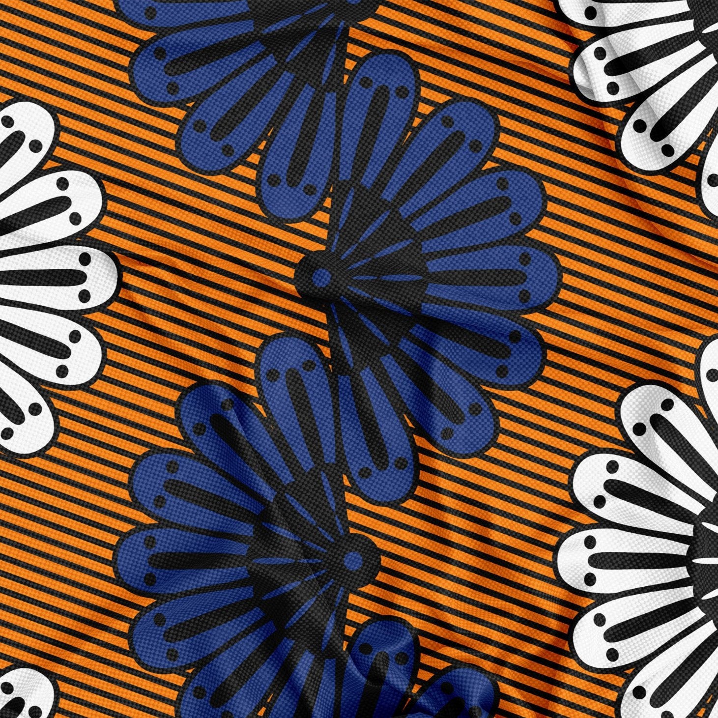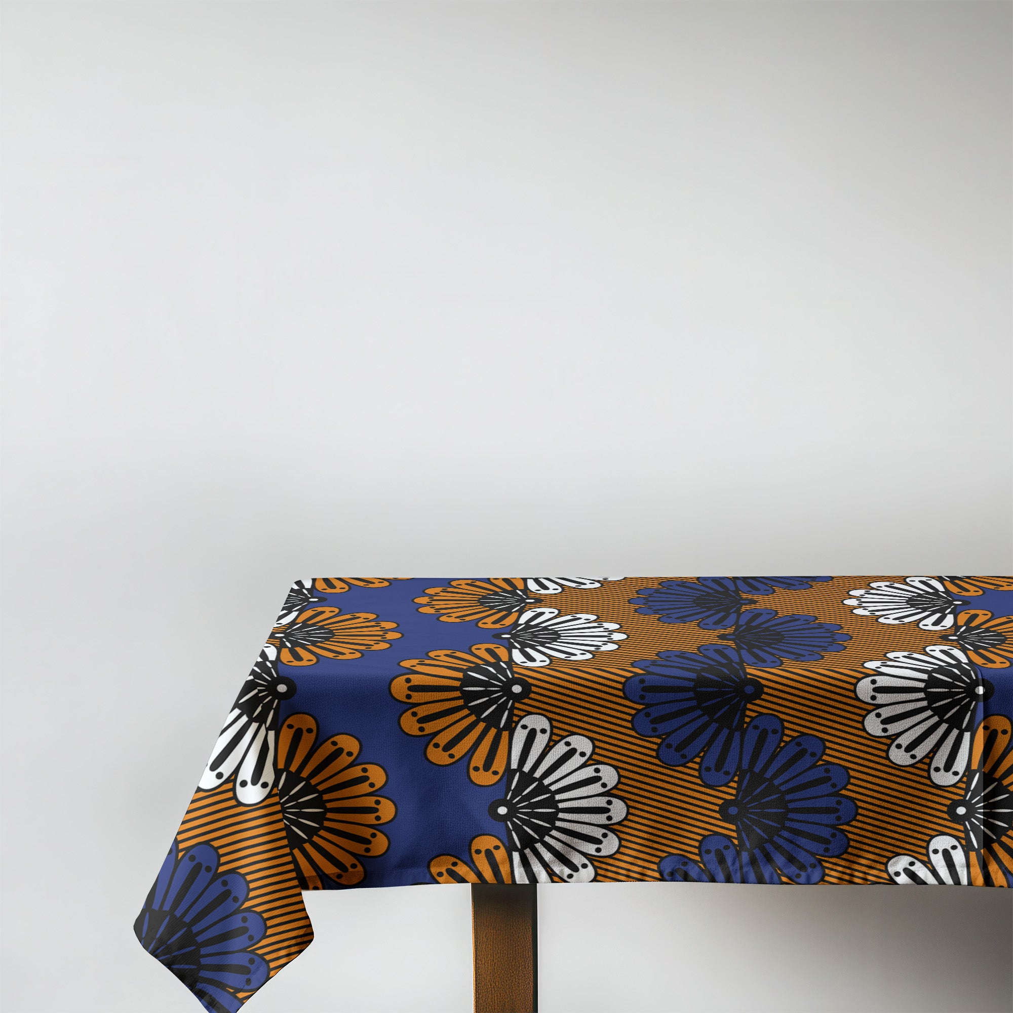 African Kitenge Blue Orange Ethnic Floral Tablecloth ADAMMA
