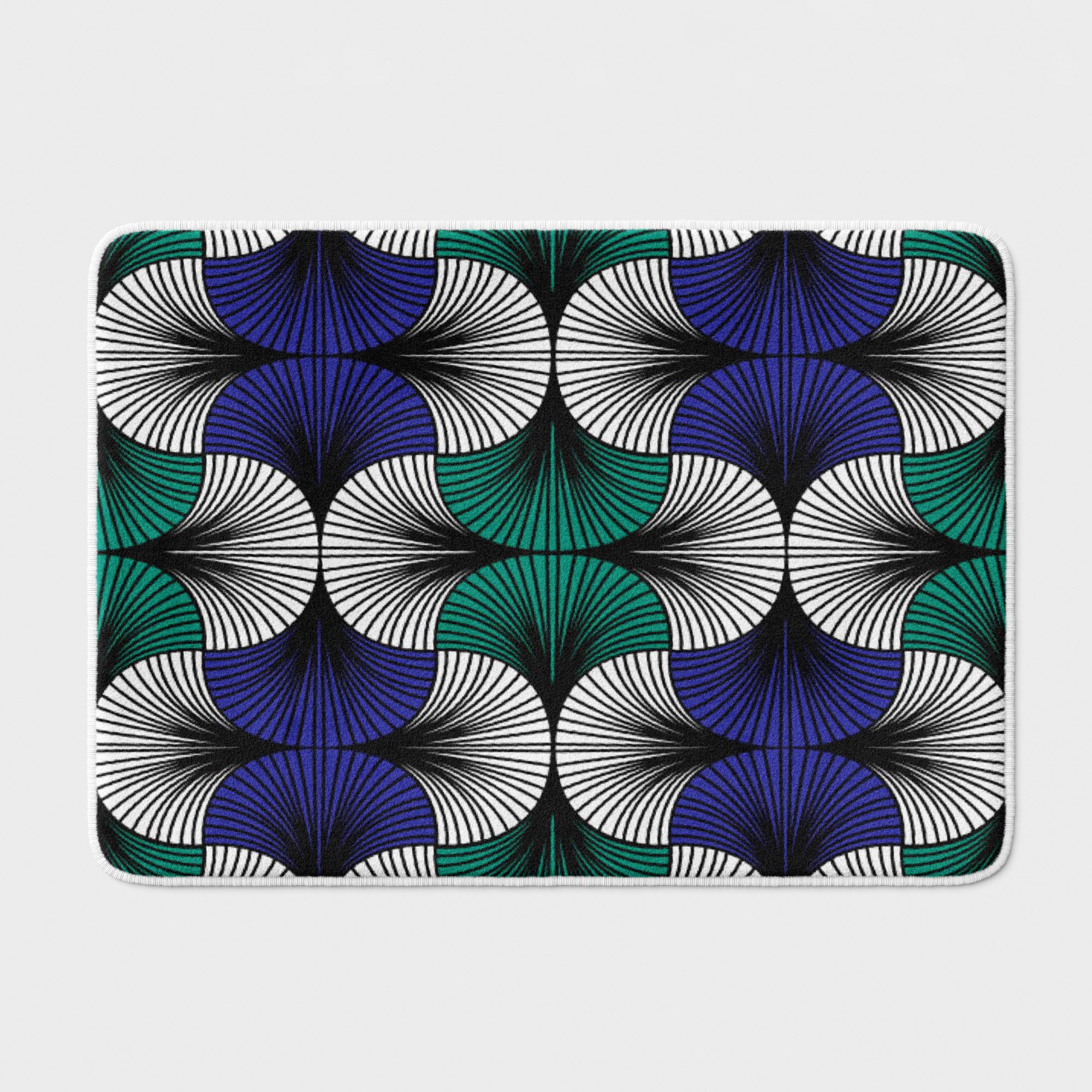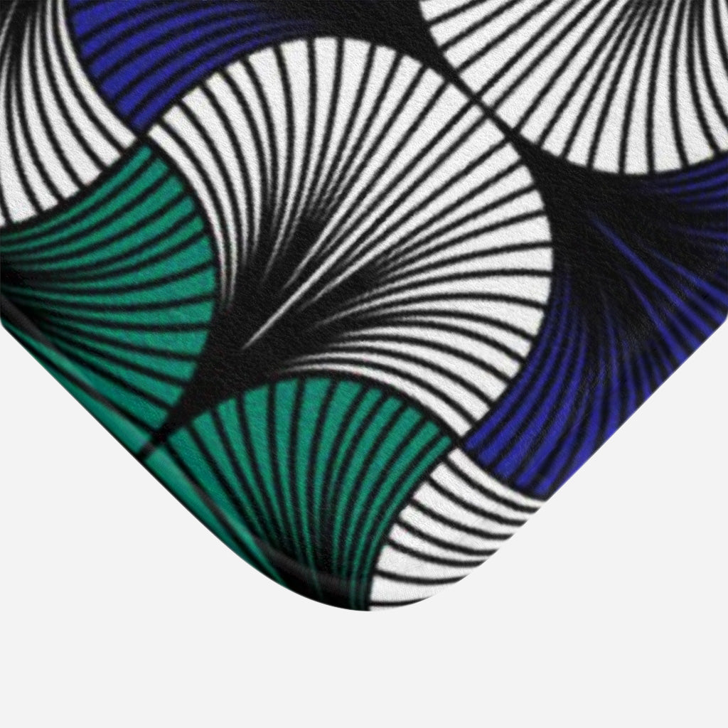 African Kitenge Navy Blue Green Ethnic Bath Mat HADIZA