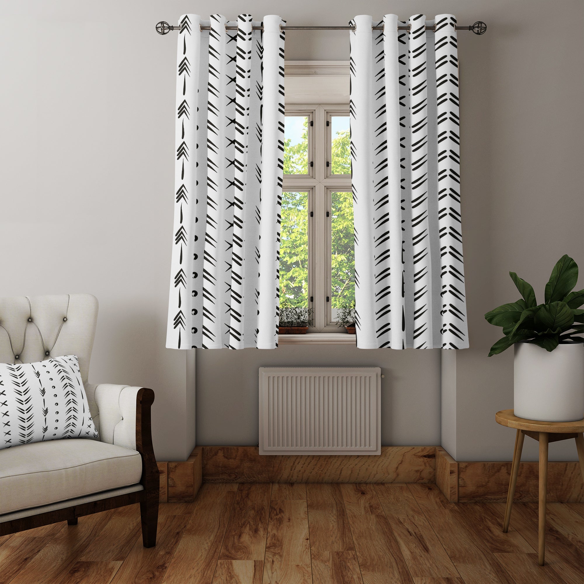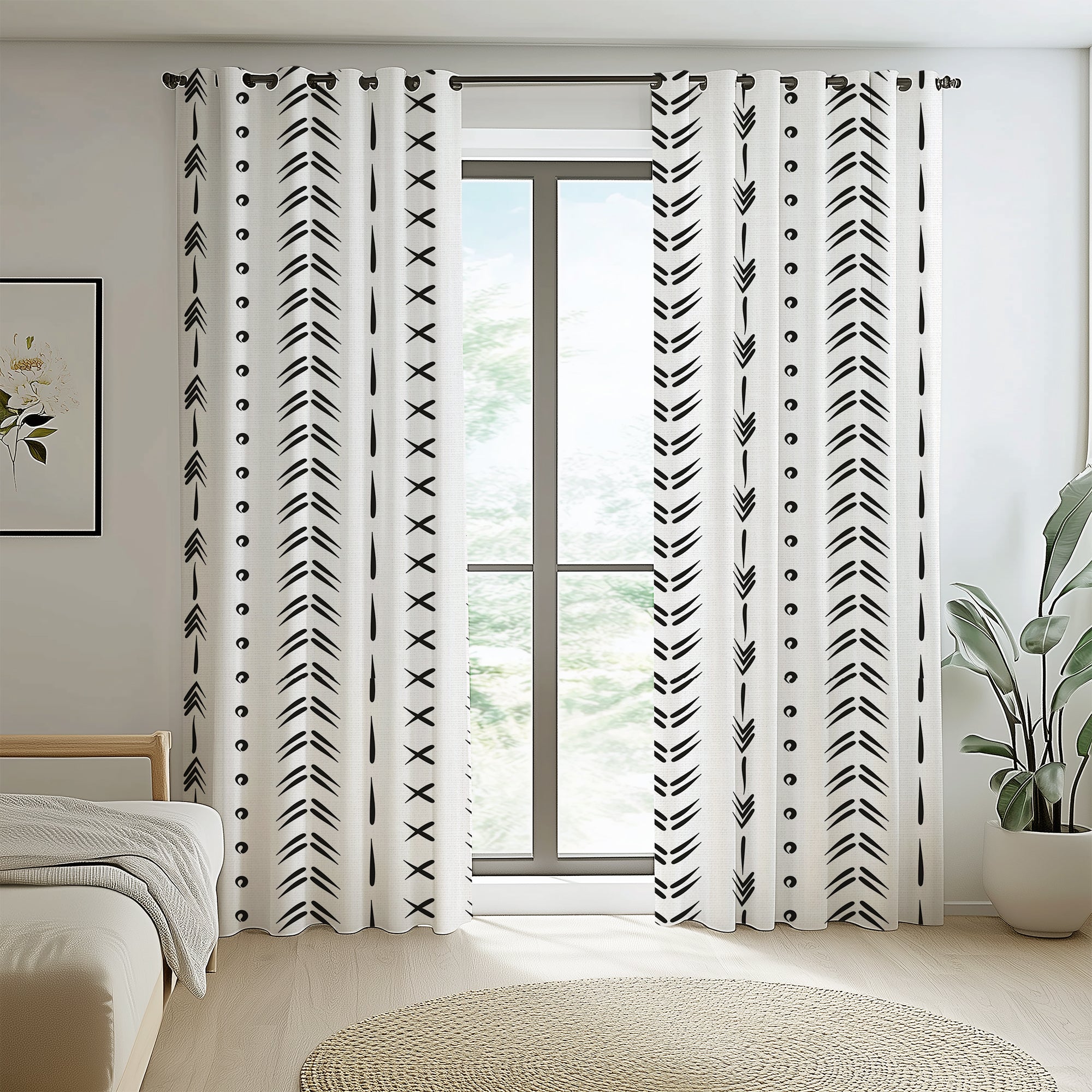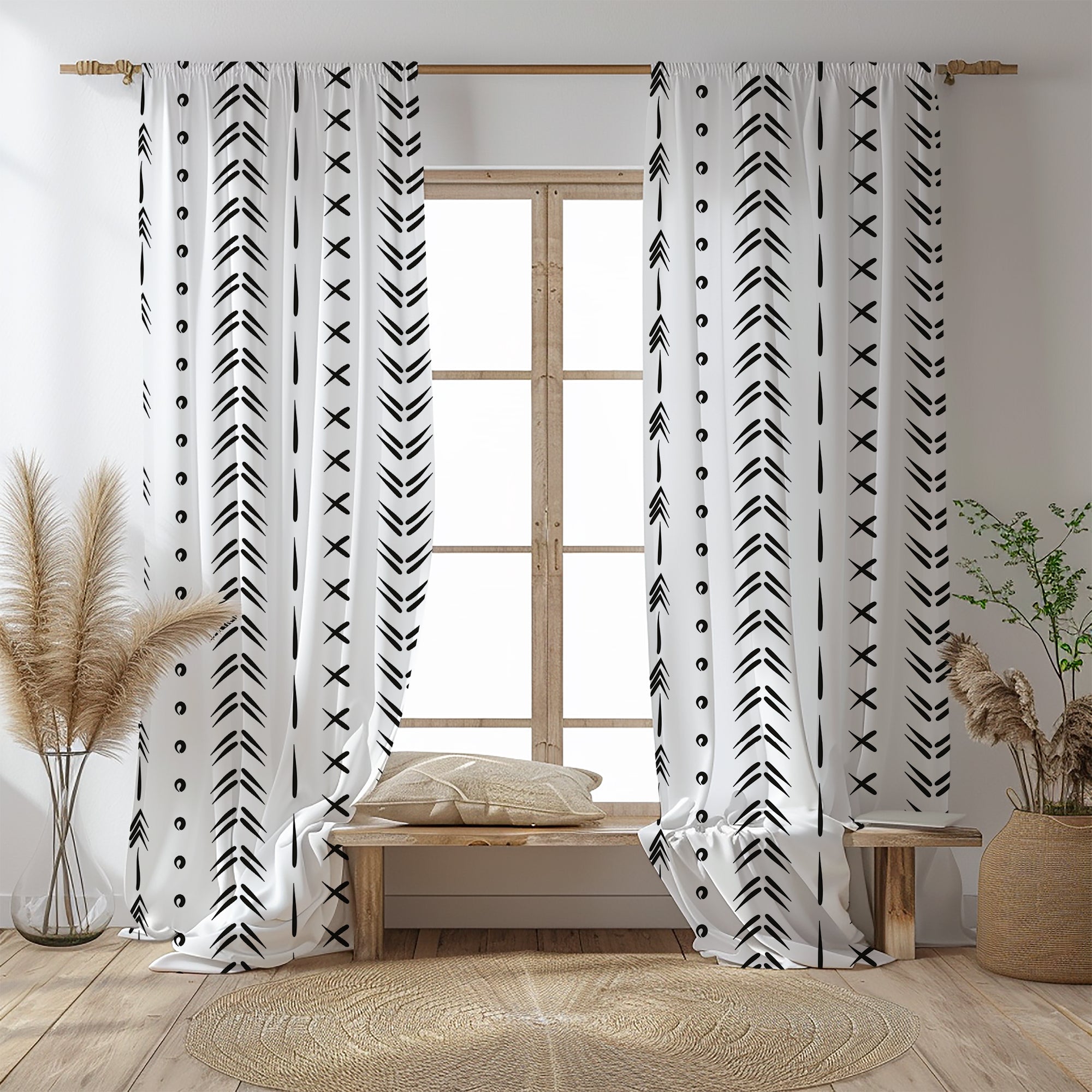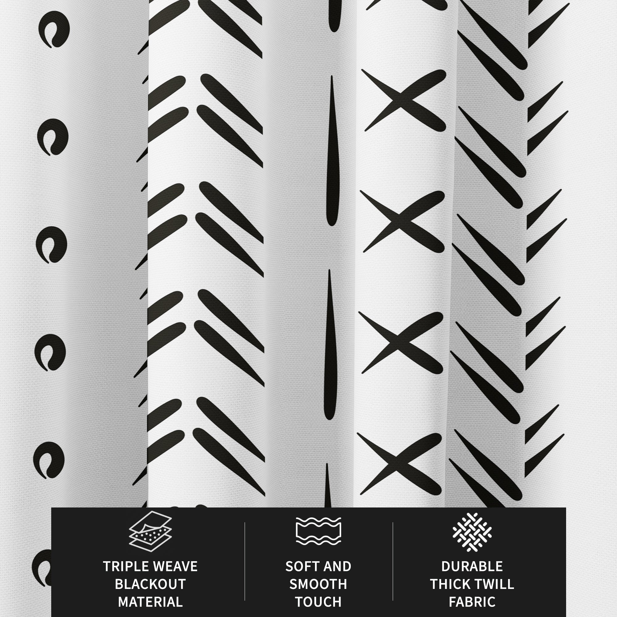 African Minimalist Black White Mudcloth Ethnic Blackout Window Curtain KIGALI