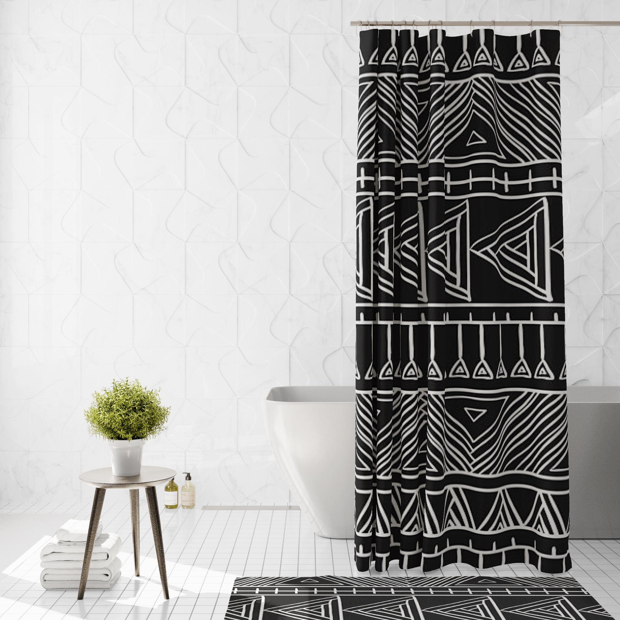 African Mudcloth Black White Ethnic Shower Curtain TARAJI