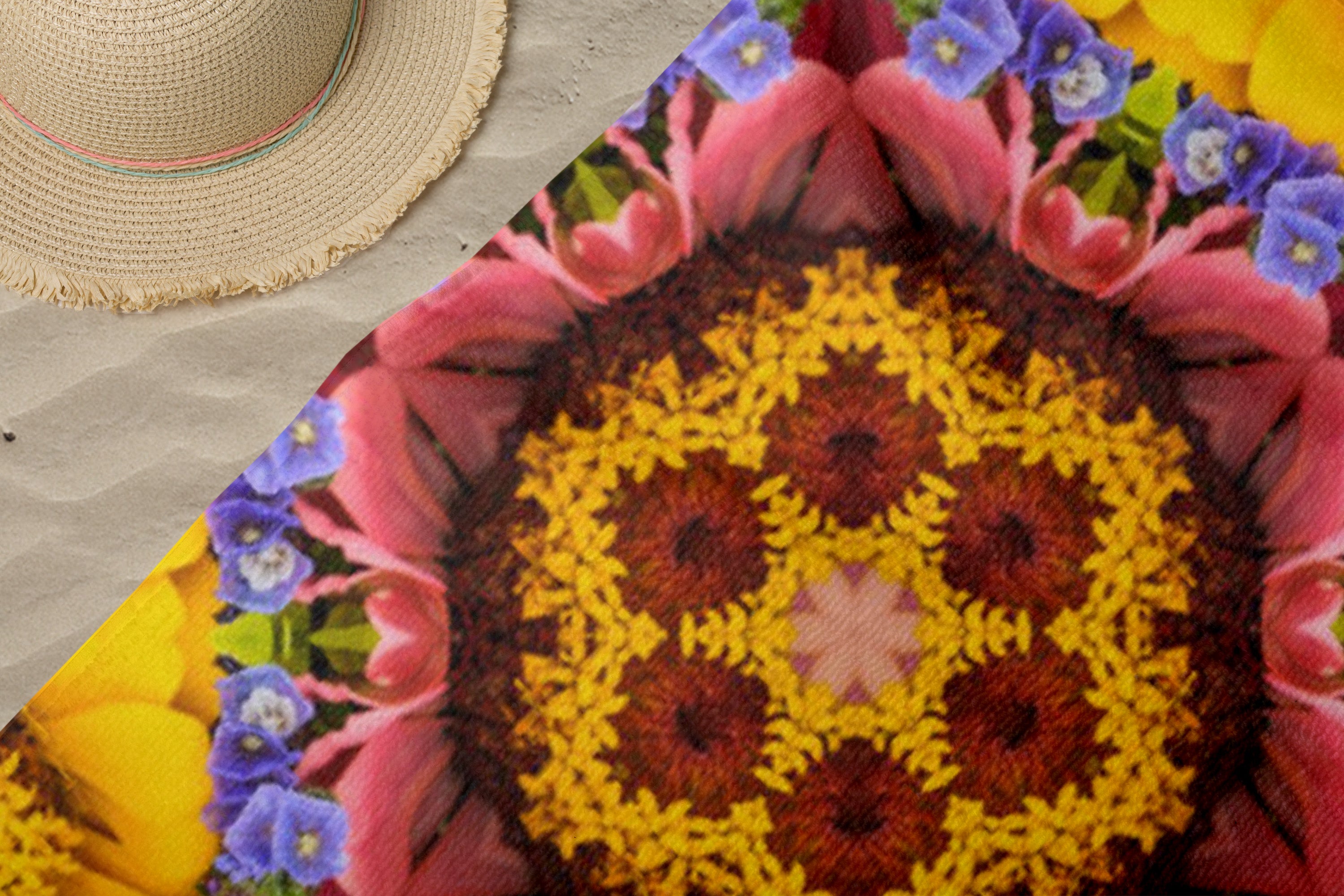 Leave everything you don't need at home and take your Mandala Kaleidoscope towel full of good vibes with you to the beach. Sunbathe on this towel to connect with the energy of the sun, the calm of the sea and the power of nature on summer days.