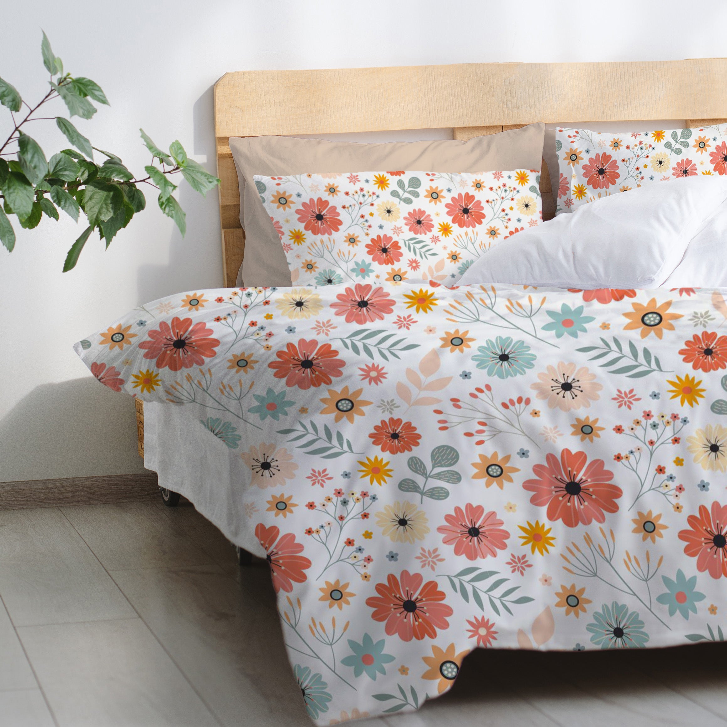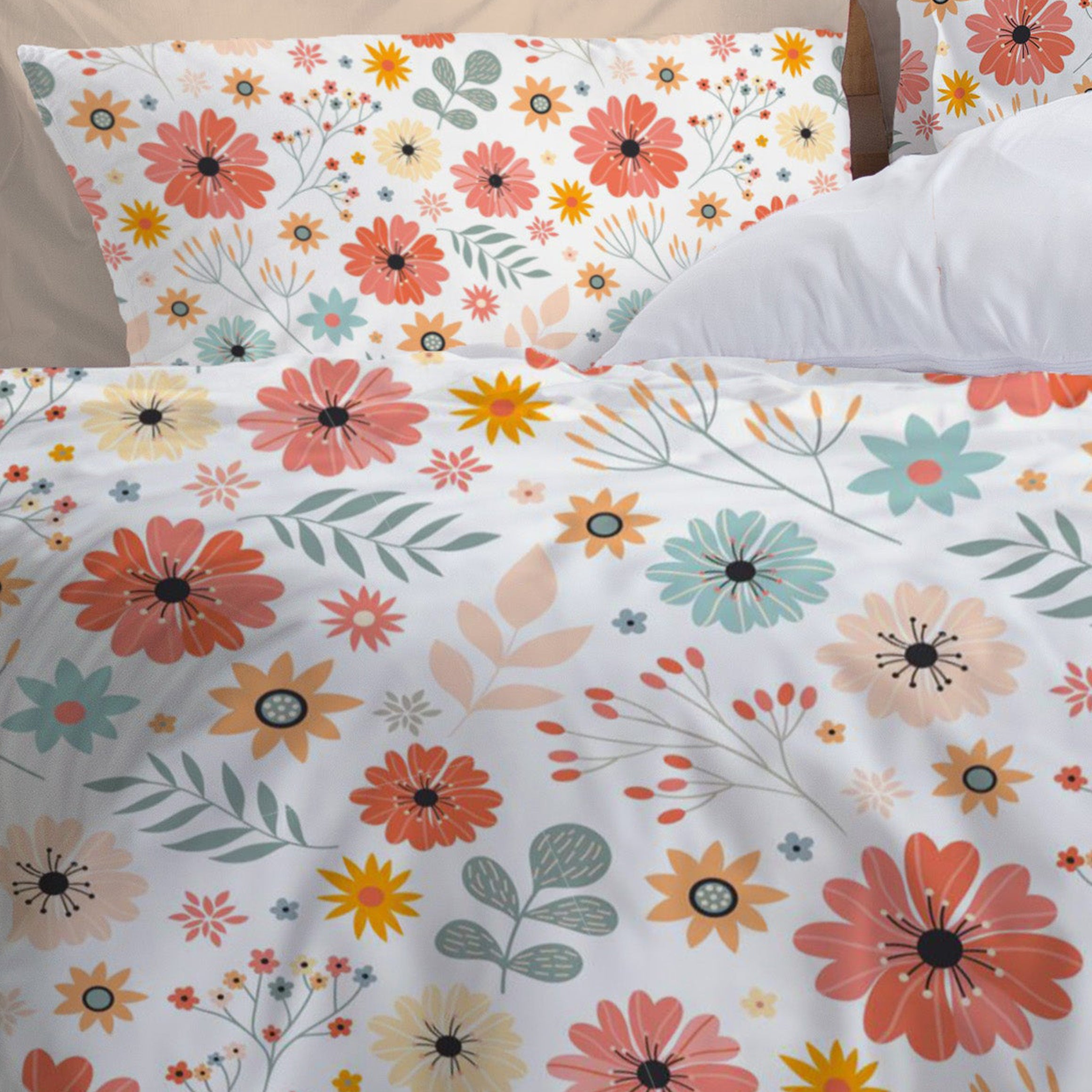 Blooming Flowers Pastel Botanical Floral Cotton Duvet Cover Set AVRIL