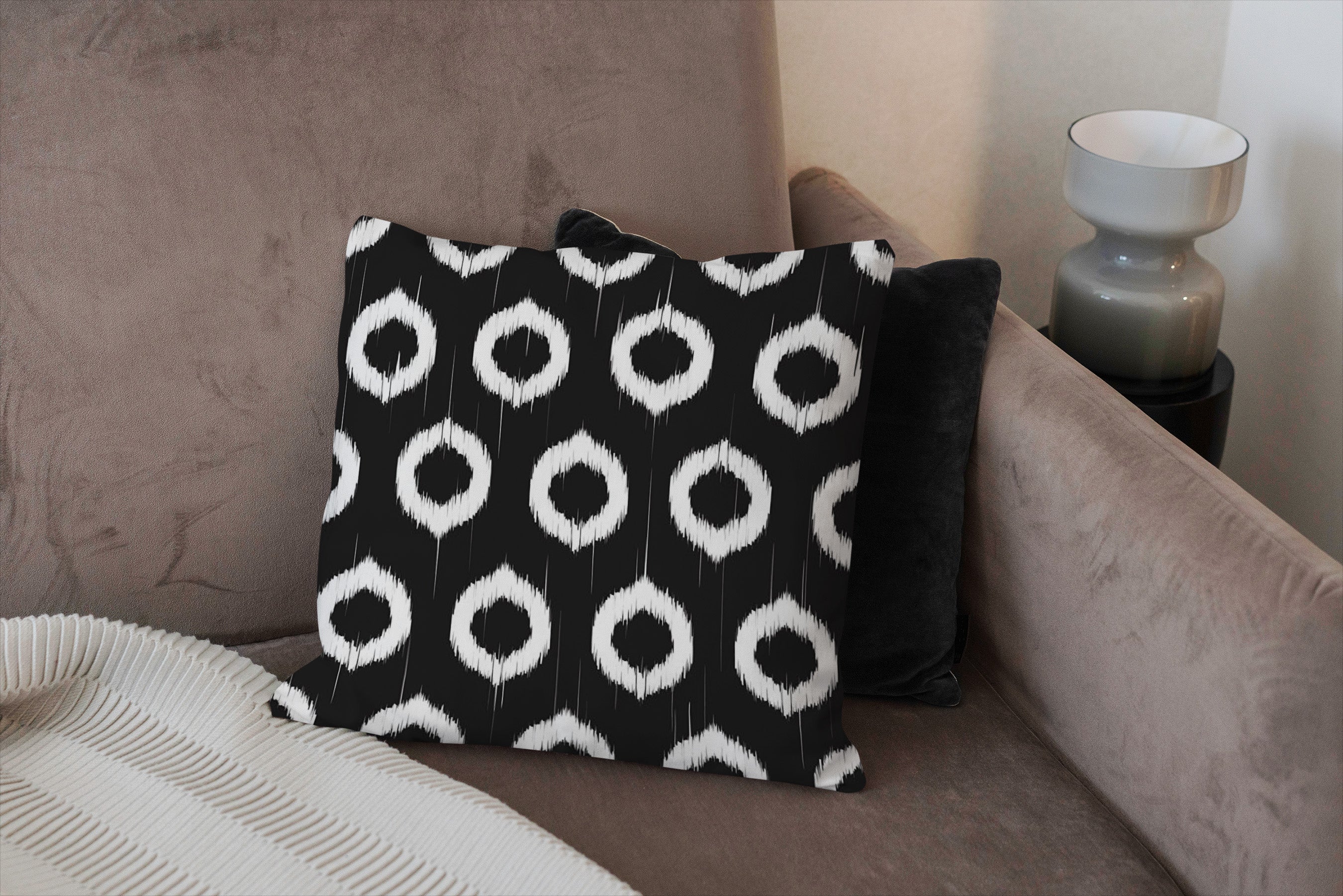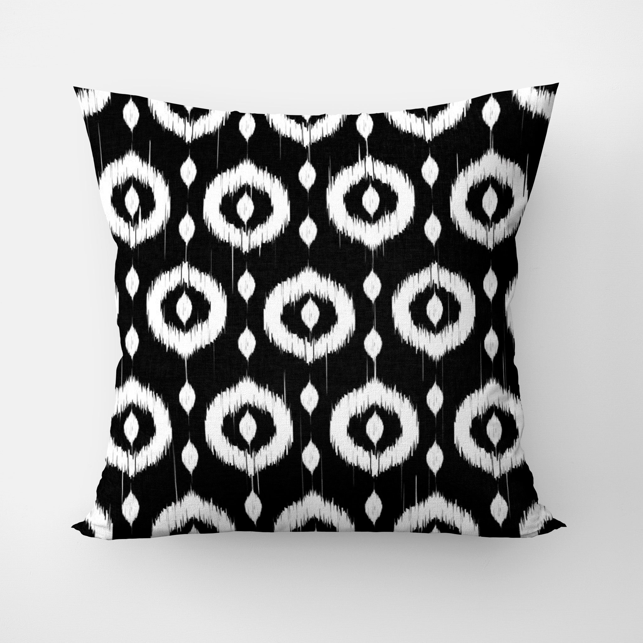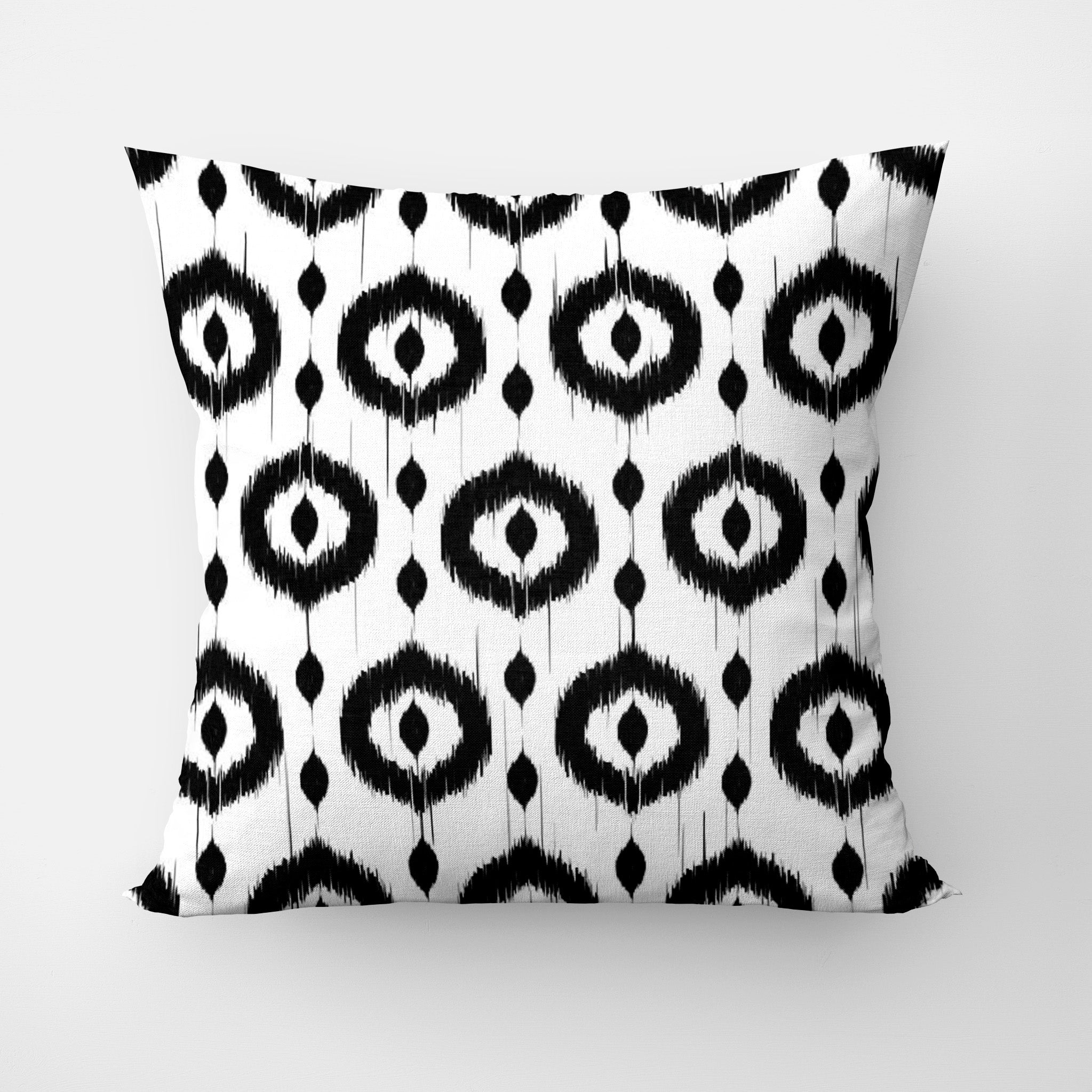 Ikat Print Black White Geometric Throw Pillow Cover ARIS