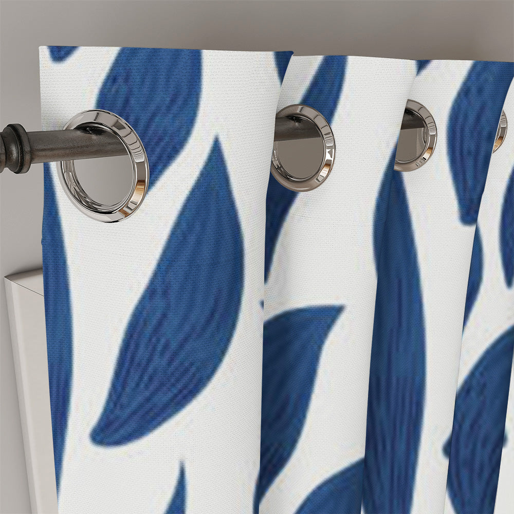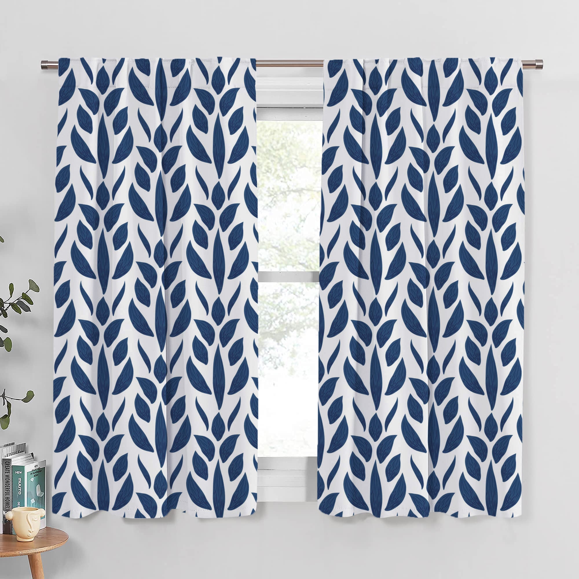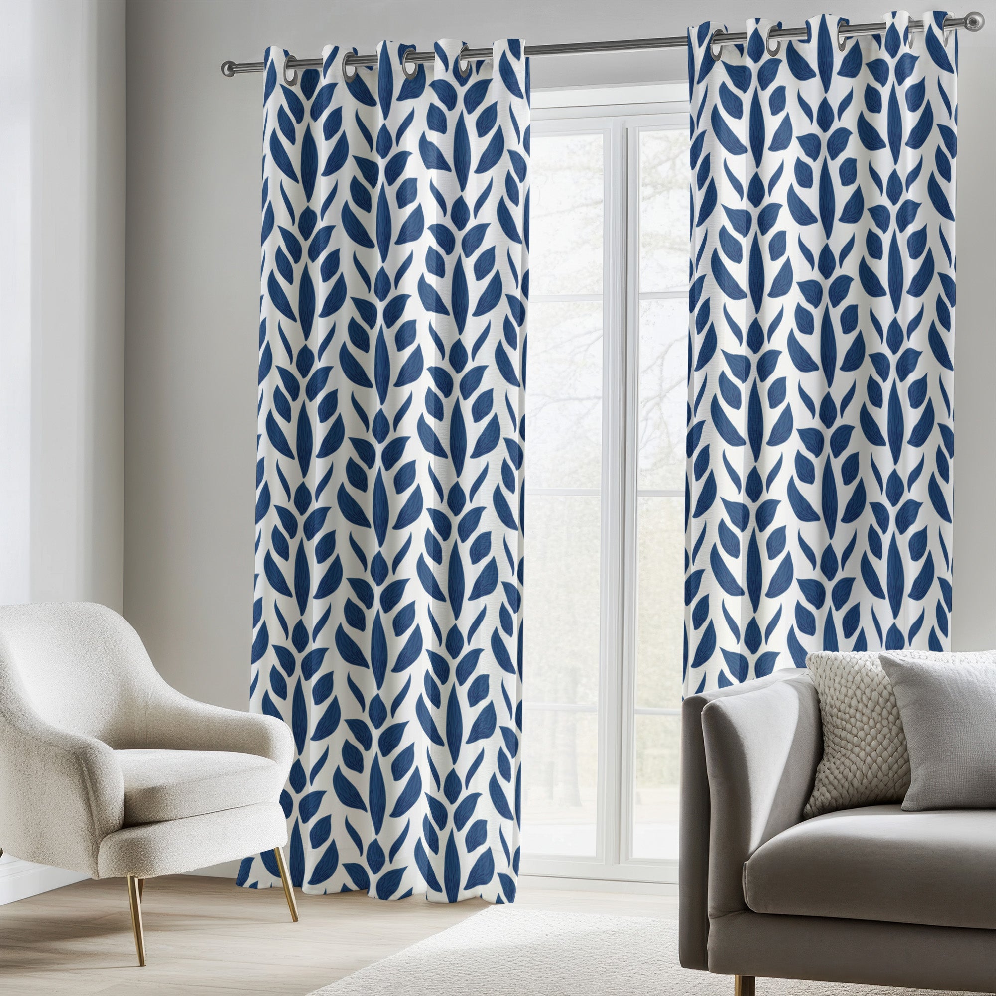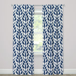 BREEZE window curtain with navy blue leaf ornamental motif, will give a bold and unique accent to your bedroom, living room or dining room.