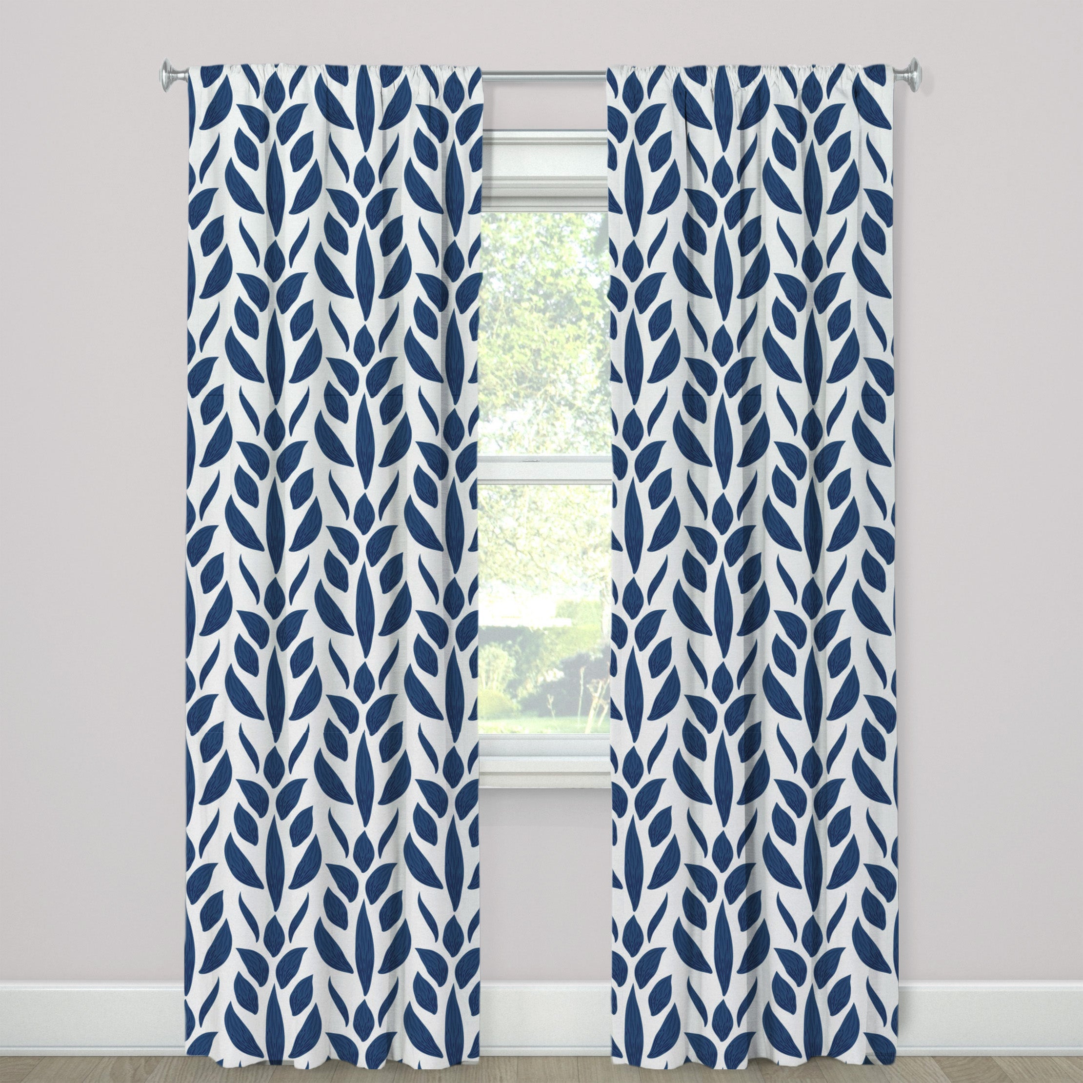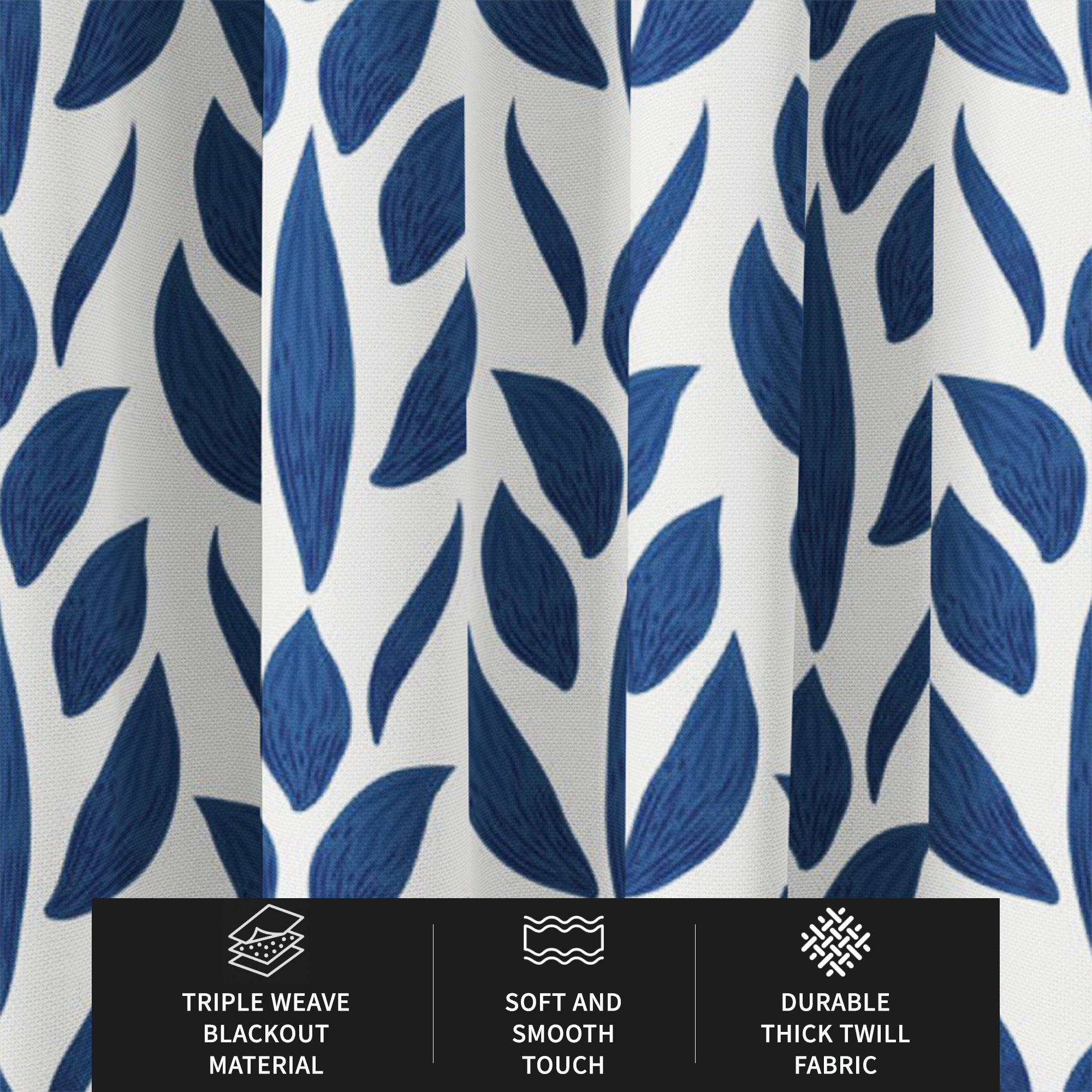 Botanic Ornamental Leaf Navy Blue Floral Blackout Window Curtain BREEZE