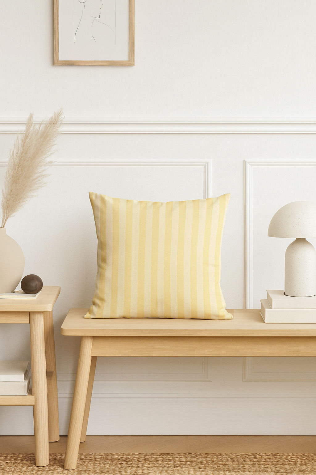 Butter Yellow Vertical Stripes Nordic Scandinavian Throw Pillow Cover LYS