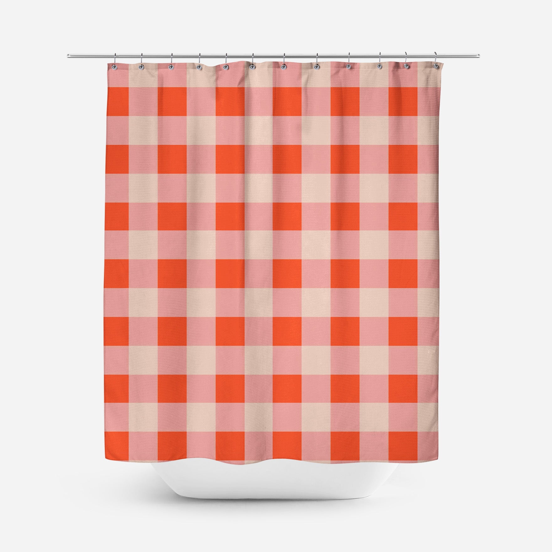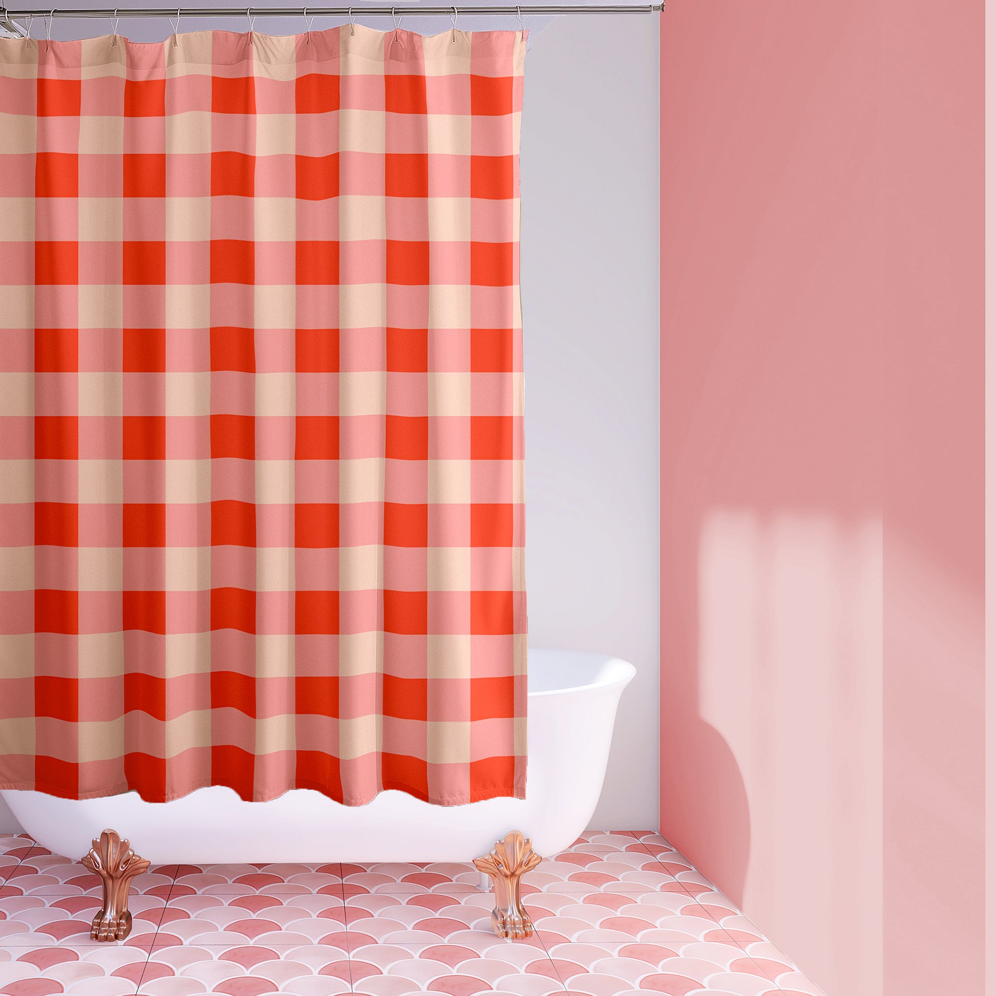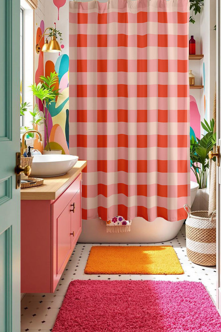 This red and pink checker shower curtain turns your bathroom into a dopamine-charged design moment. Maximalist vibes meet joyful energy, for those who dare to decorate loud.