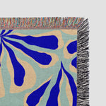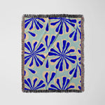 Contemporary Floral Klein Blue Abstract Cotton Woven Throw Blanket VERVE
