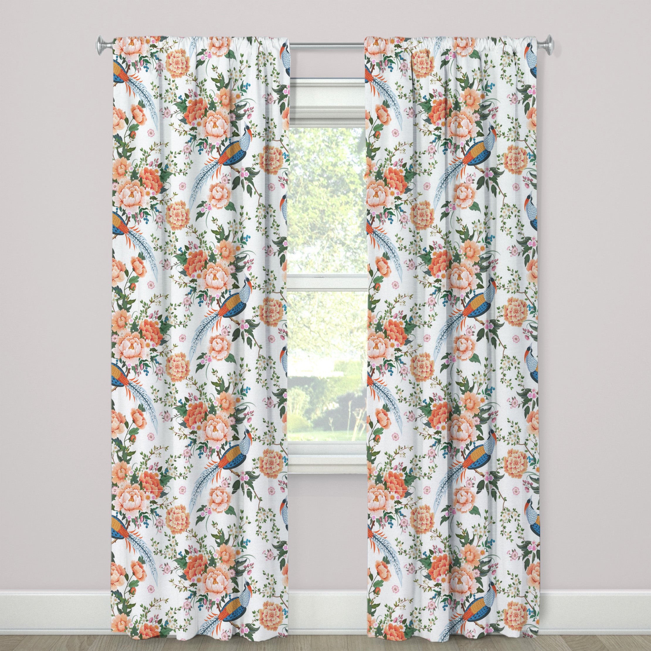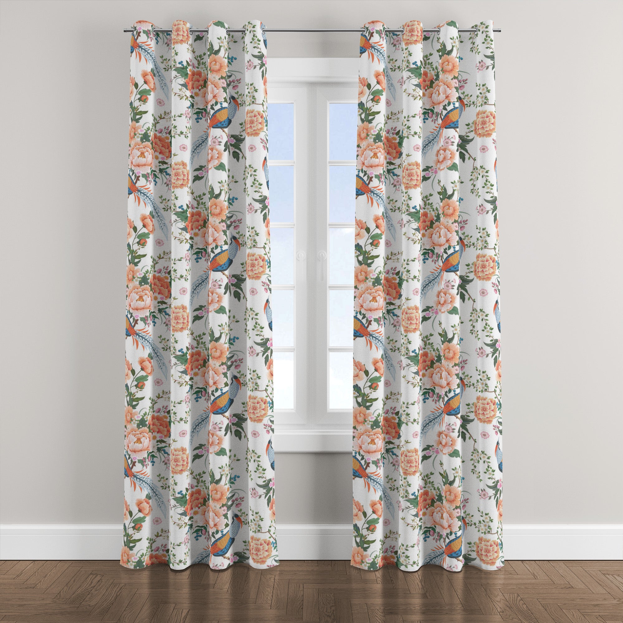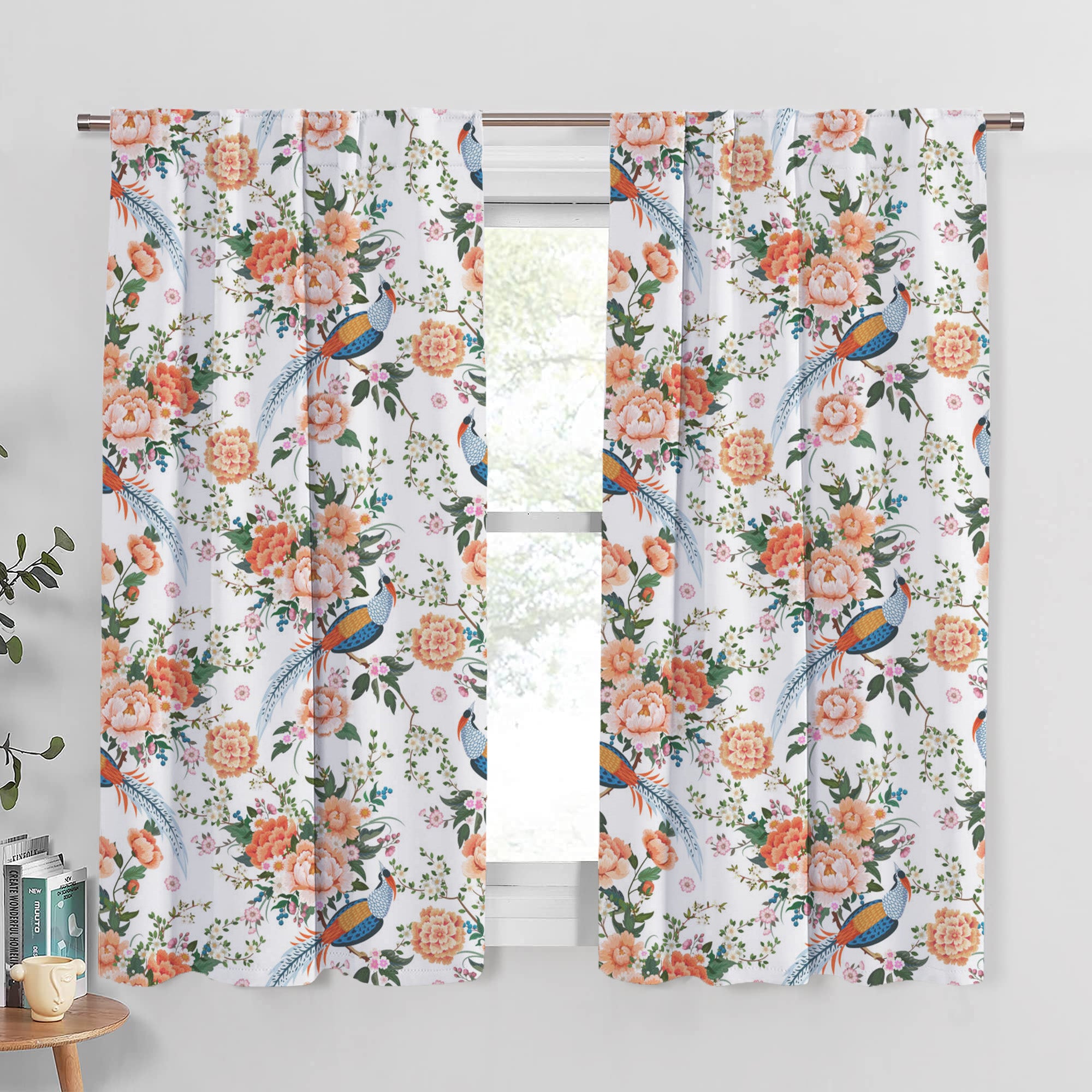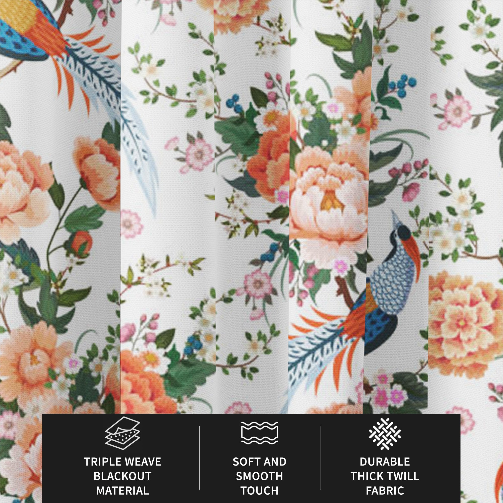 Diamond Pheasant Birds Peony Daisies Floral Blackout Window Curtain AMELIA