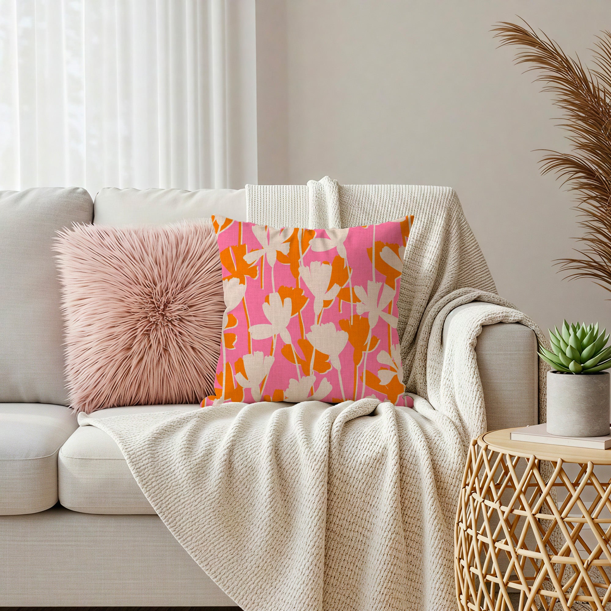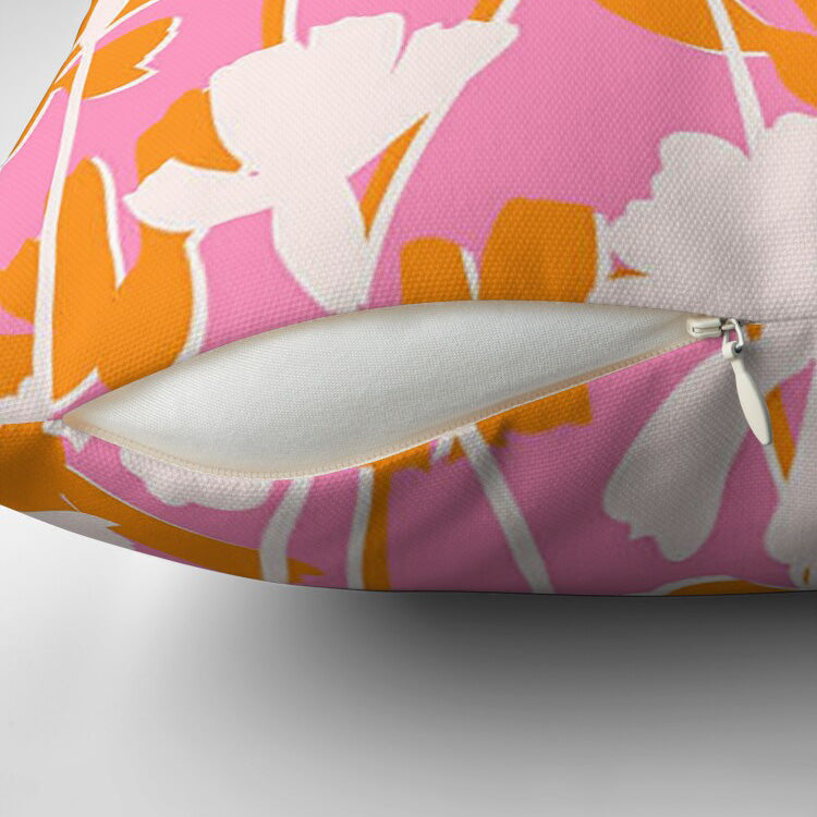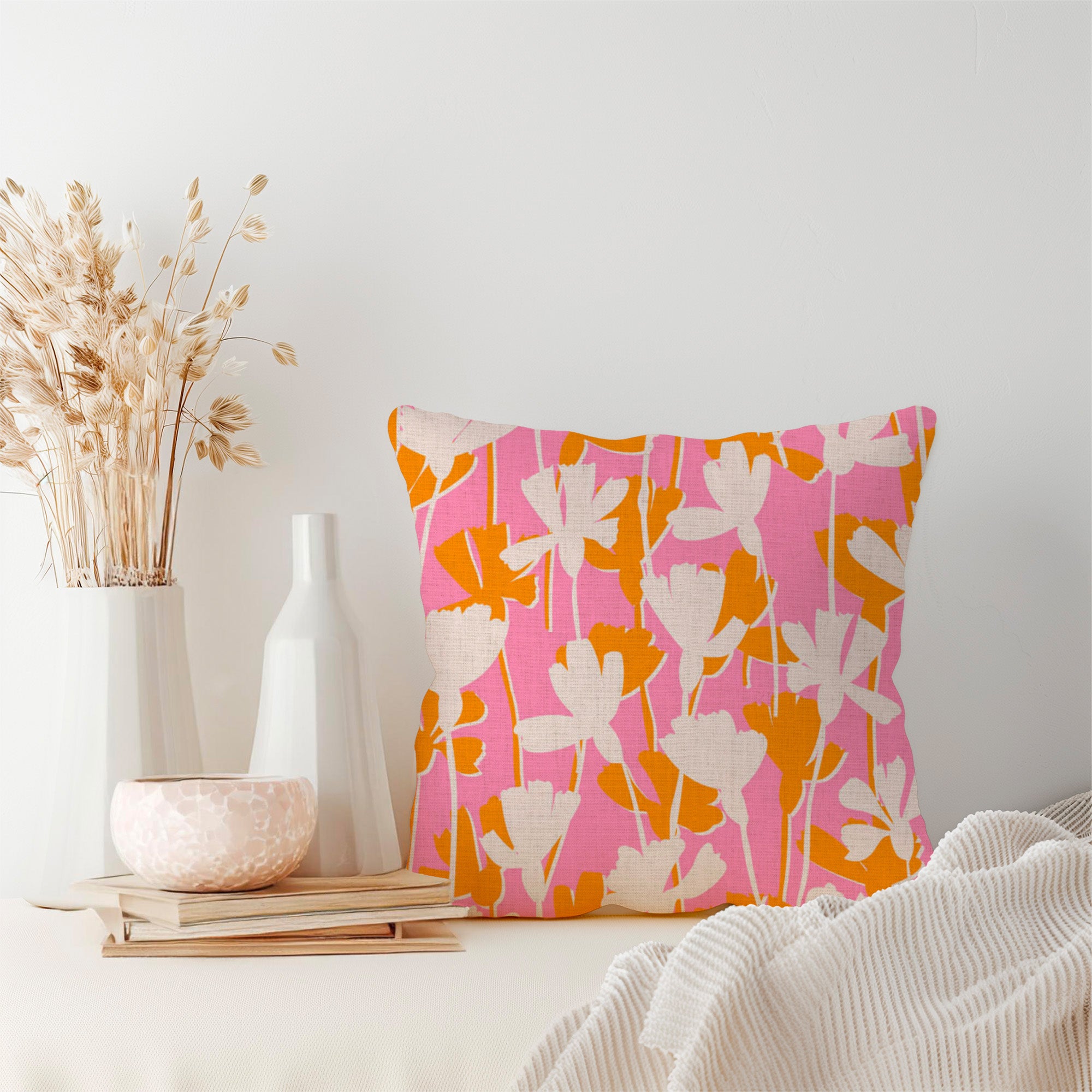 Dianthus Flowers Orange Pink Maximalist Aesthetic Throw Pillow Cover