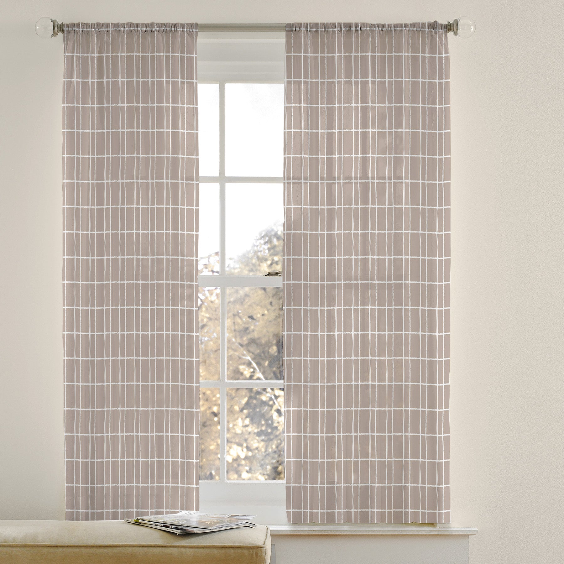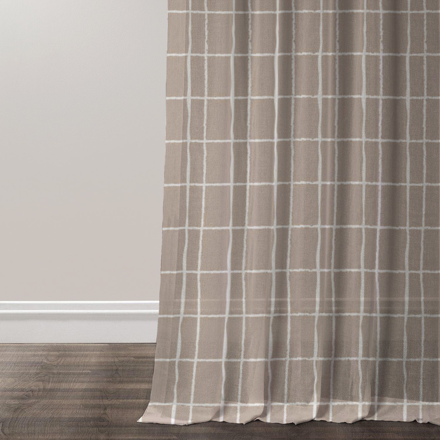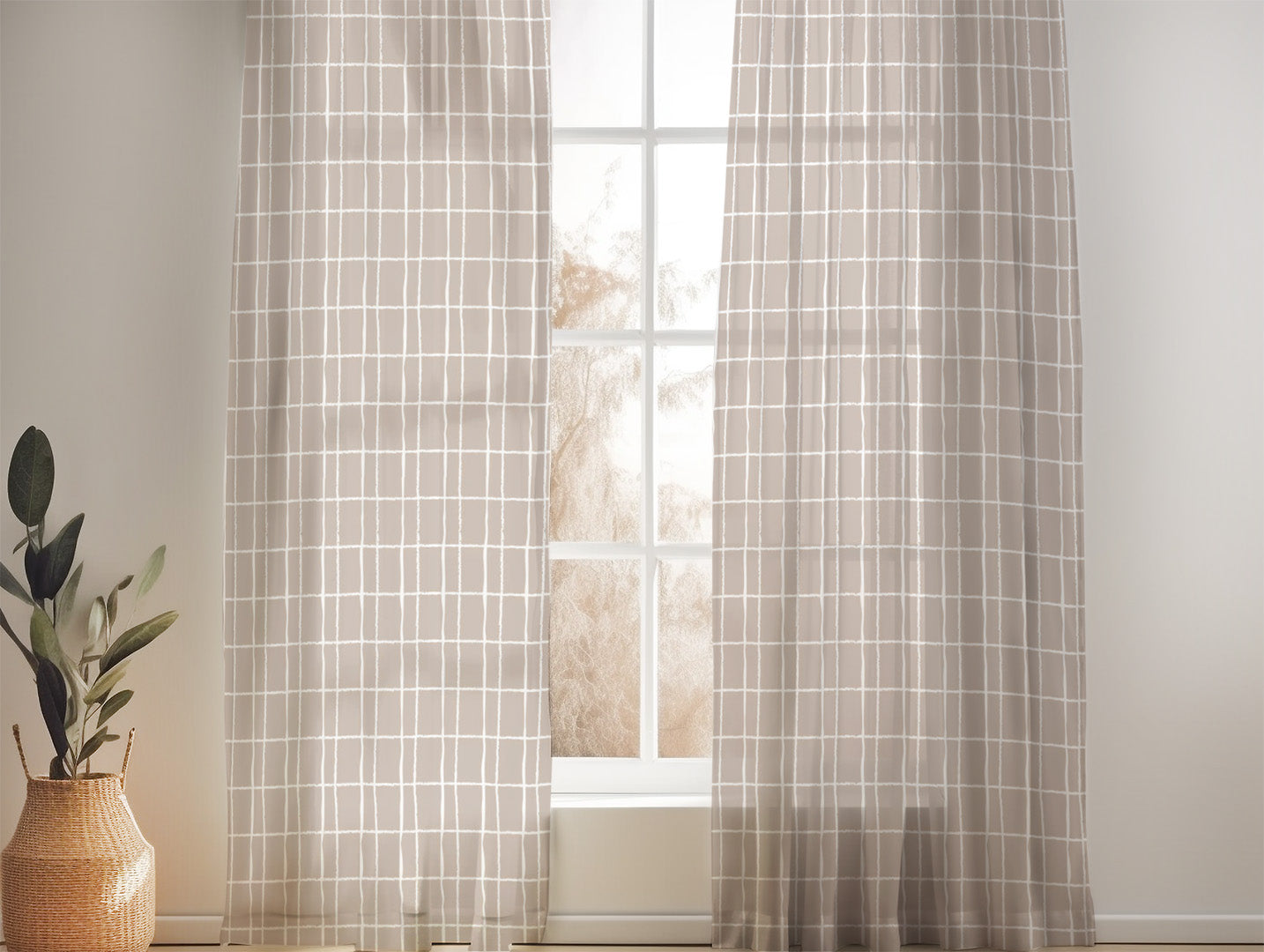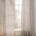 Minimalist Farmhouse Geometric Beige White Checkered Semi Sheer Window Curtain LORAH