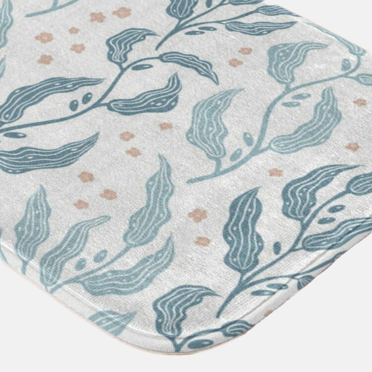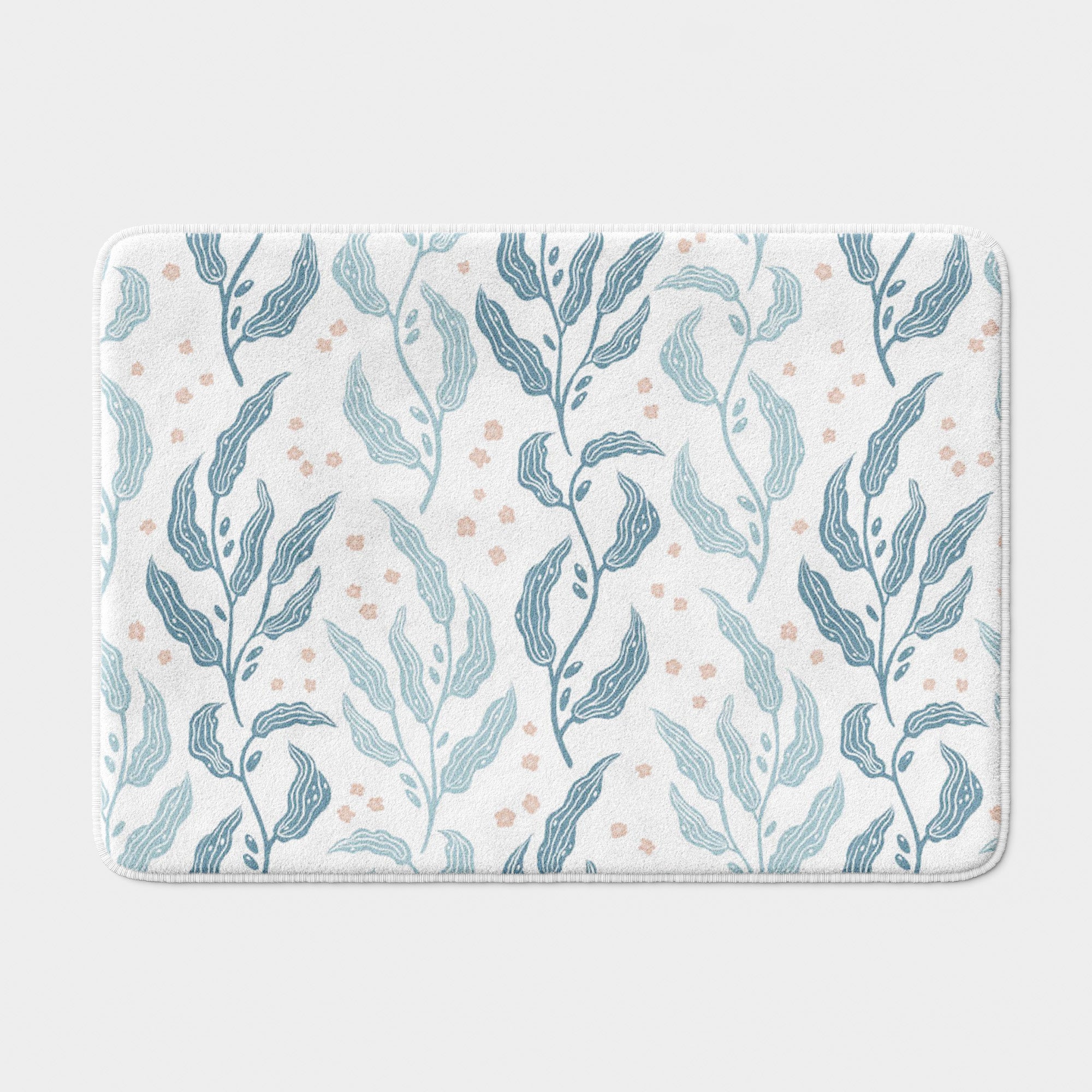 Floral Leafy Olive Branch Scandinavian Light Blue Bath Mat MAJA
