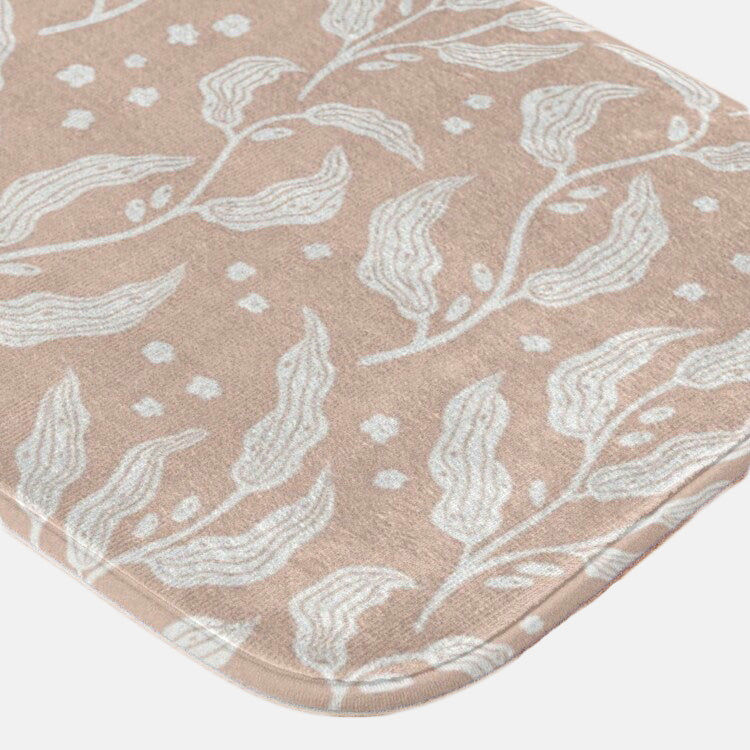 Floral Leafy Olive Branch Scandinavian Pale Pink Bath Mat MAJA