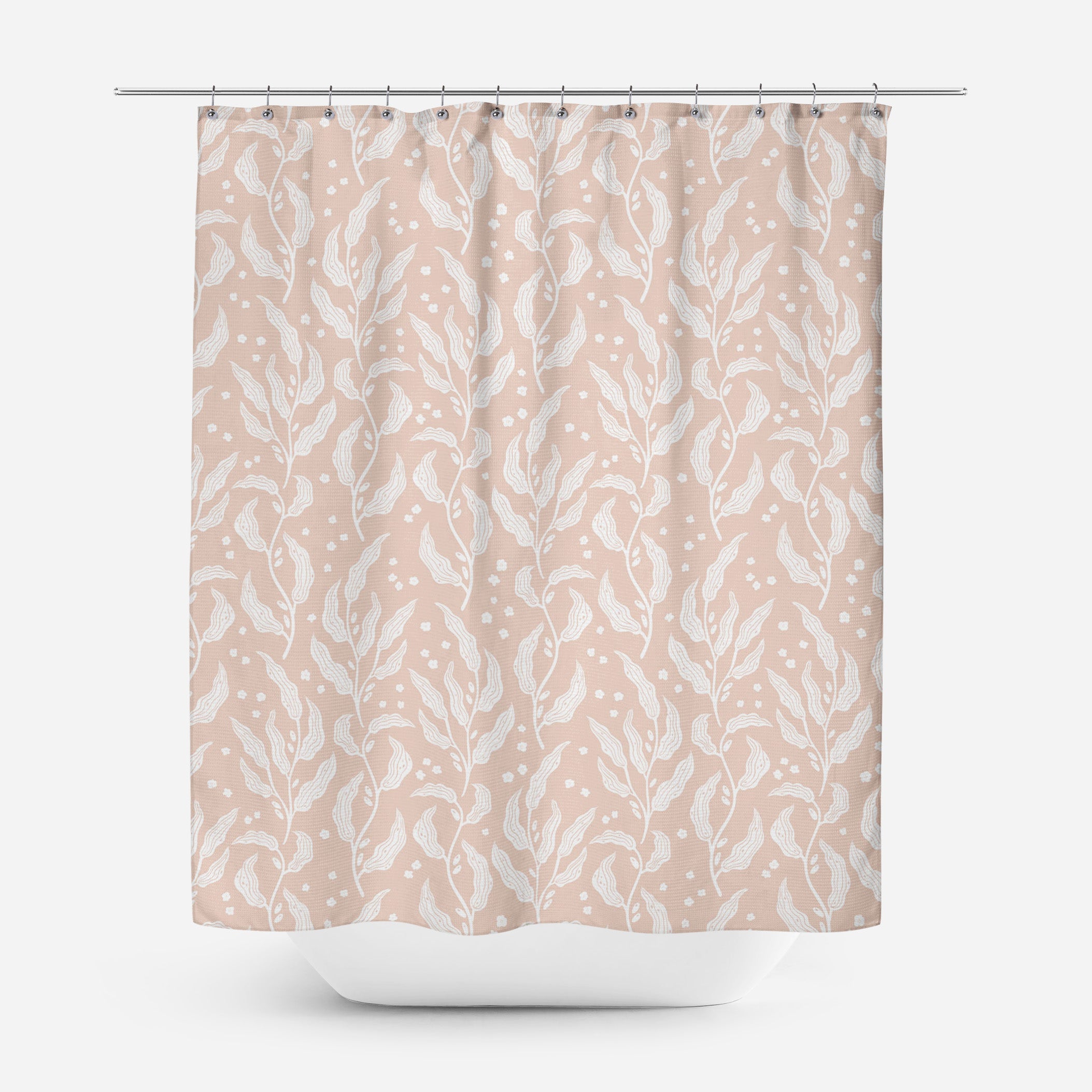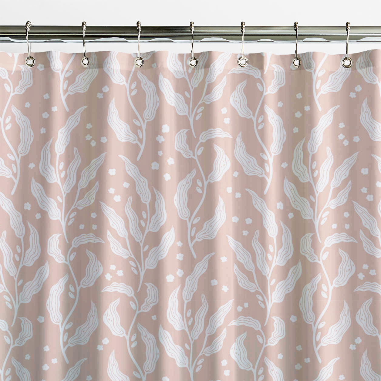 Floral Leafy Olive Branch Scandinavian Pale Pink Shower Curtain MAJA