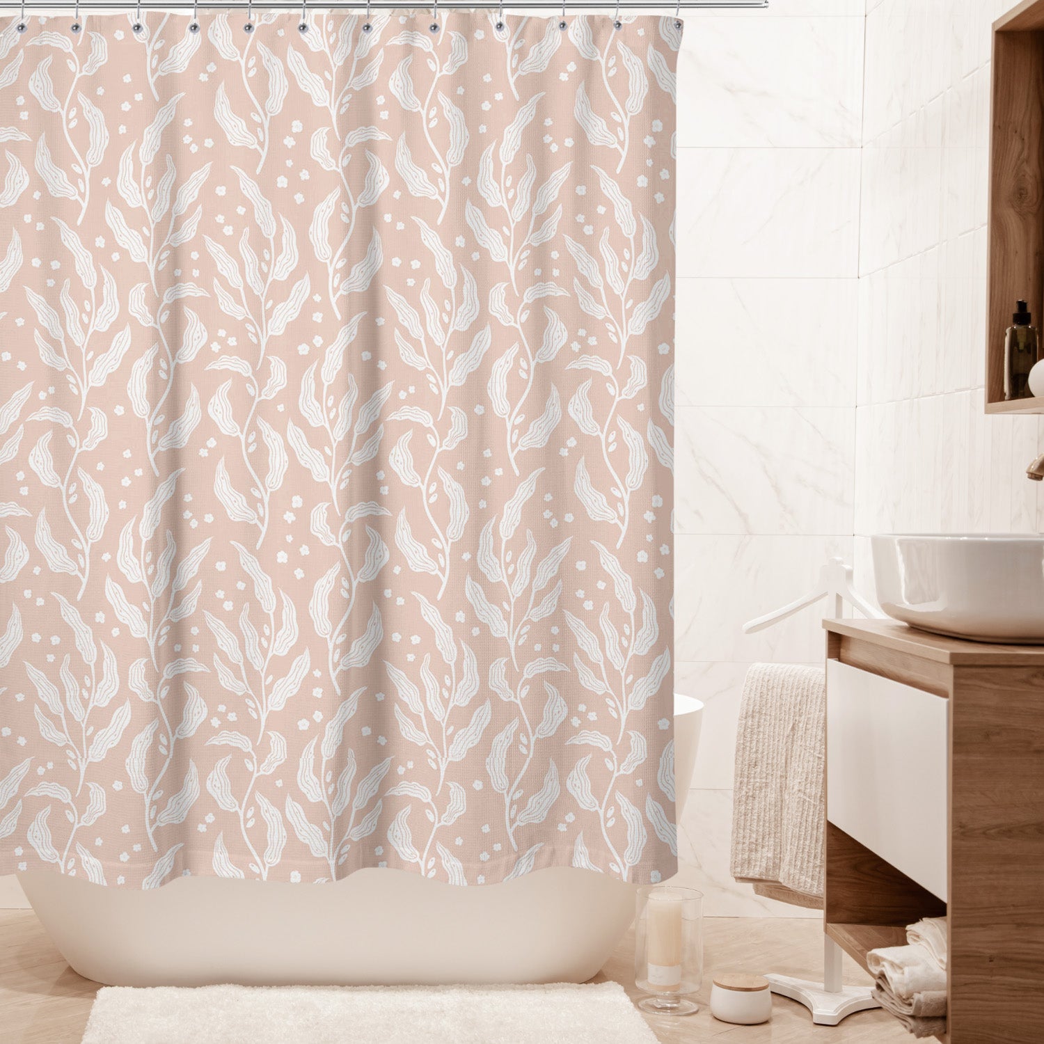 Bring delicacy and elegance to your bathroom with the pale pink shower curtain MAJA with Scandinavian minimalist olive branch motif, the perfect touch of style that your bathroom has been missing.