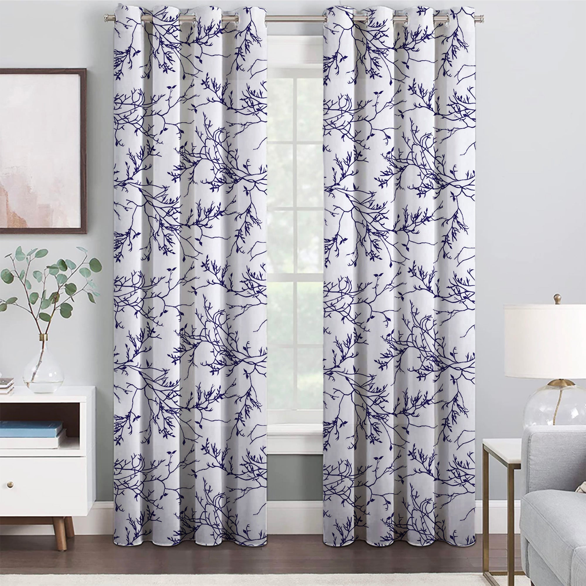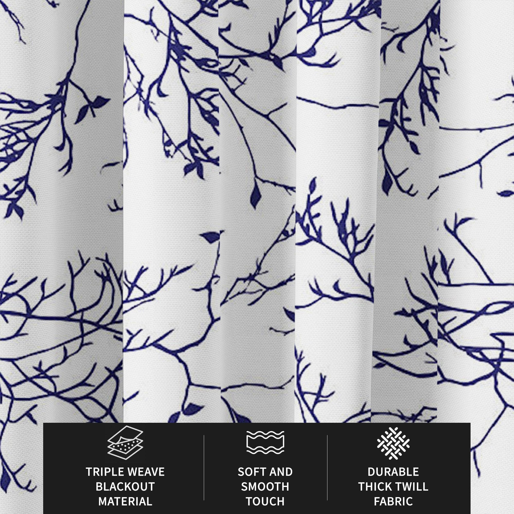 Forest Tree Branches White Navy Blue Botanical Blackout Window Curtain ELOISE