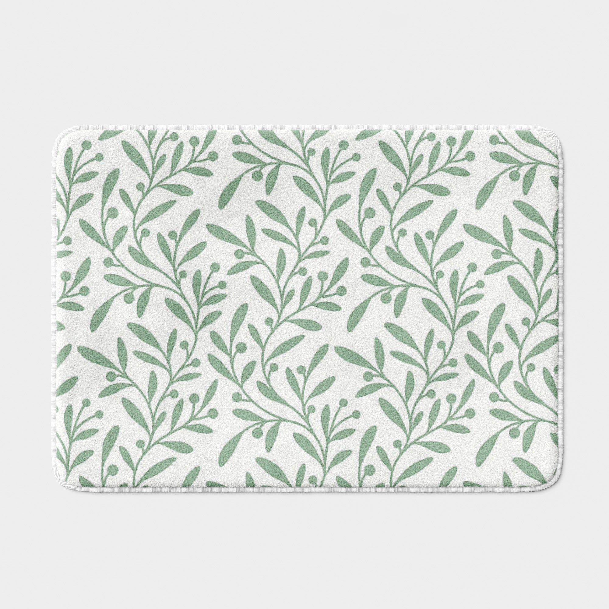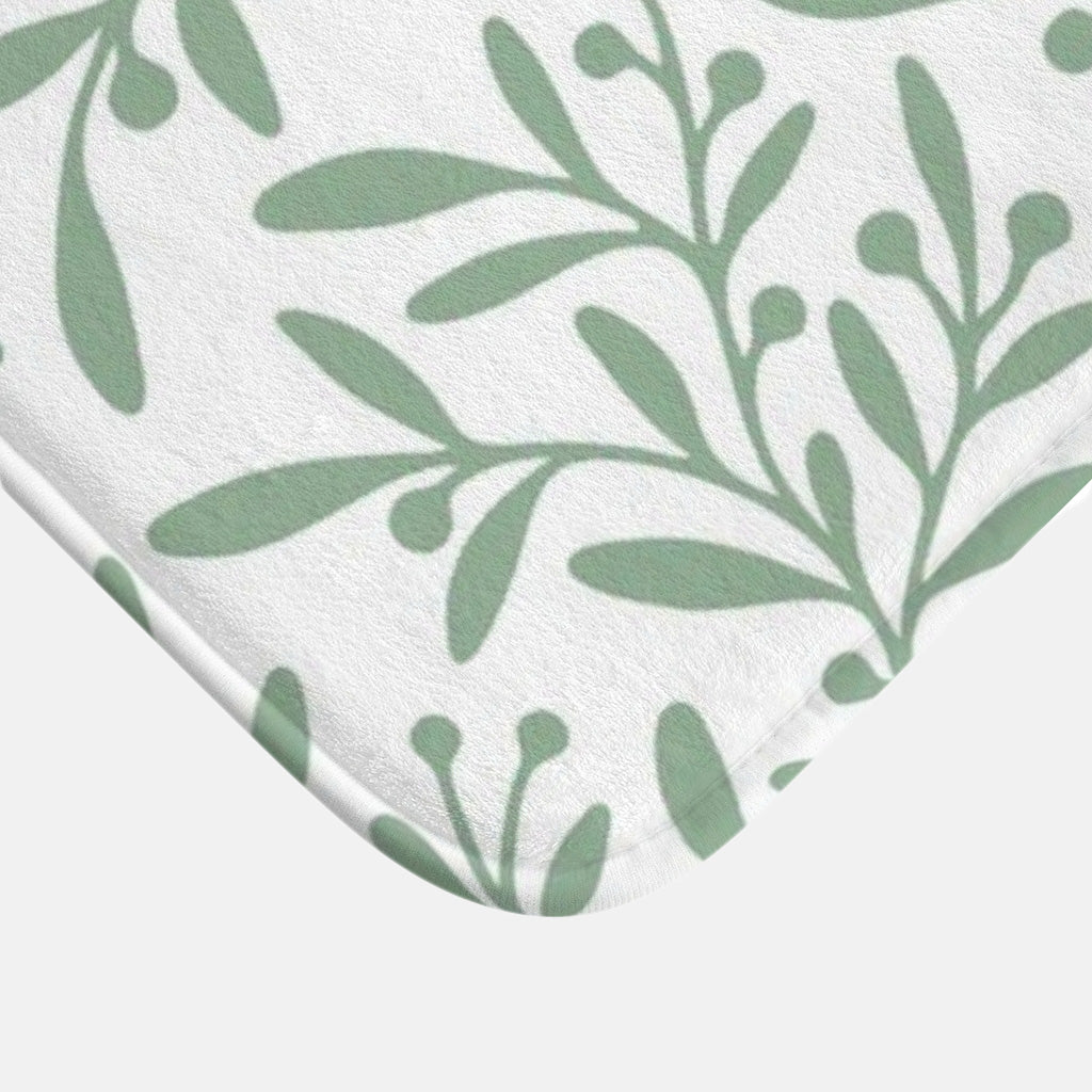 Green Olive Branch Botanical Farmhouse Bath Mat OLIVIA